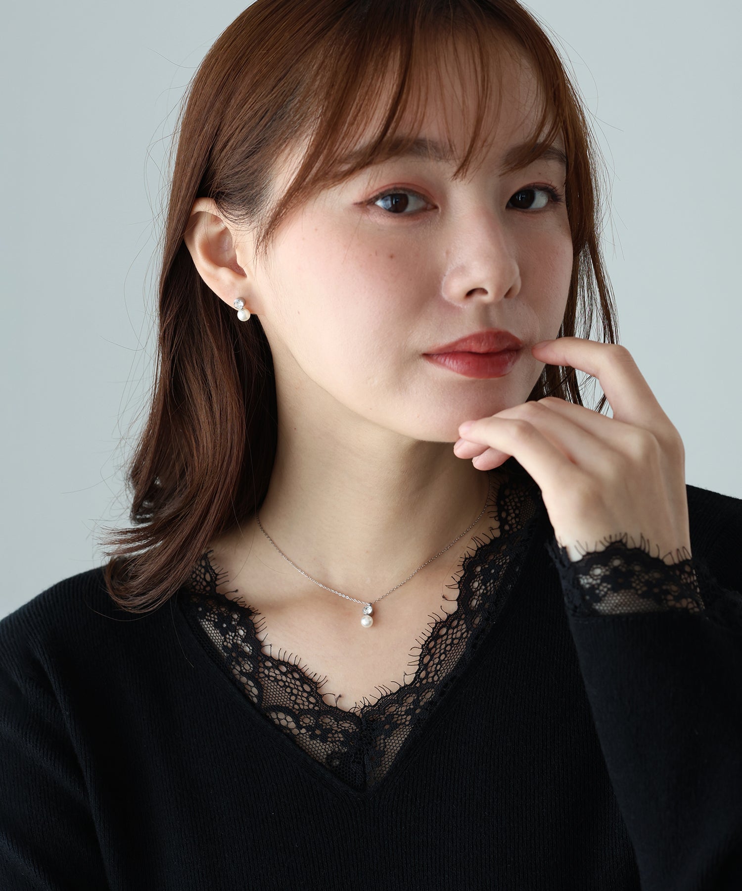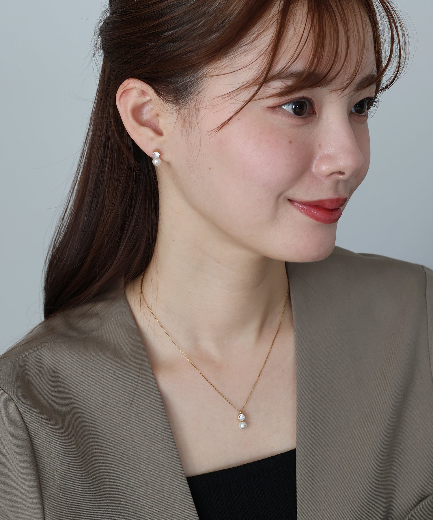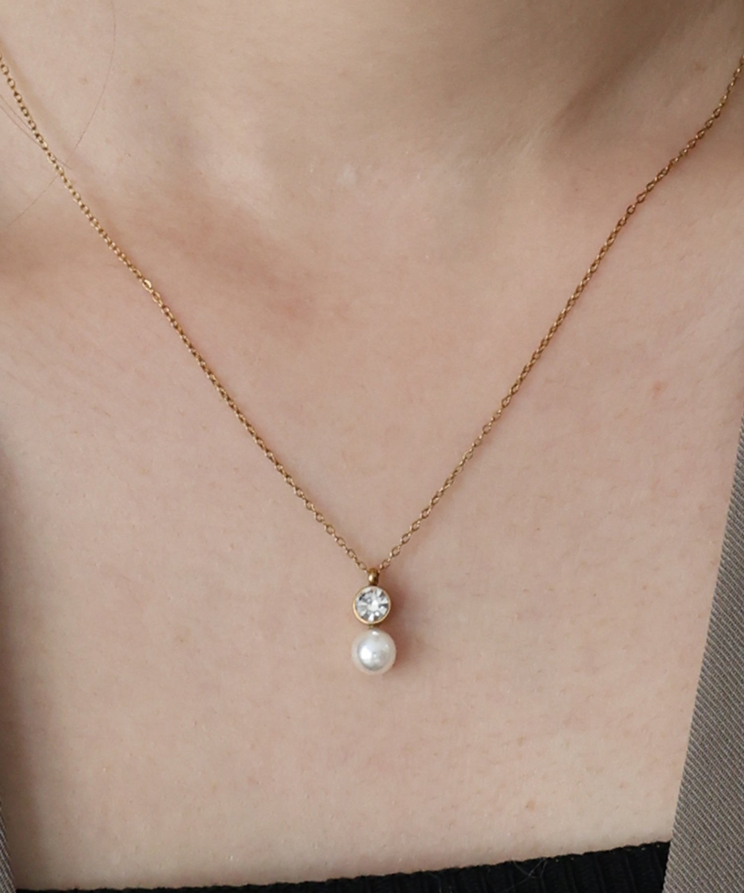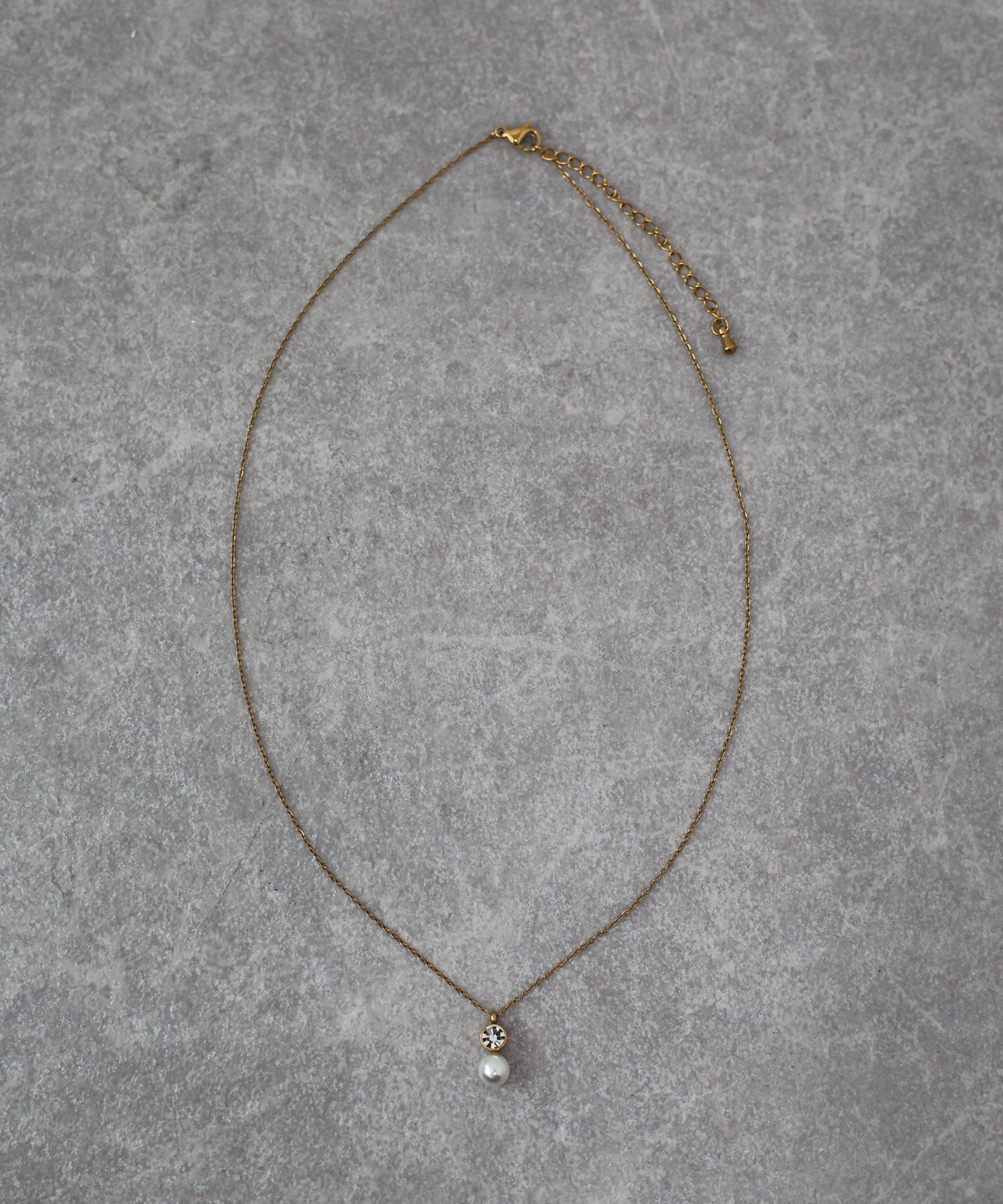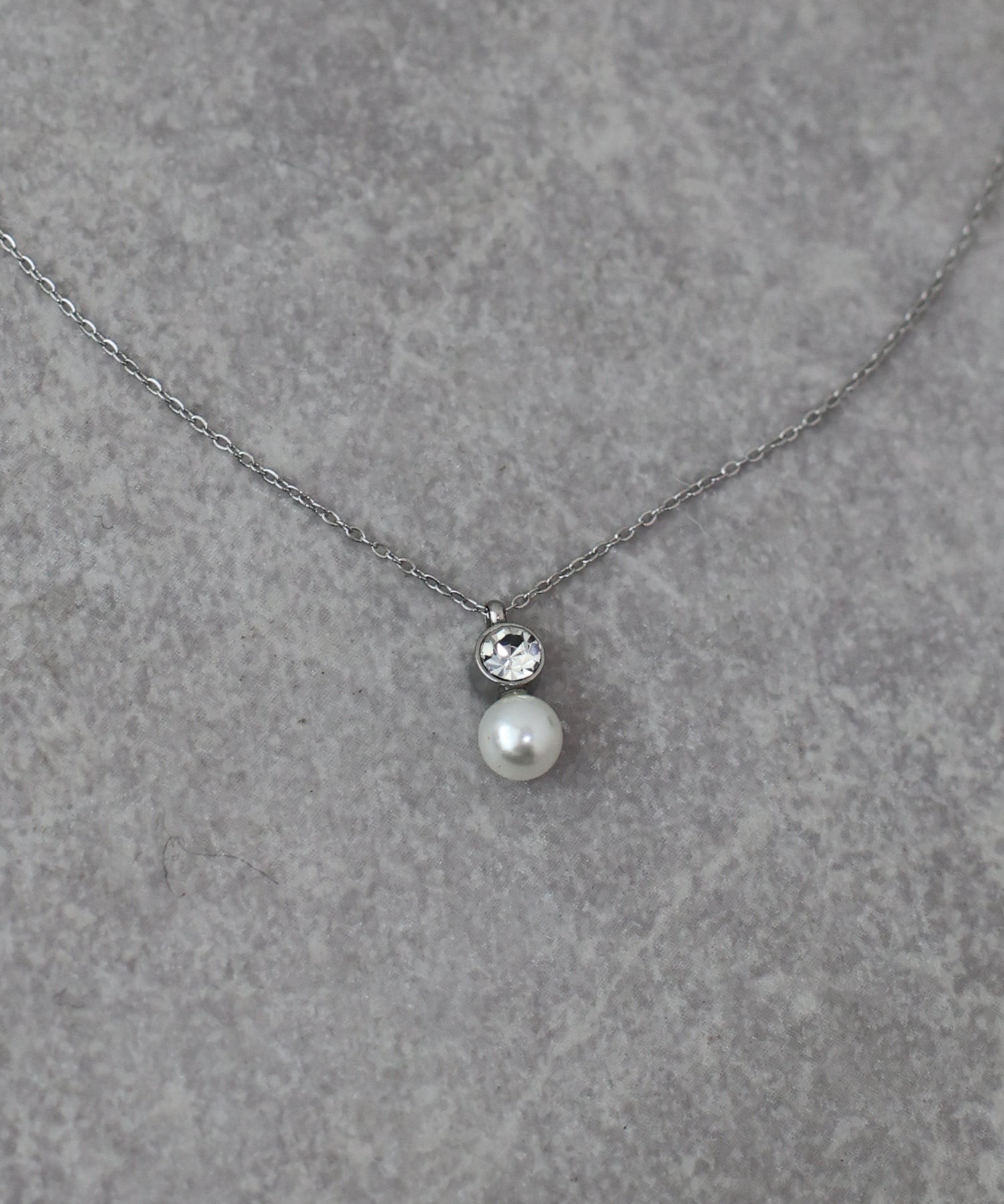 キュービックジルコニア×パールが洗練されたデザインのデイリーに身に着けられるネックレス