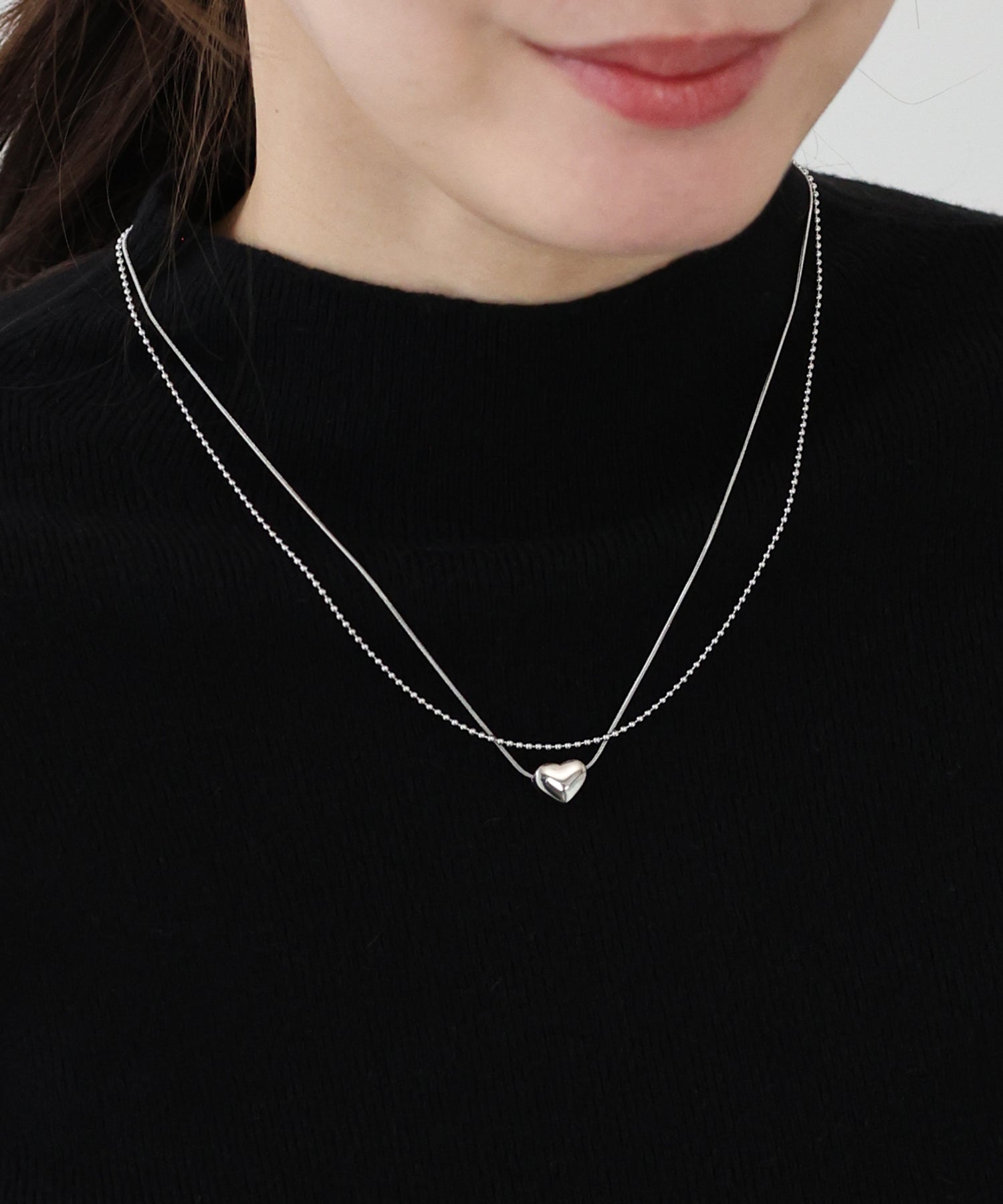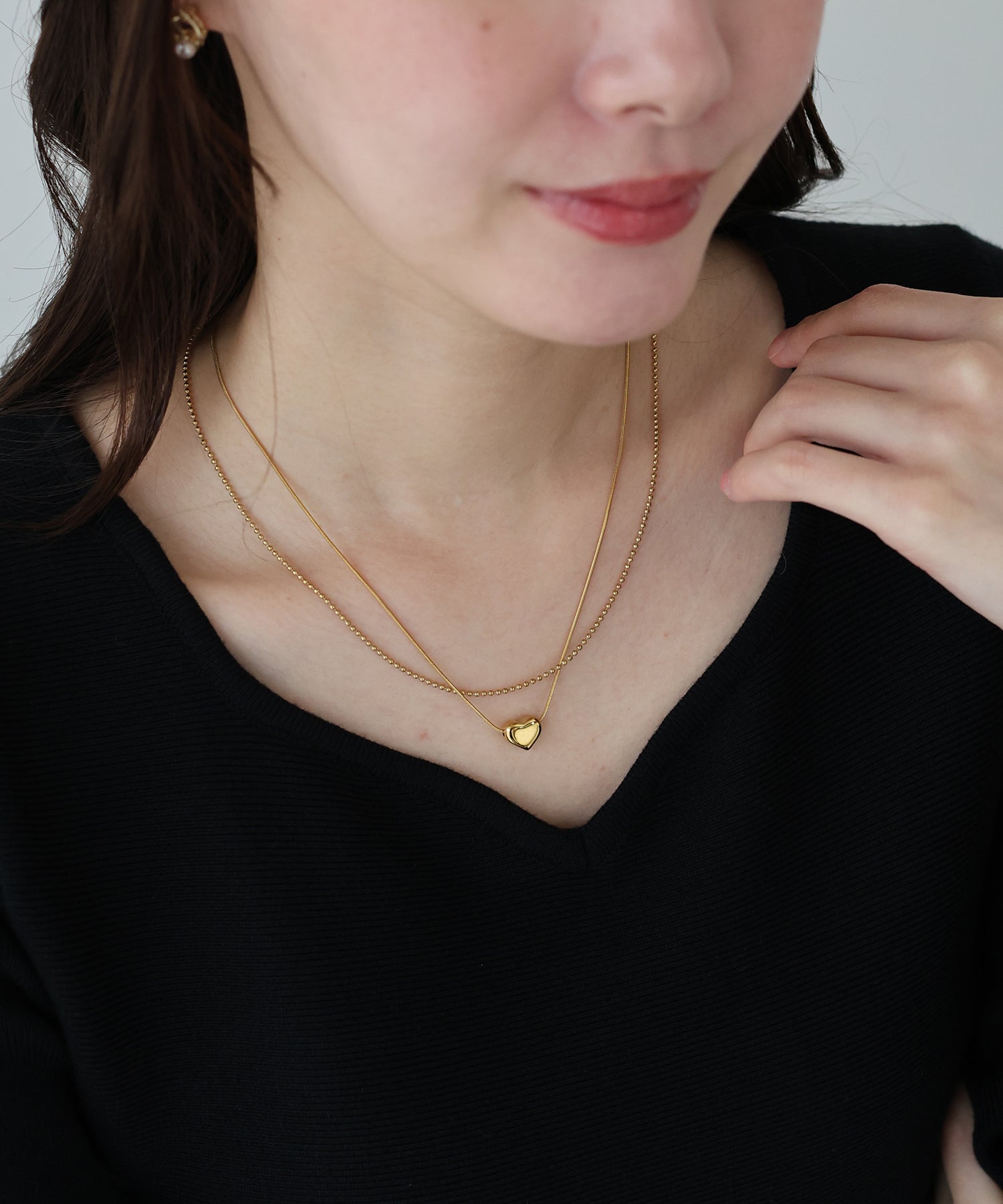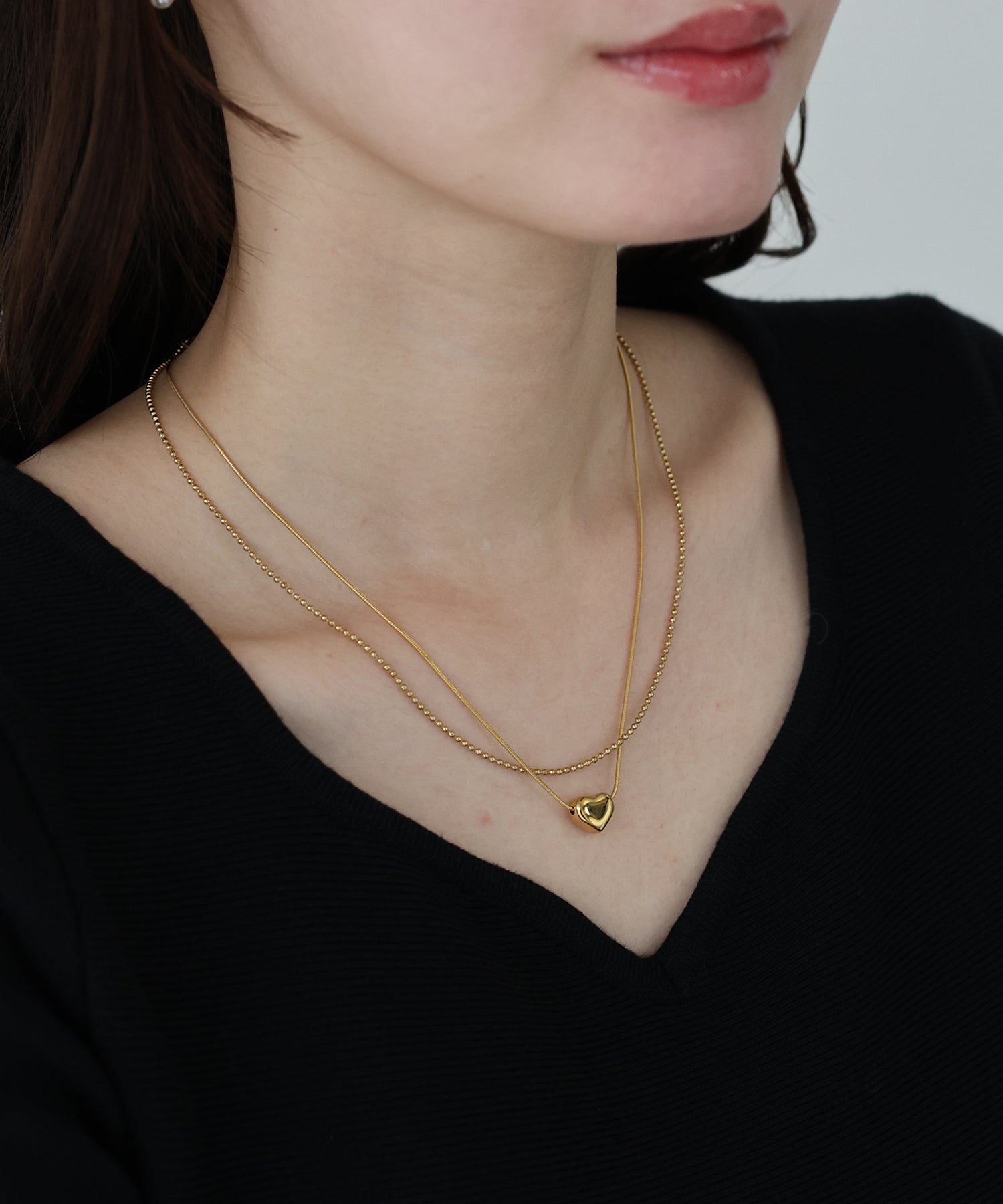 ハートモチーフ2連ボールチェーンネックレス / サージカルステンレス【ネコポス】