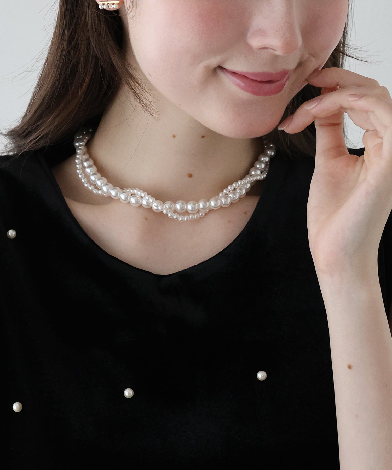 大小のパールをツイストさせたショートネックレス