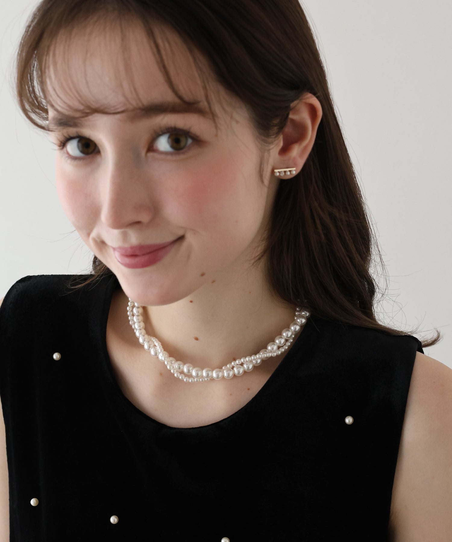 上品な光沢感のあるパールが装いに上品な印象を与えます。
