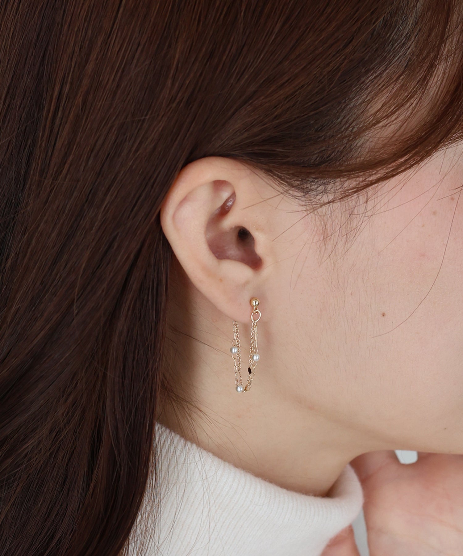 「花びら」を意味するペタルチェーンと、小さめパールをあしらった2種類のチェーンが
