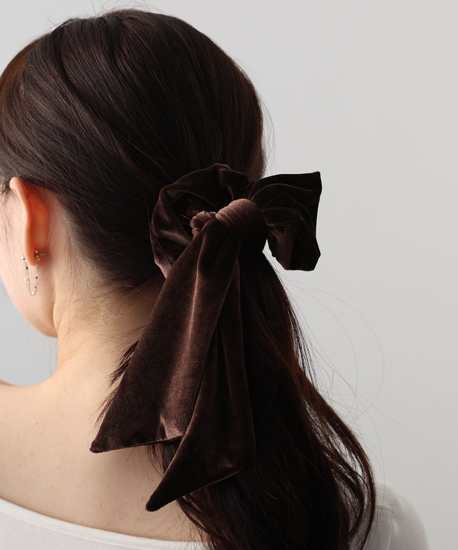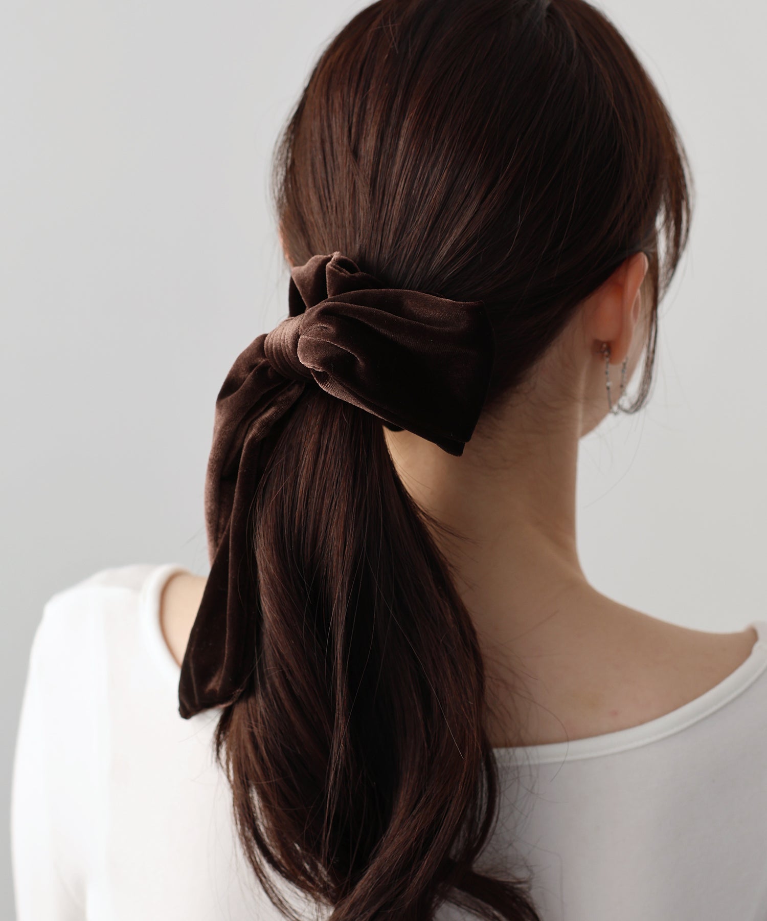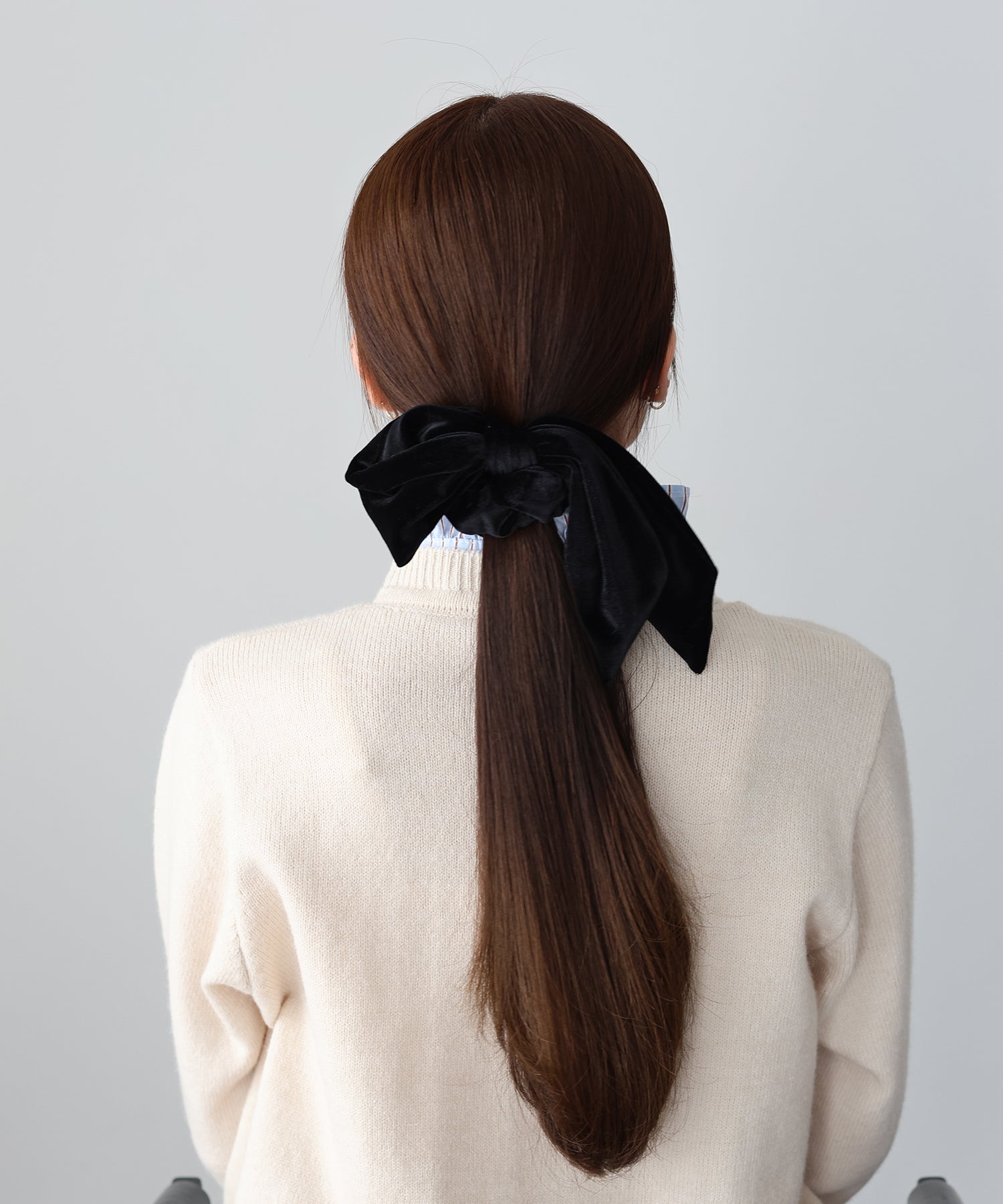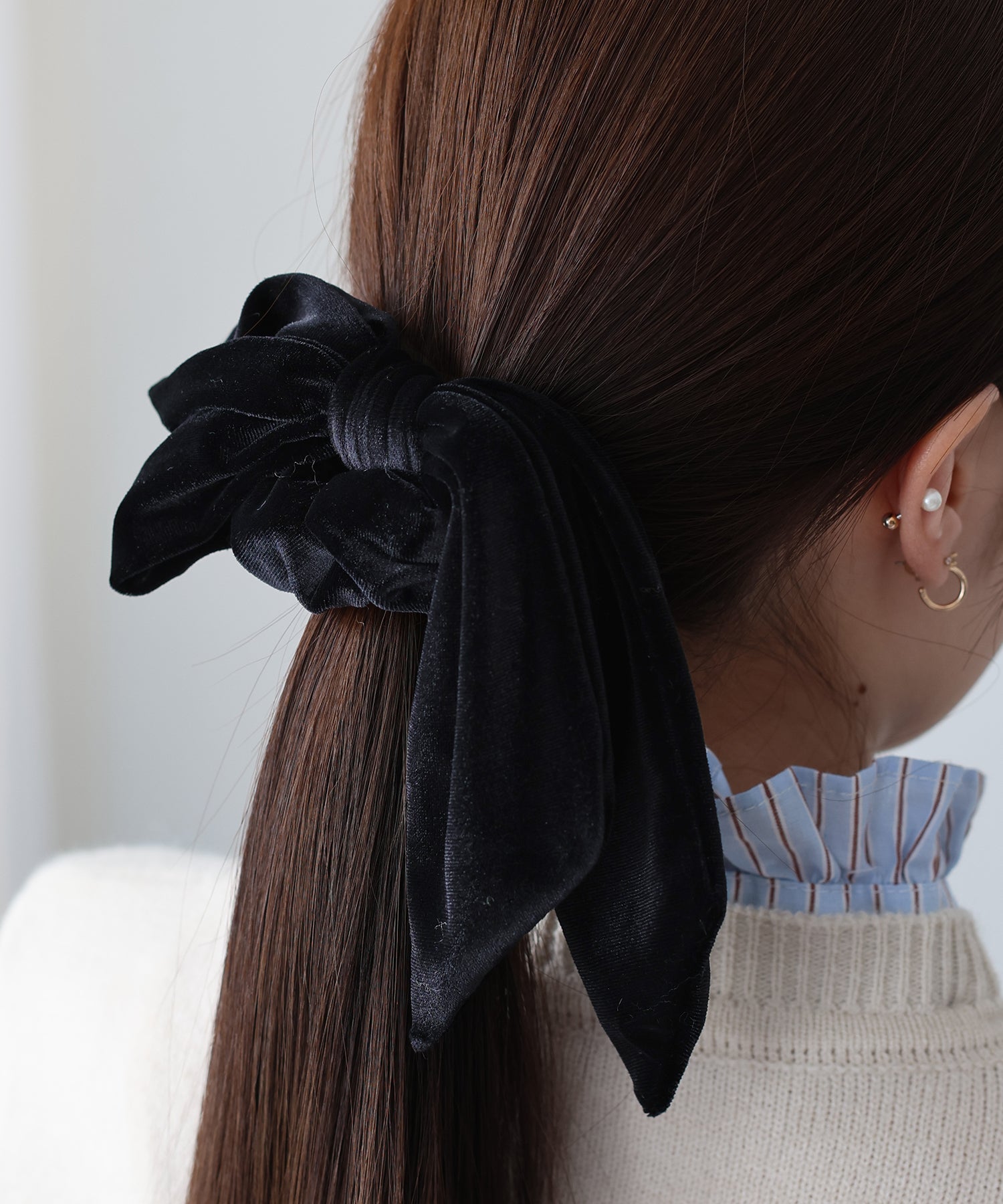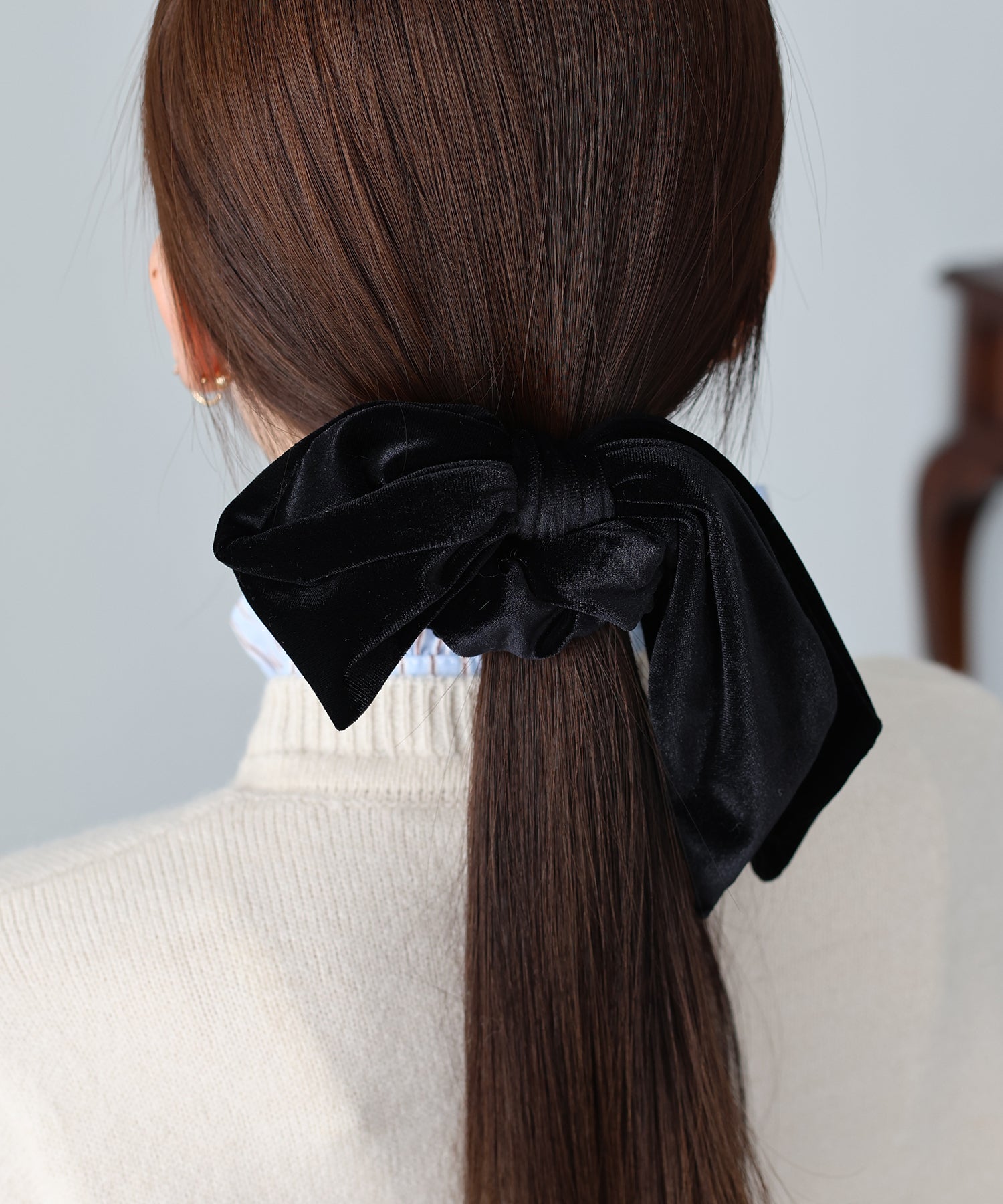 リボンは取り外し可能なので、シンプルなベロアシュシュとして2WAYで楽しめます。