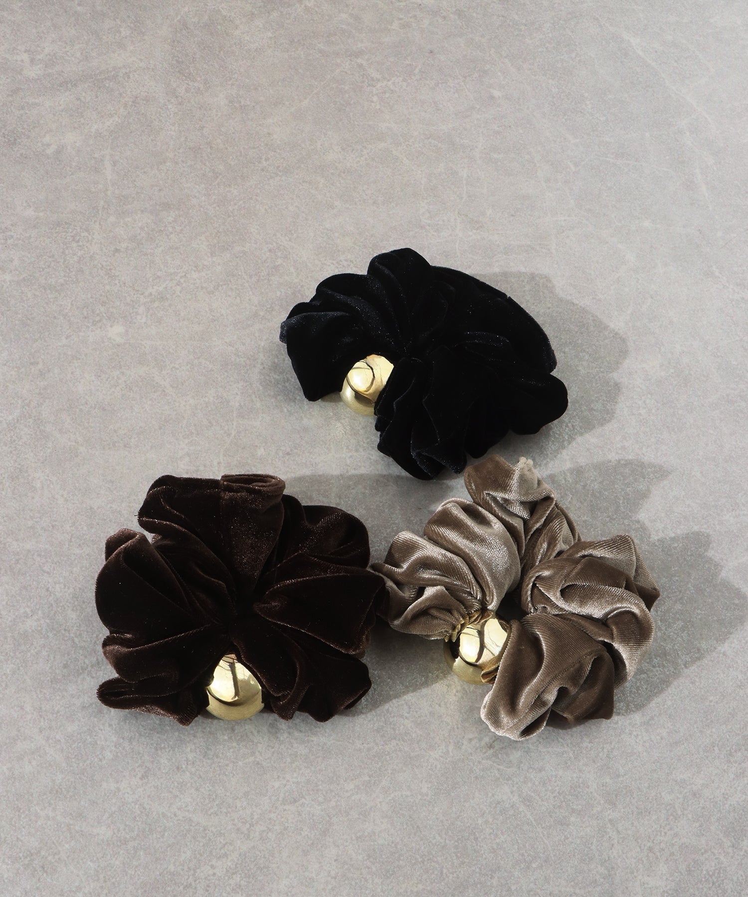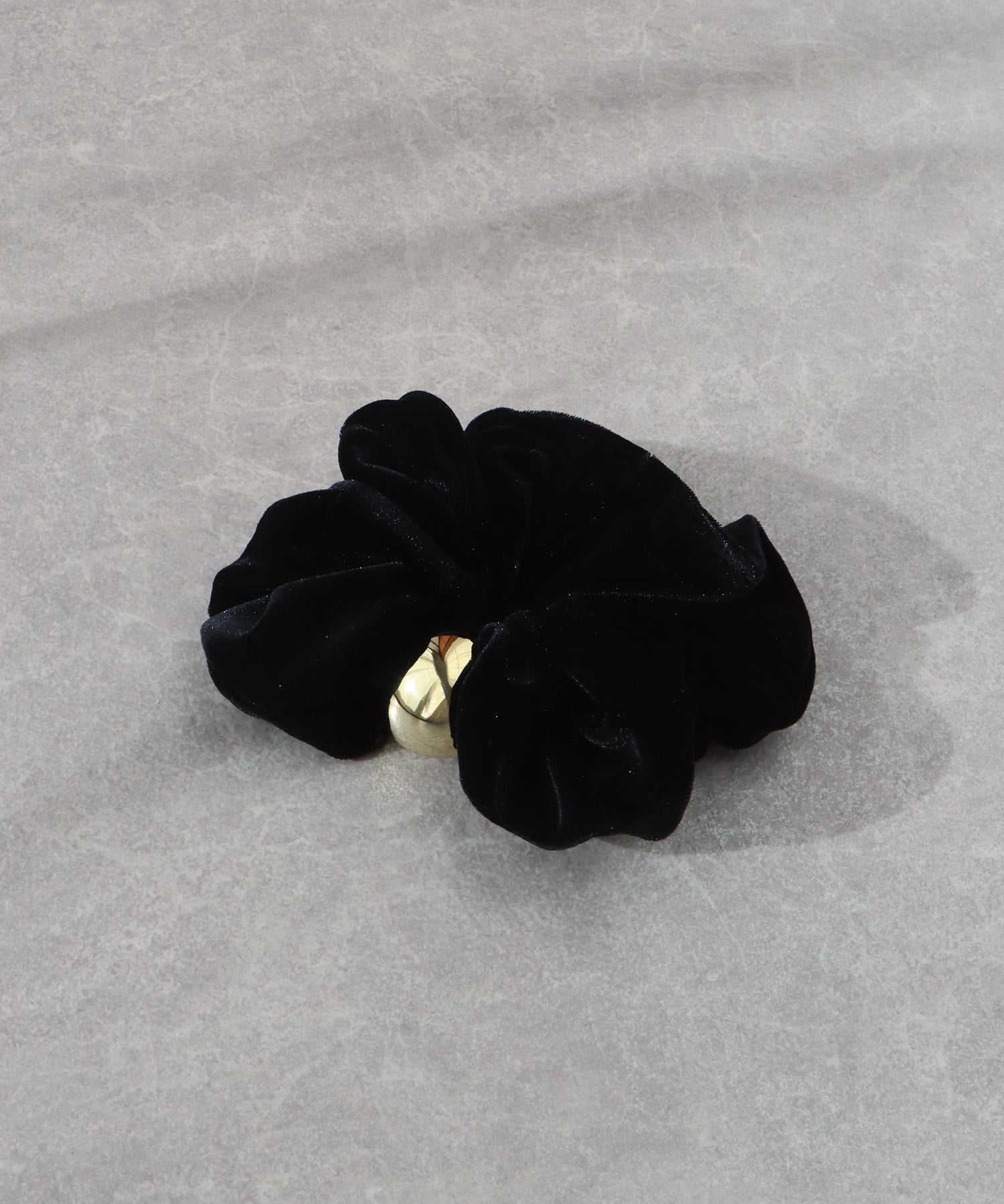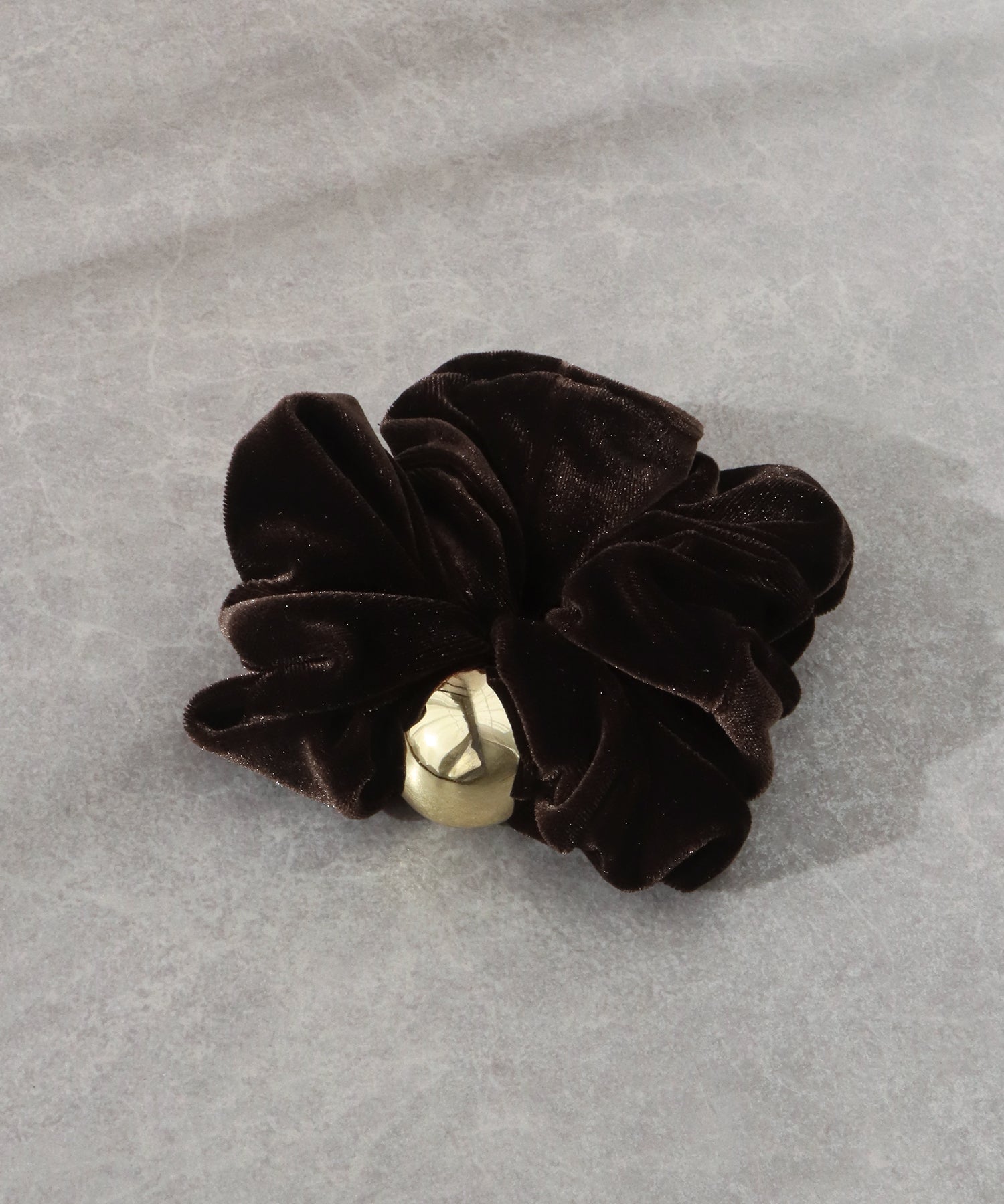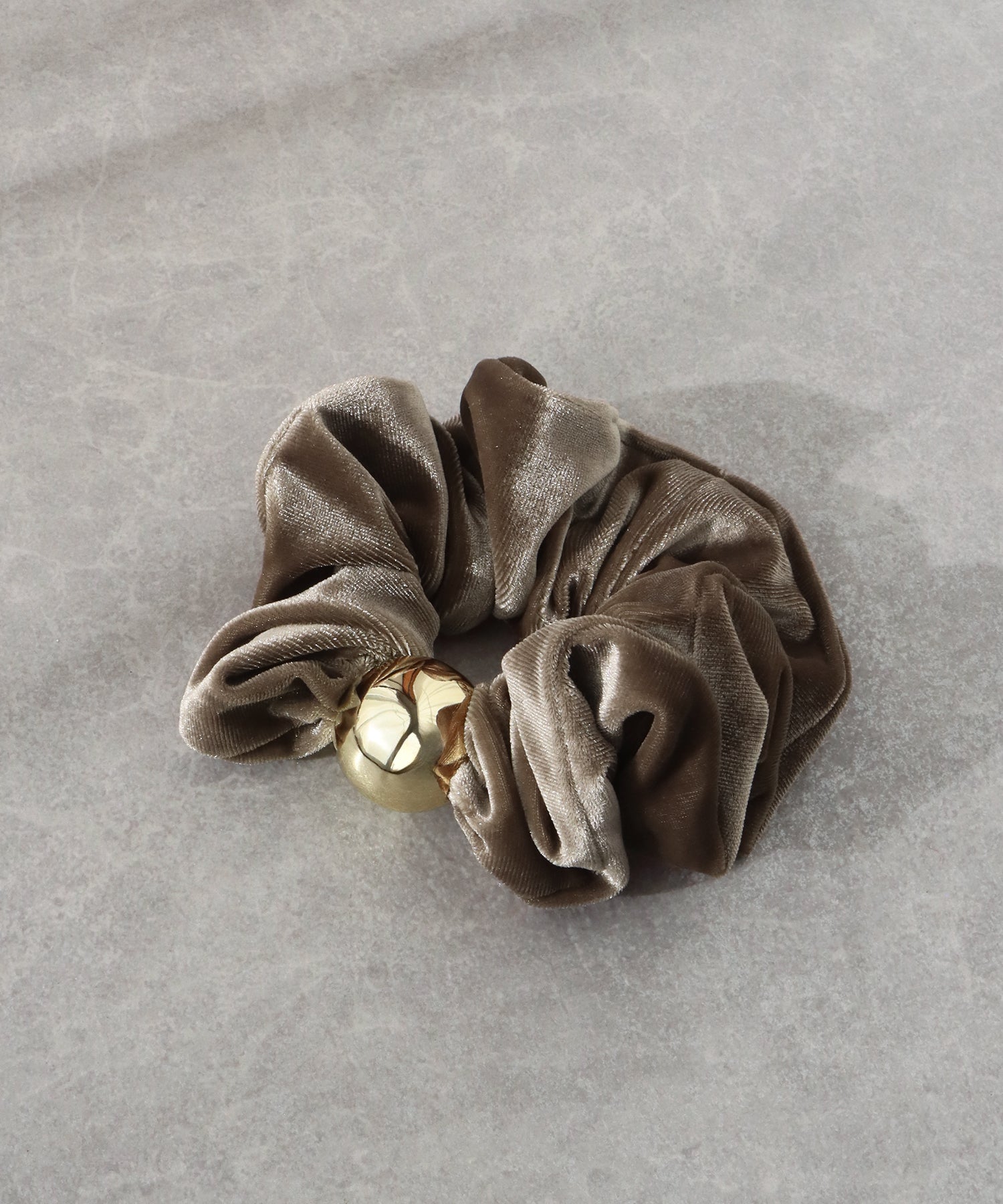 ゴールドのメタルボールがアクセントのベロアシュシュ