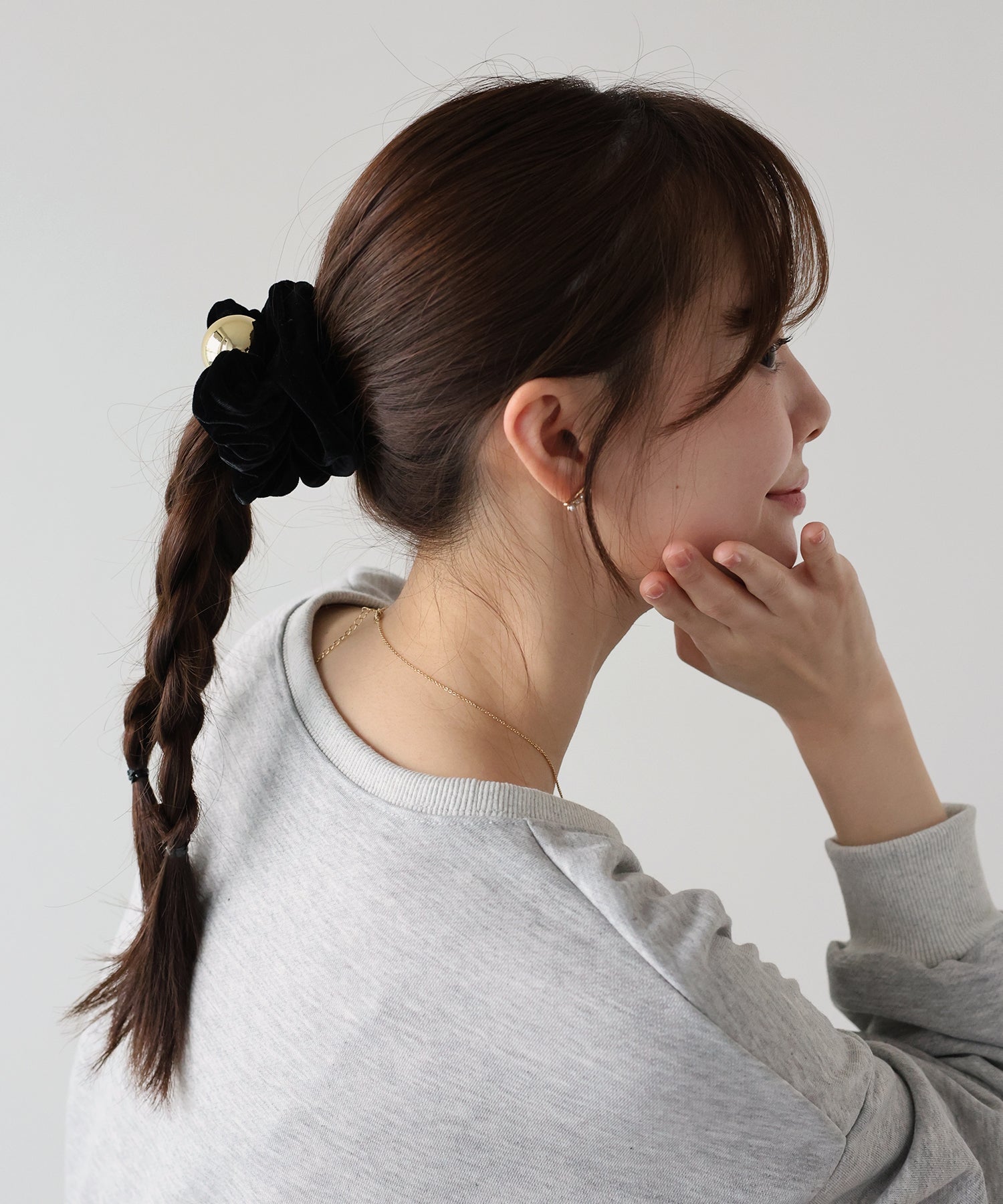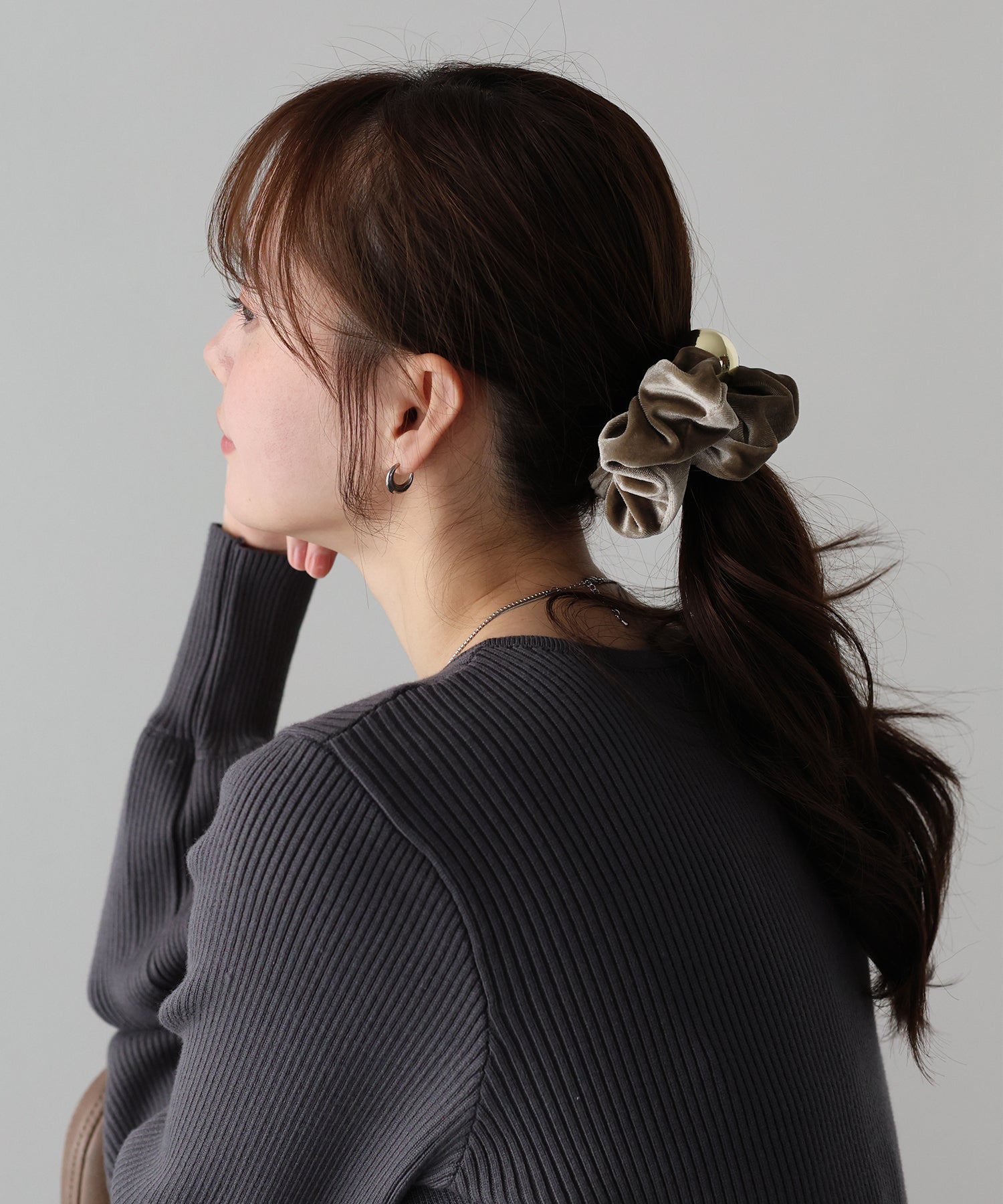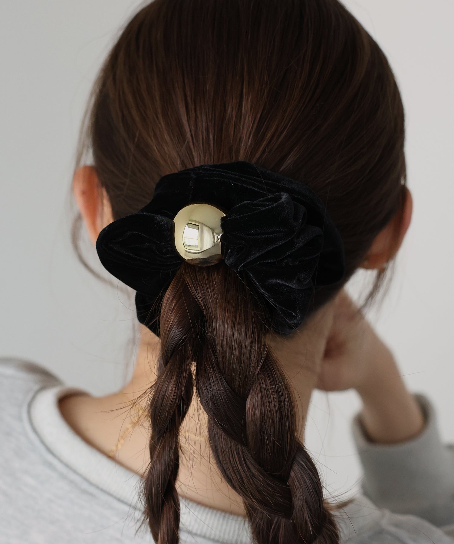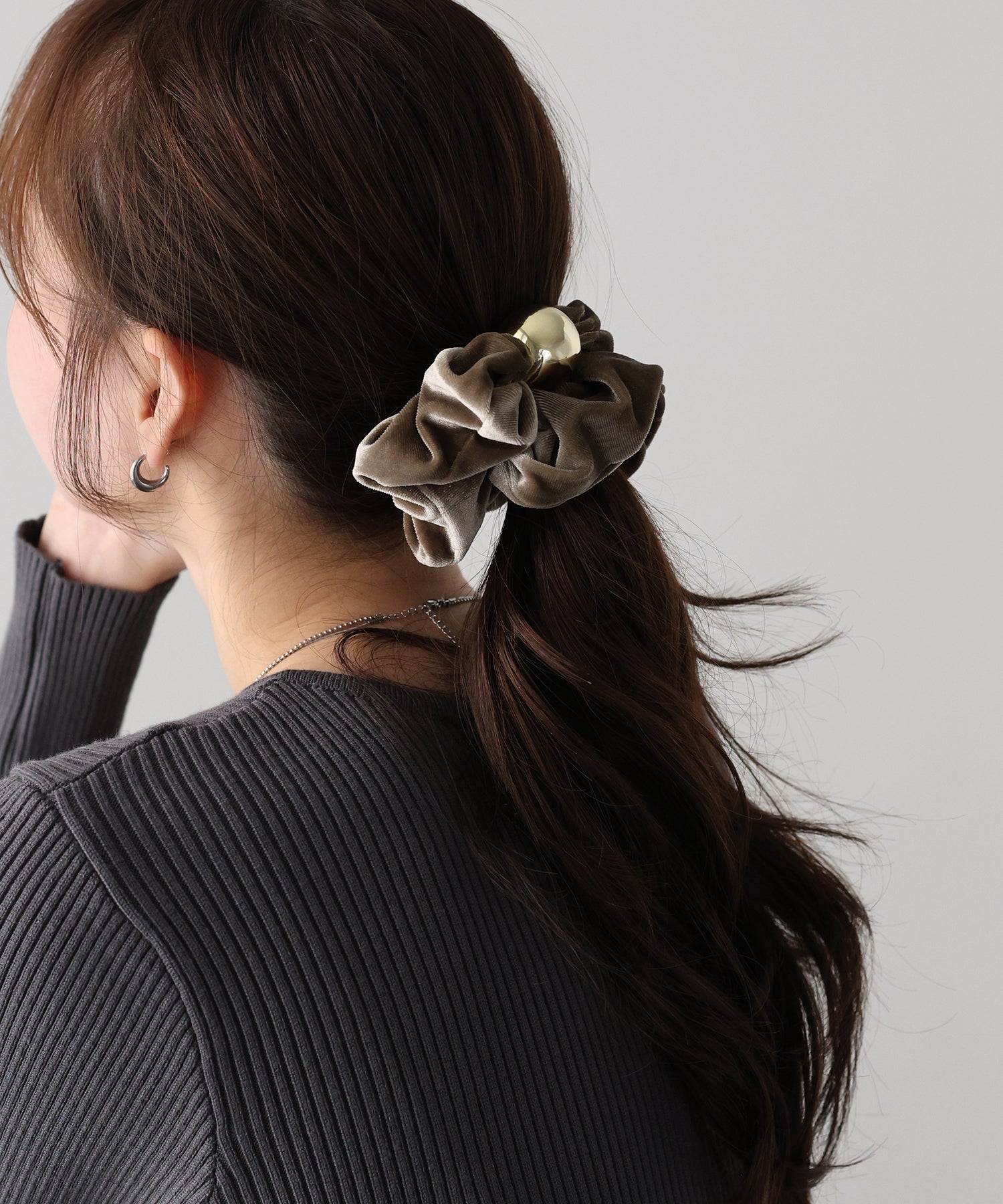 メタルモチーフがアクセントになった、ベロアシュシュ。