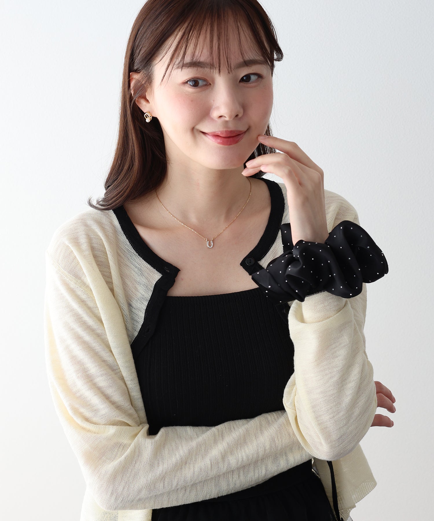 小粒のメタルドットが散りばめられたデザイン