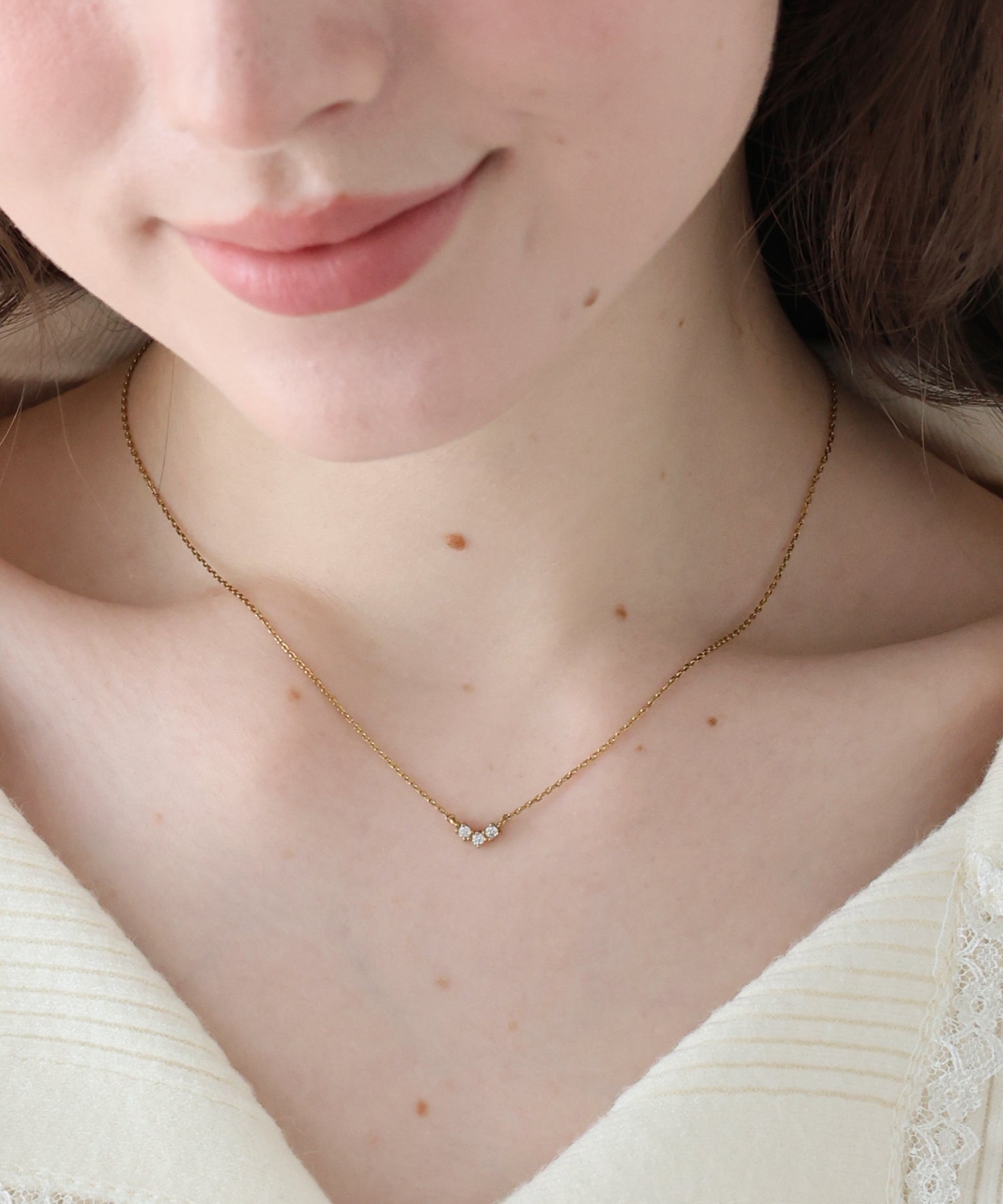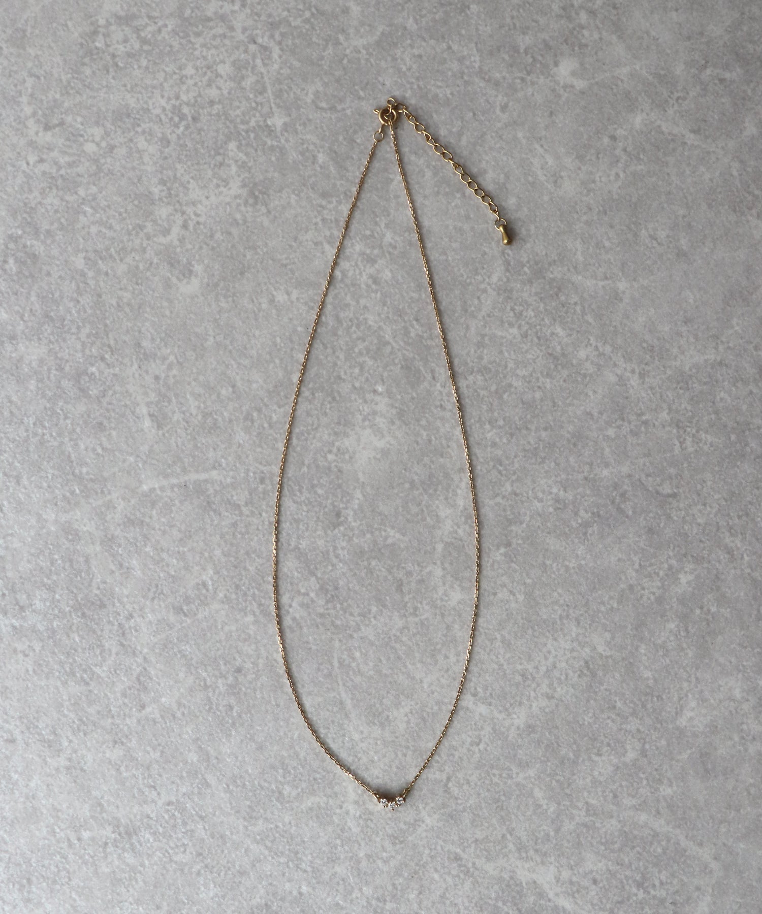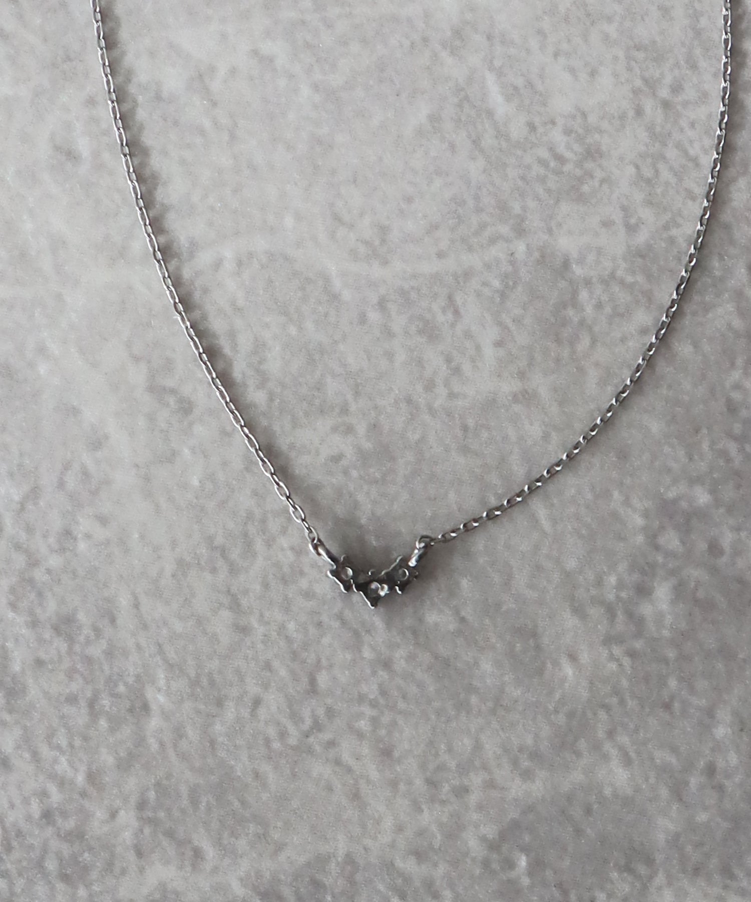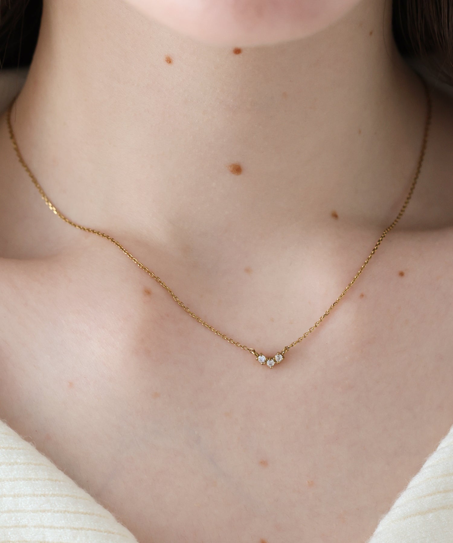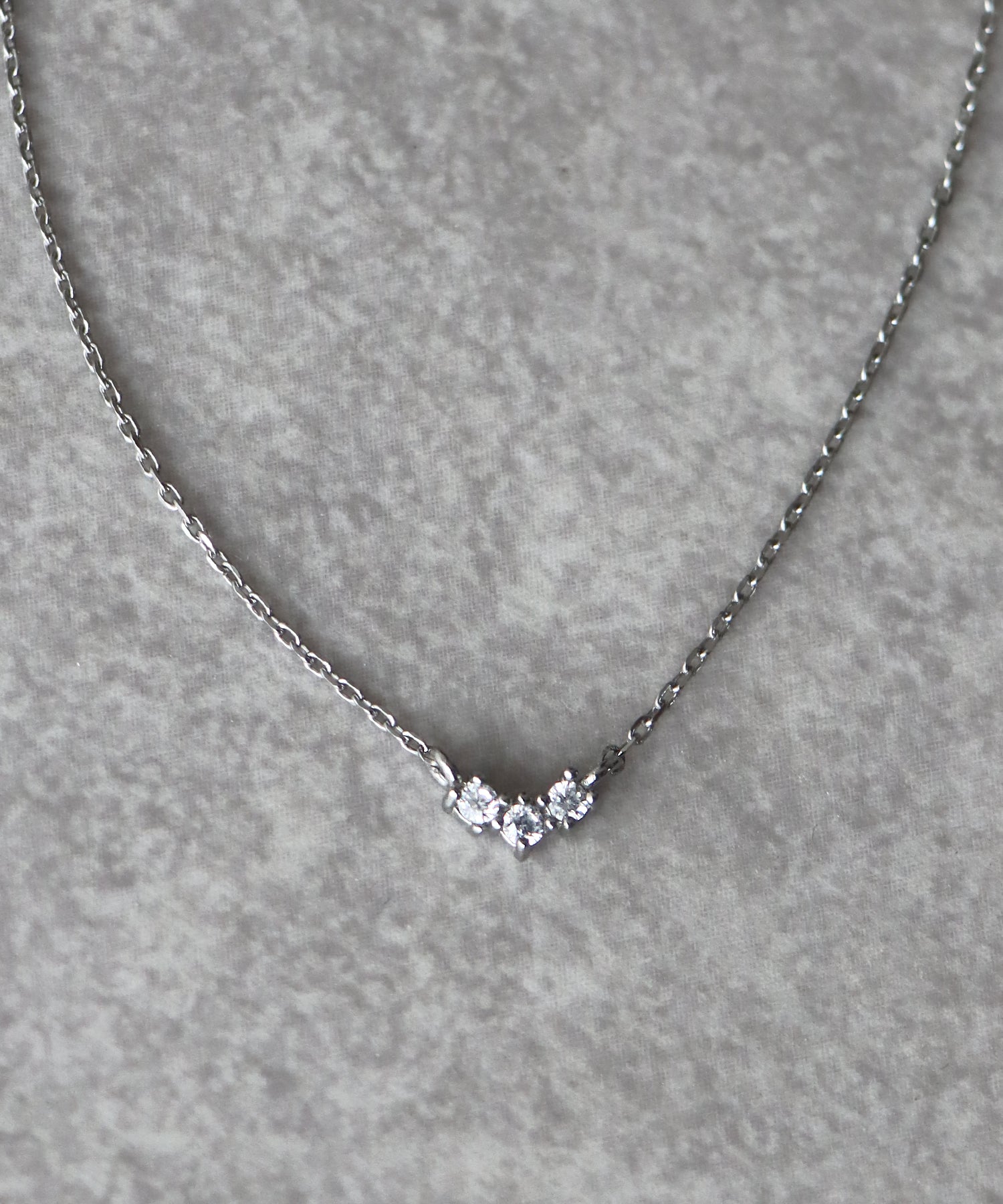小ぶりなキュービックジルコニアが三つ並んだデザインのネックレス。