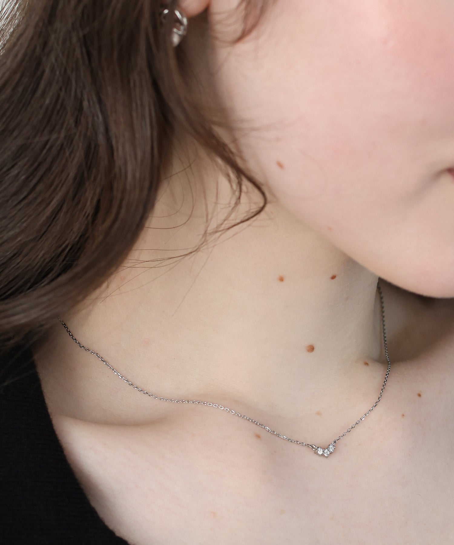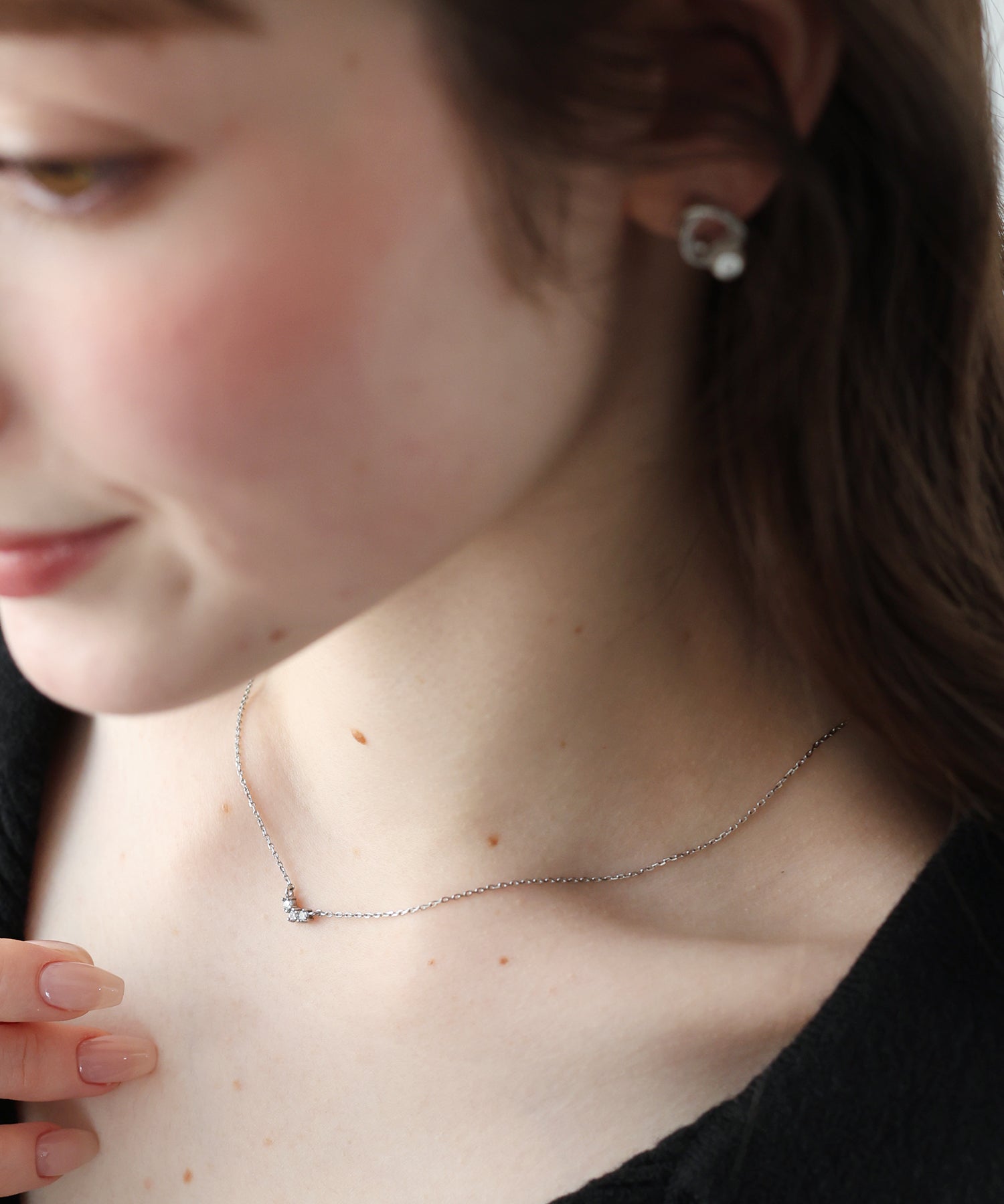 繊細なきらめきが、首元に上品なアクセントをプラスし、