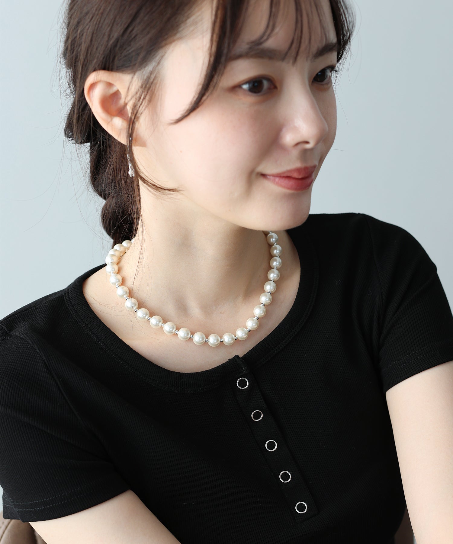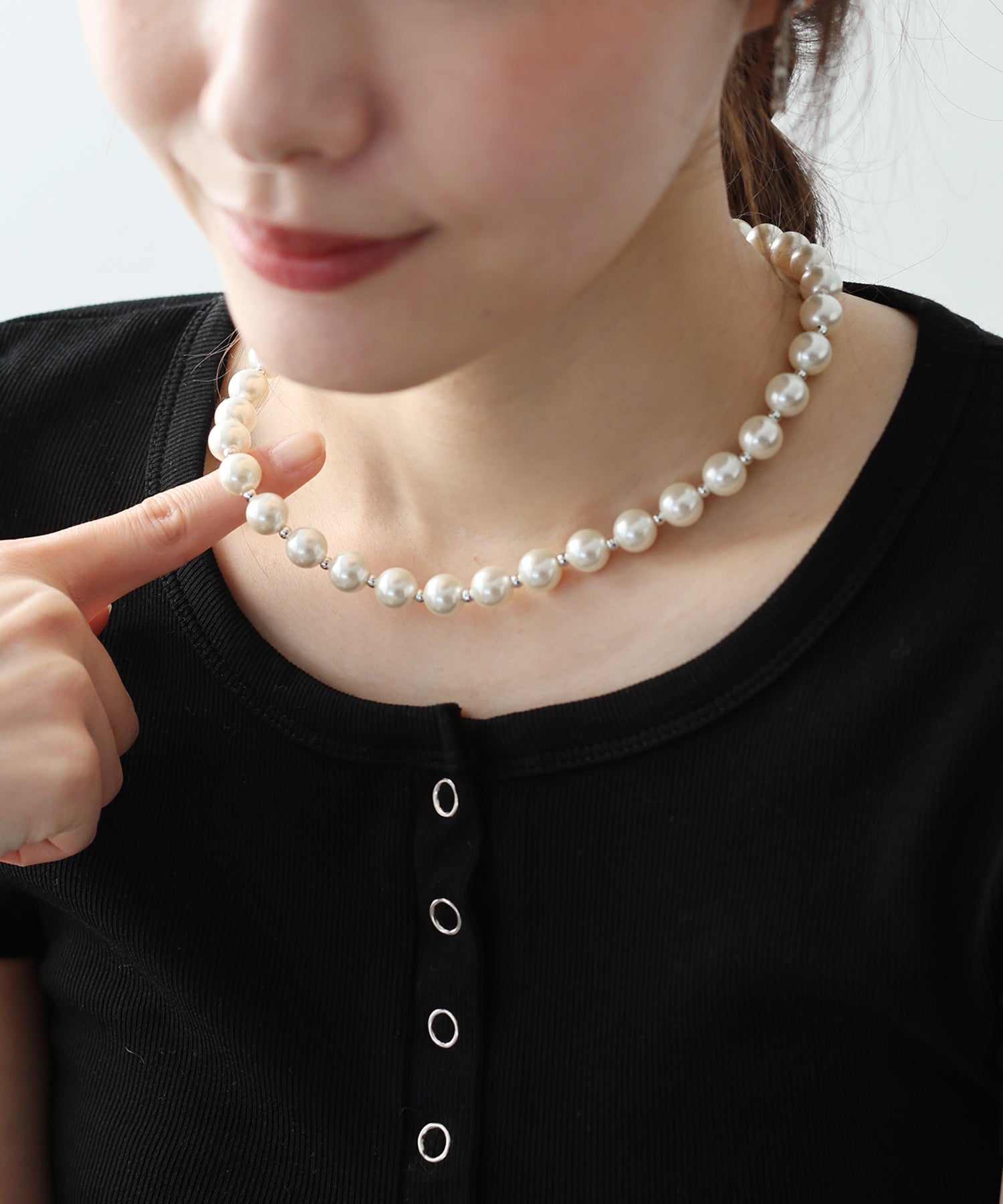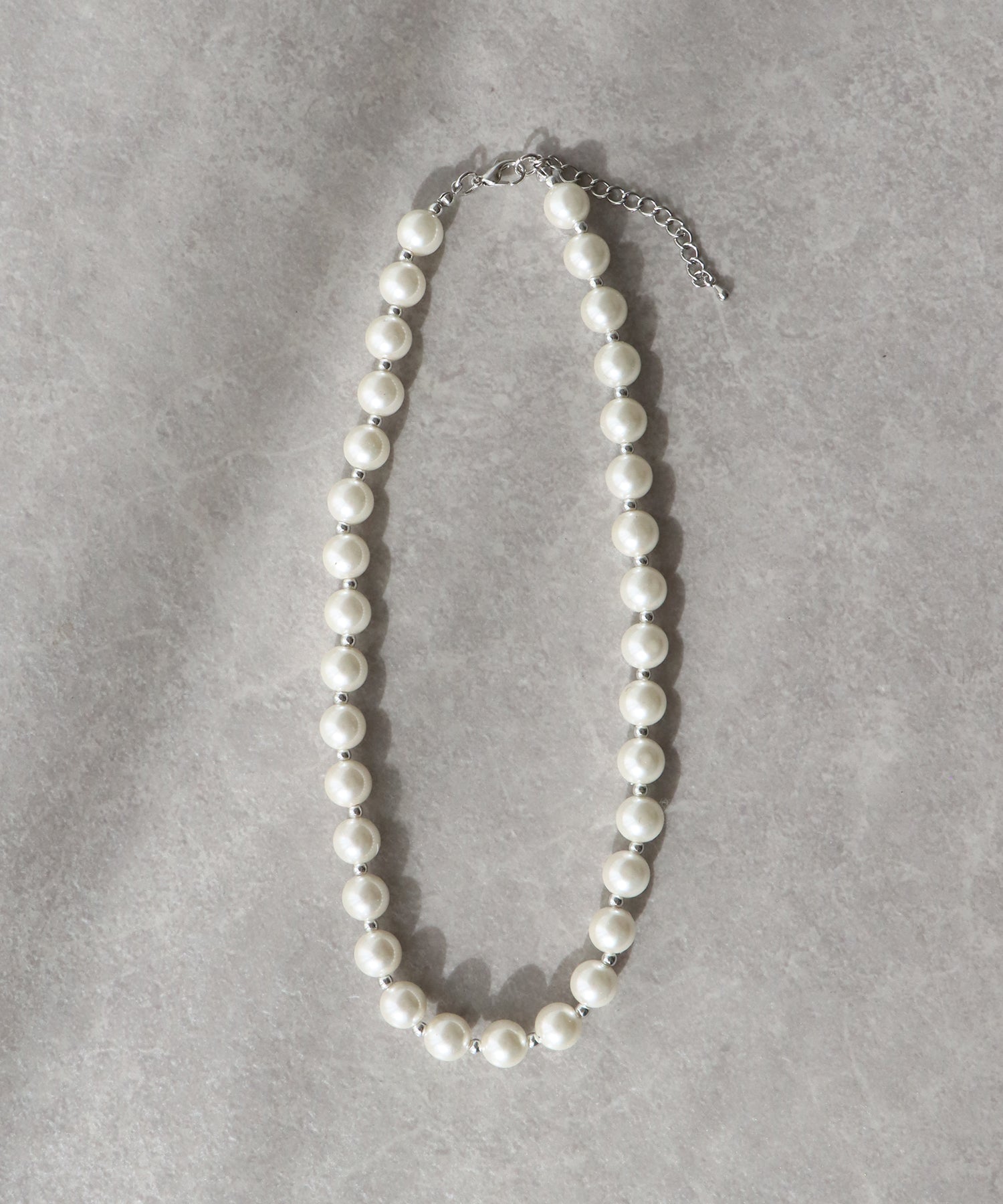 適度に存在感のある9mm玉のネックレスはTシャツやスウェットなどと合わせると