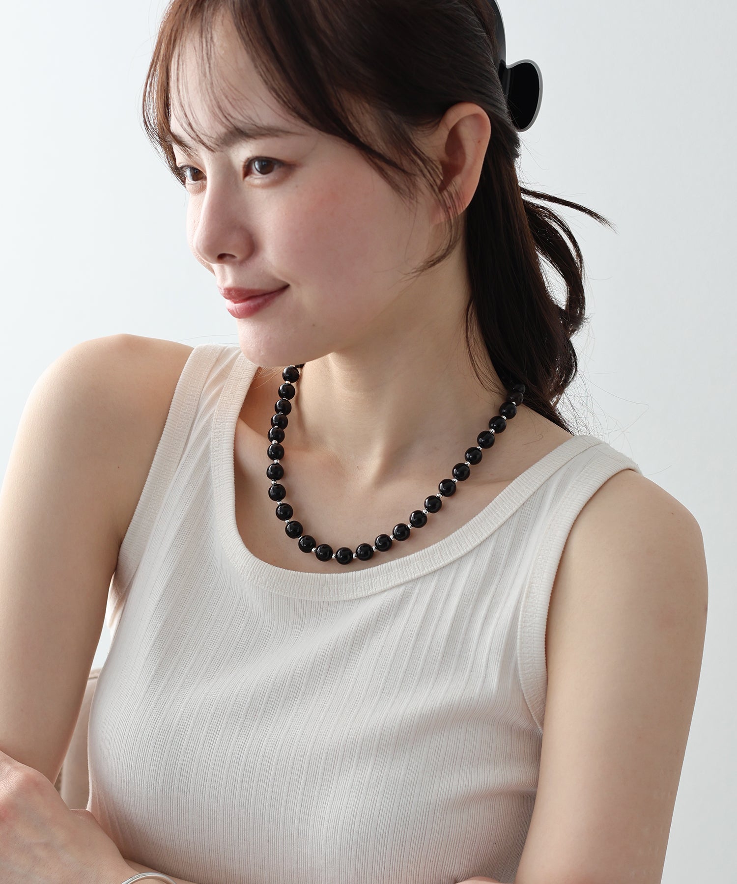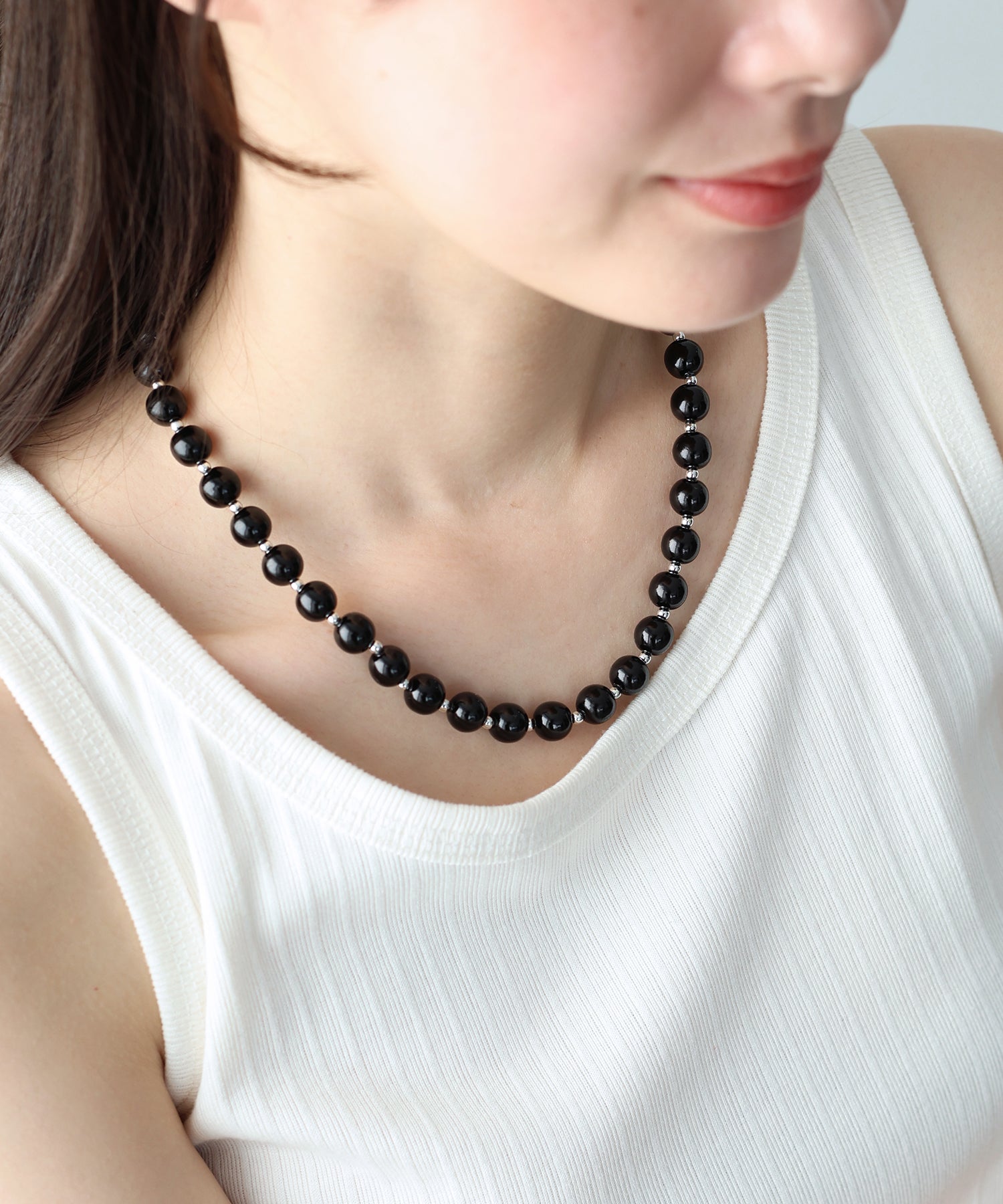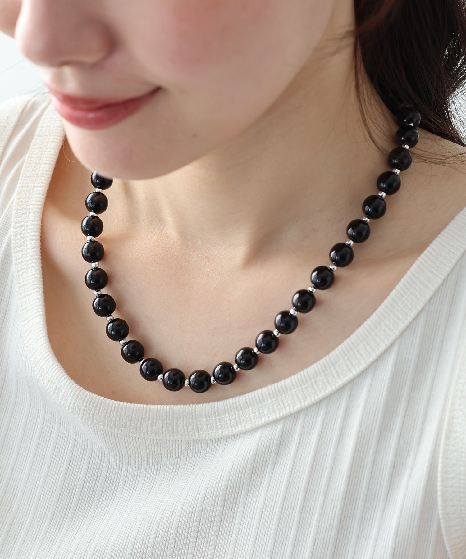 ブラック/パール シルバービーズネックレス【ネコポス】