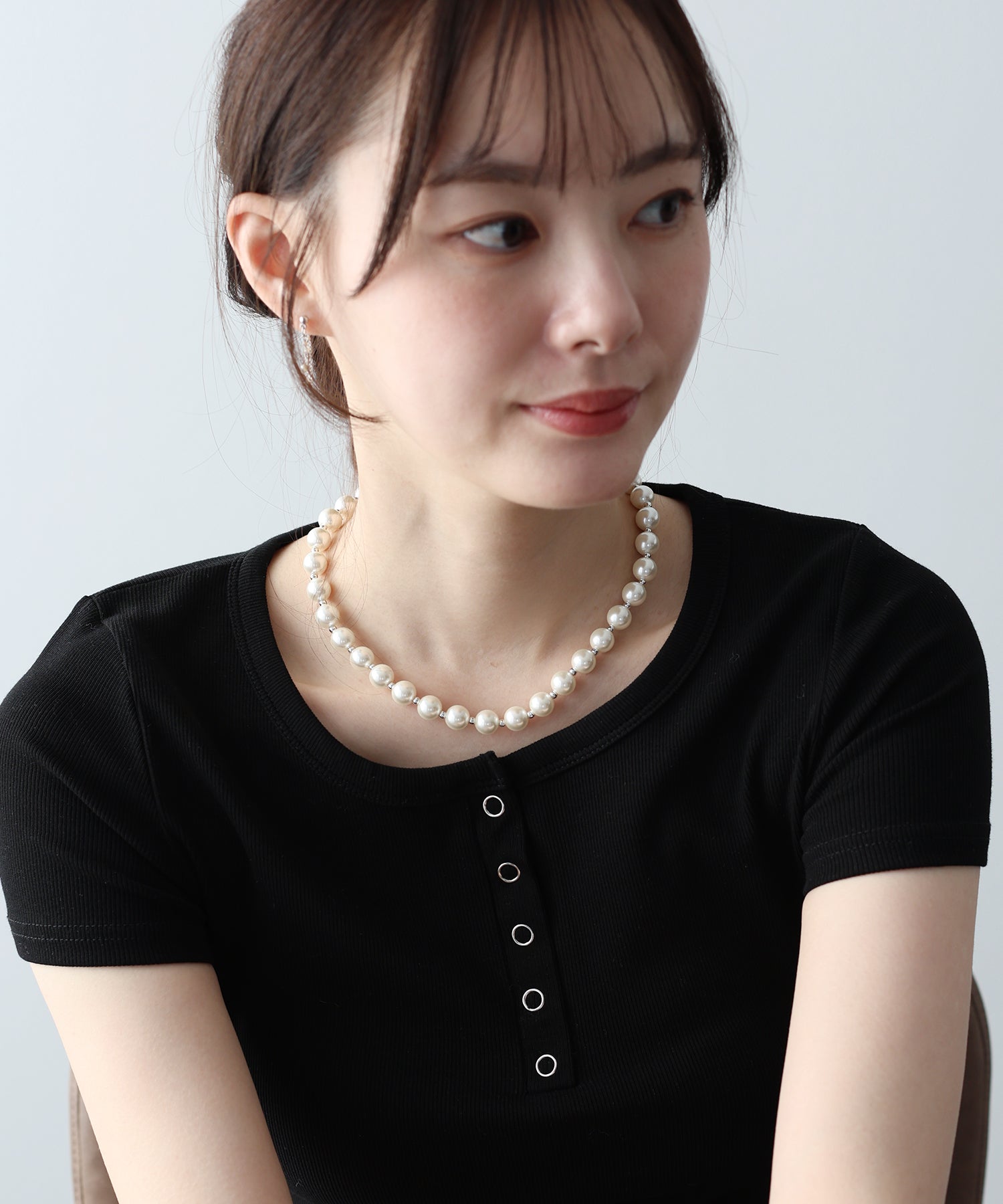 ビジューパールネックレス / サージカルステンレス【ネコポス】