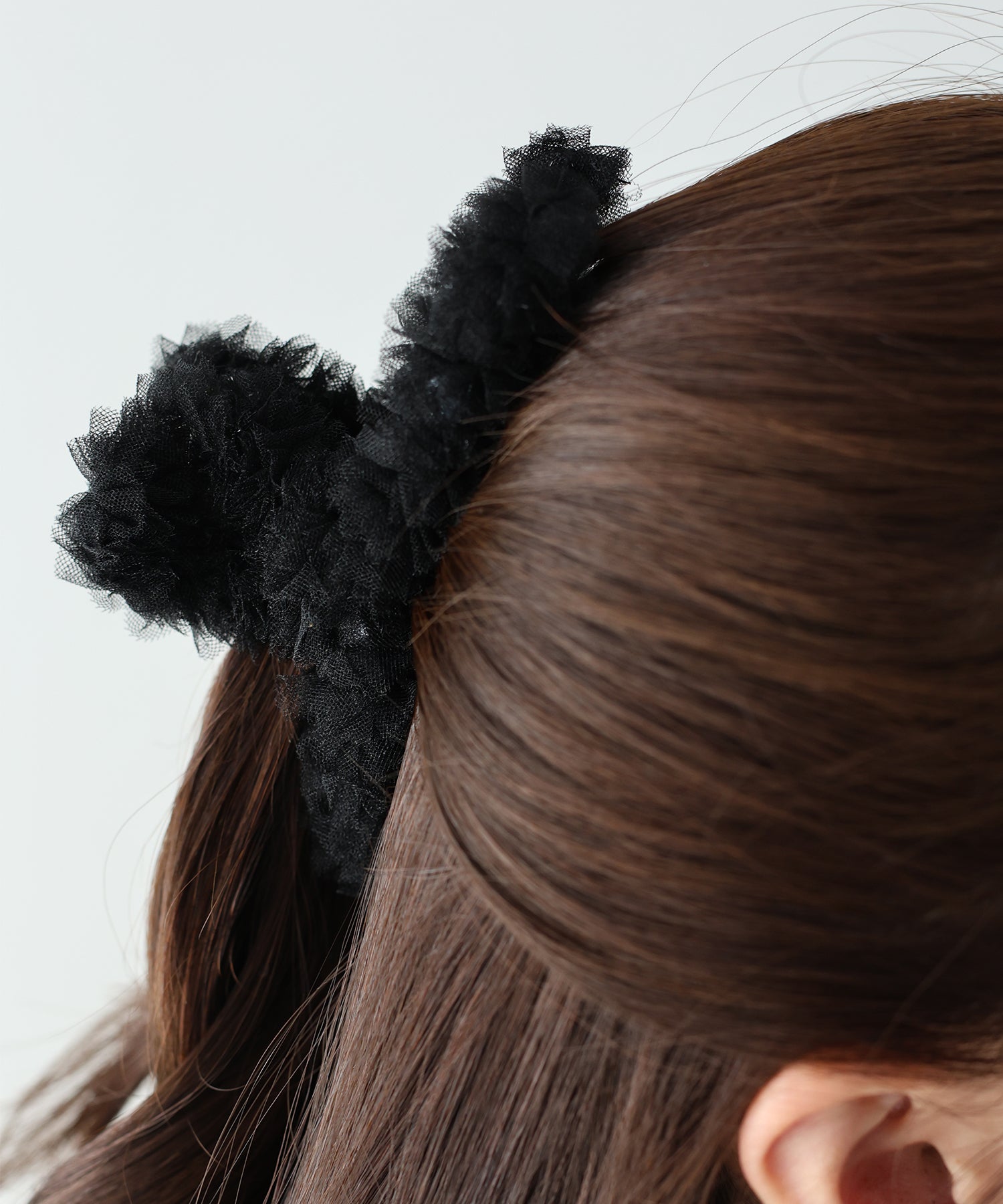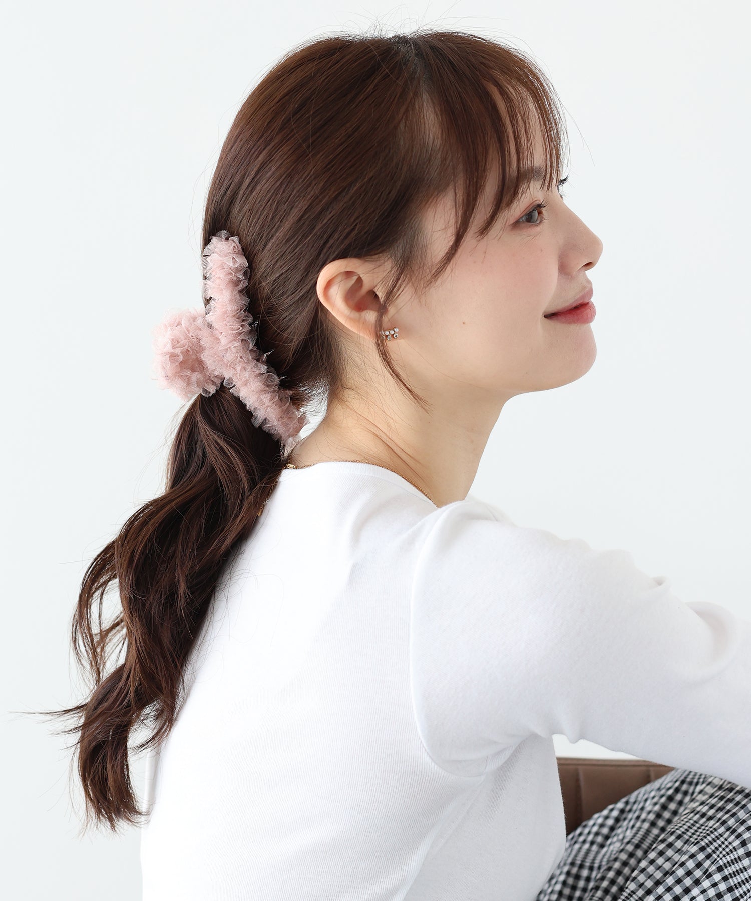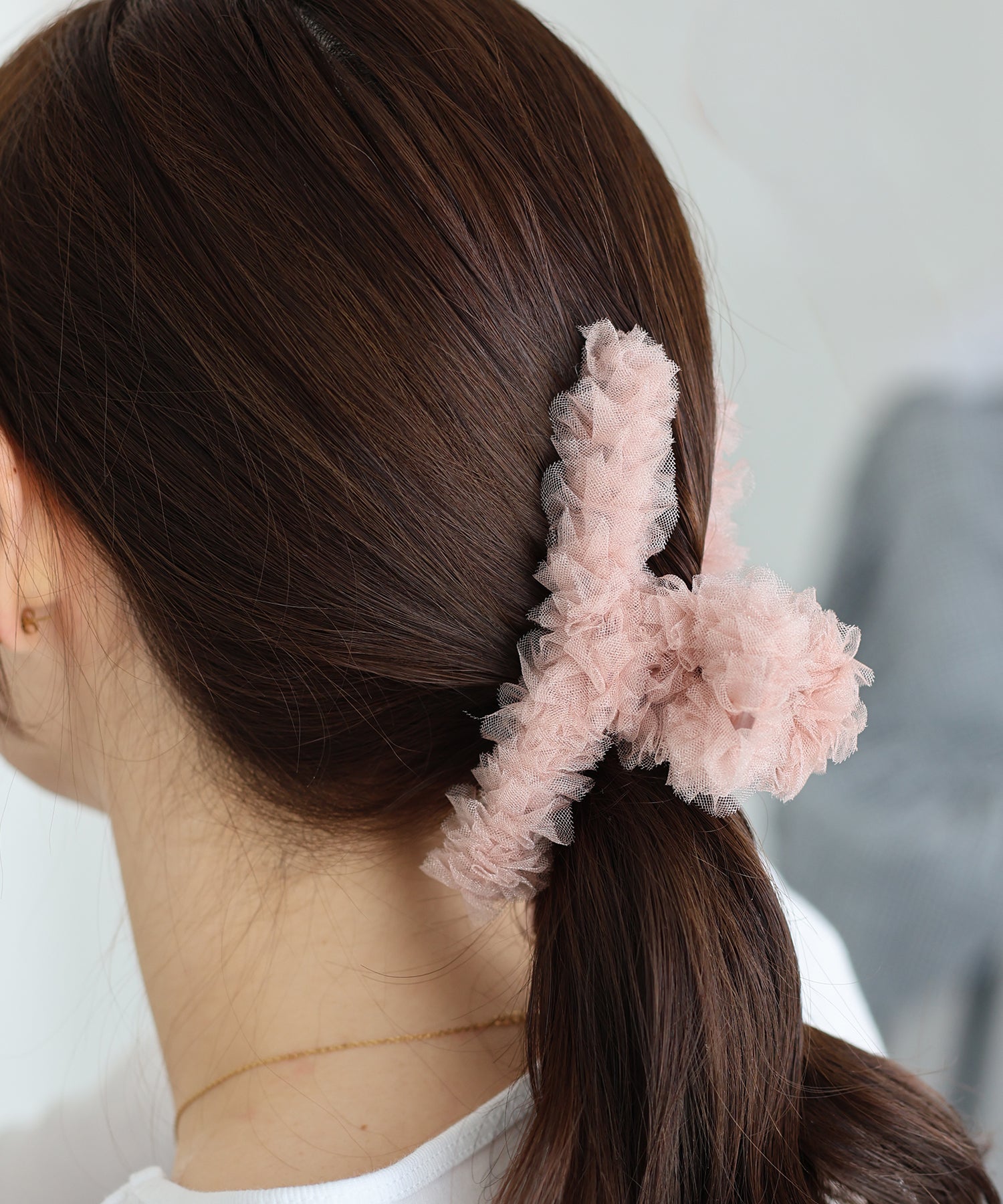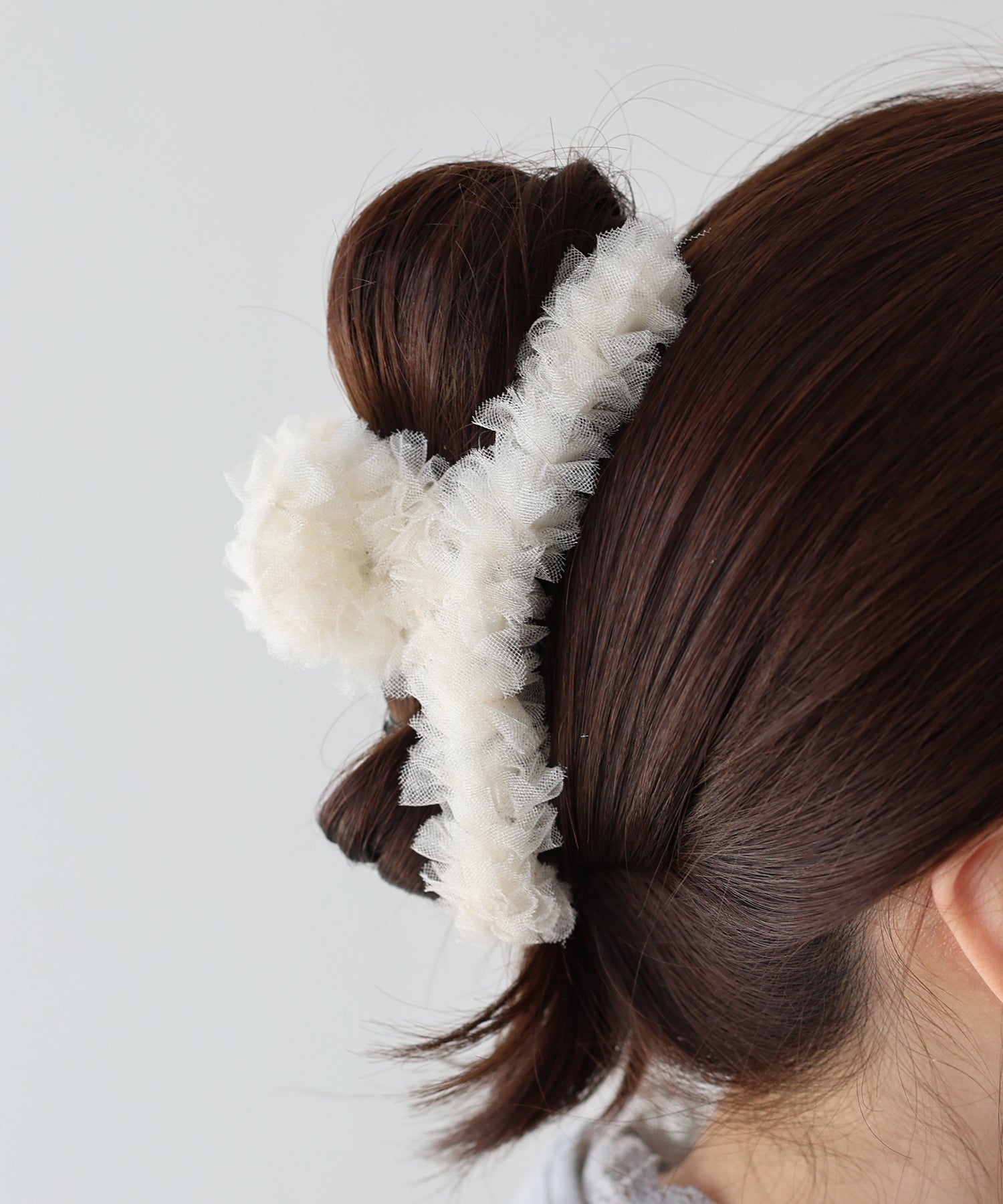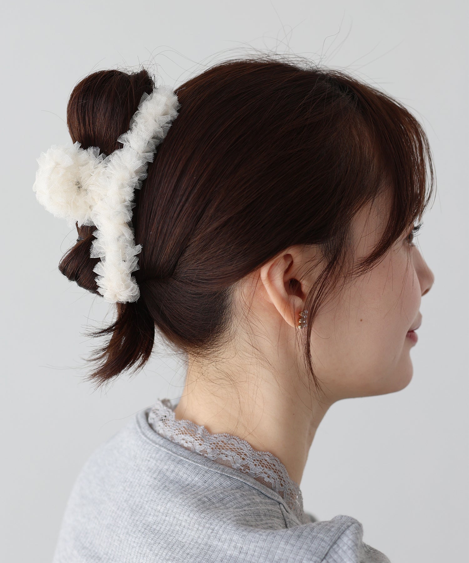 フリルチュールをたっぷりあしらった、フェミニンな魅力のバンスクリップ。