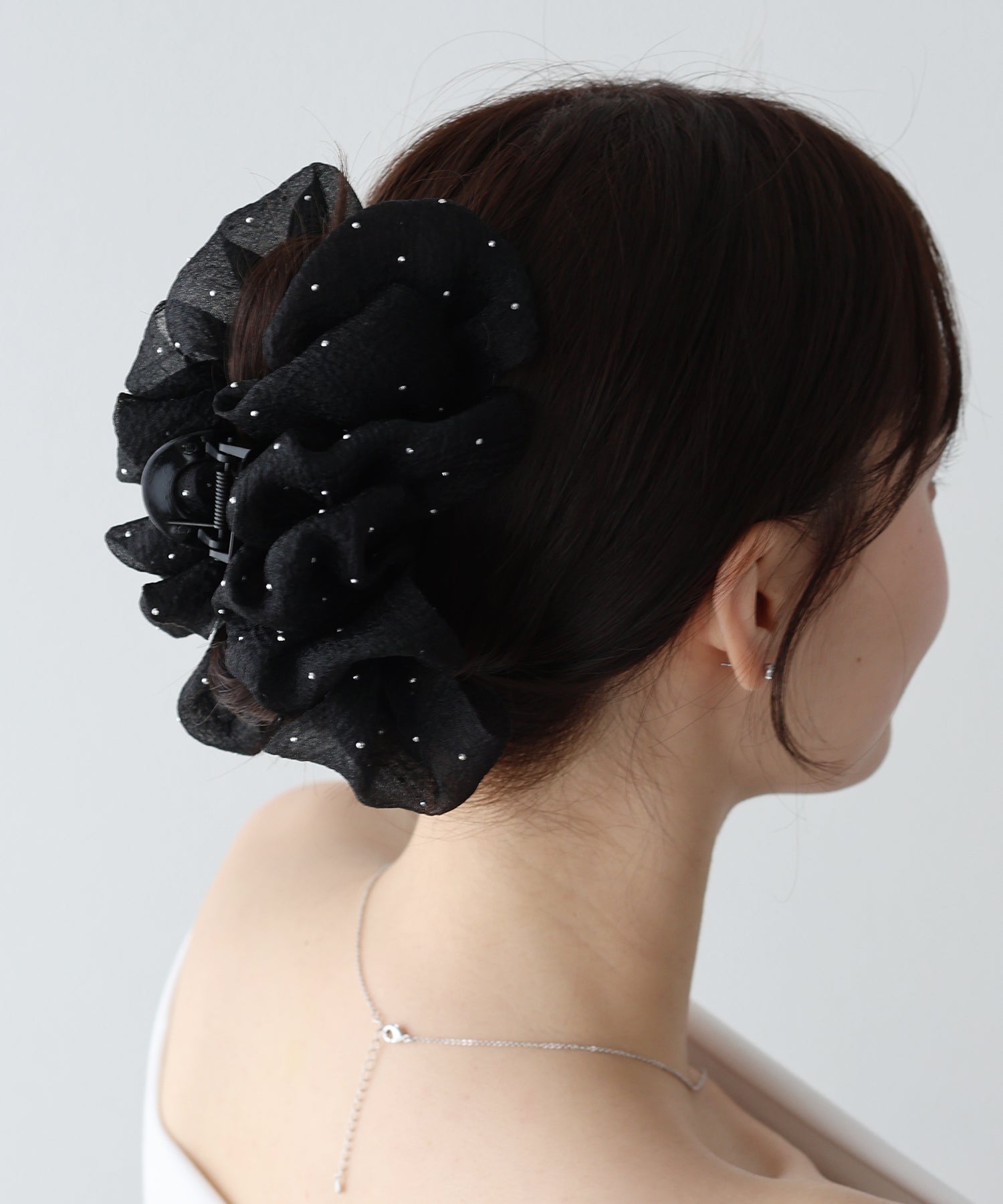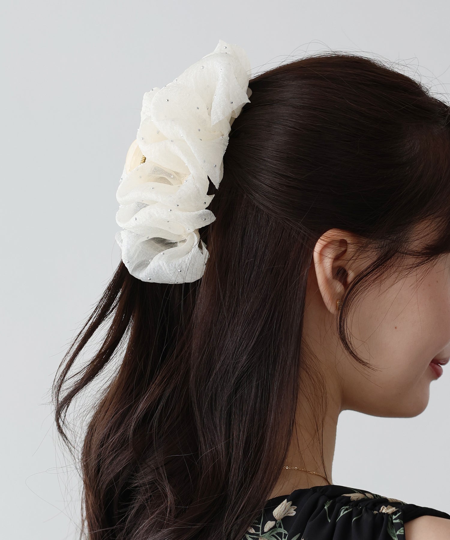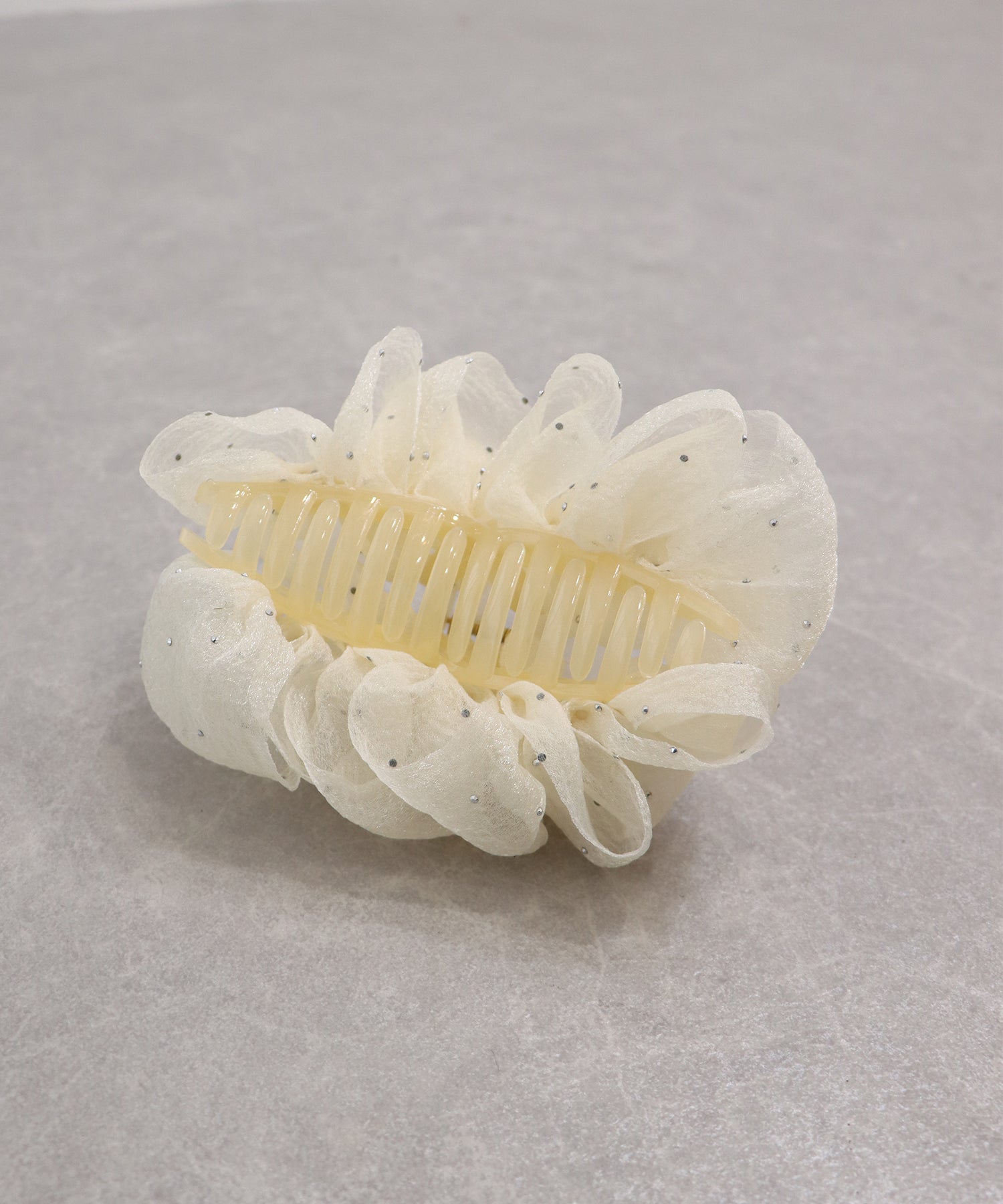 軽やかに広がるフリルをあしらった、大人かわいい魅力のバンスクリップ。