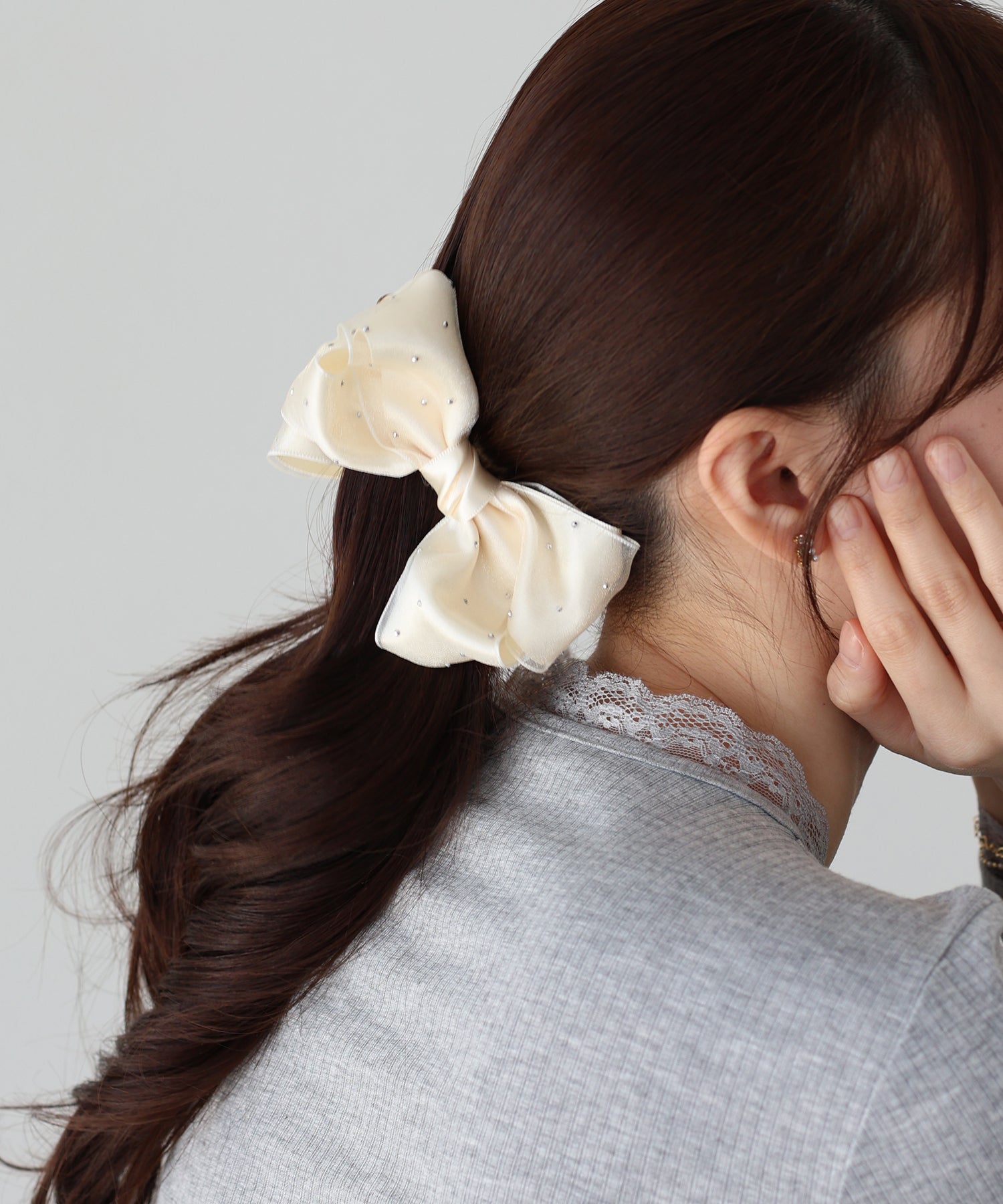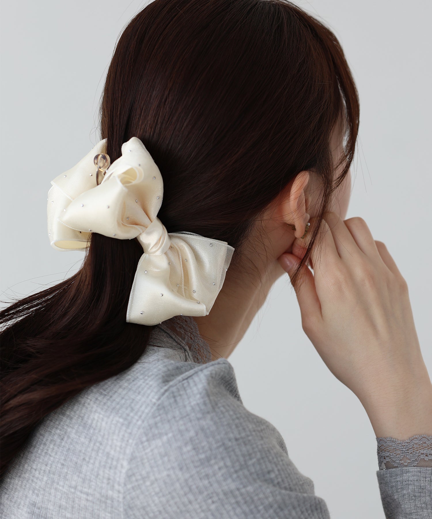 サテン×オーガンジーが大人ガーリーなリボンヘアクリップ