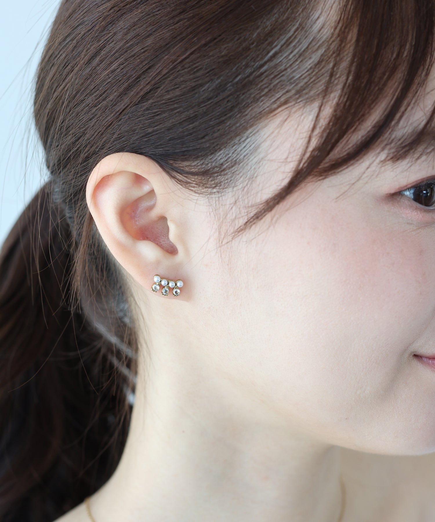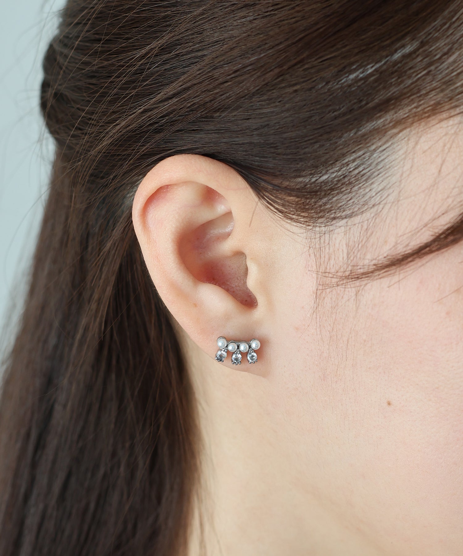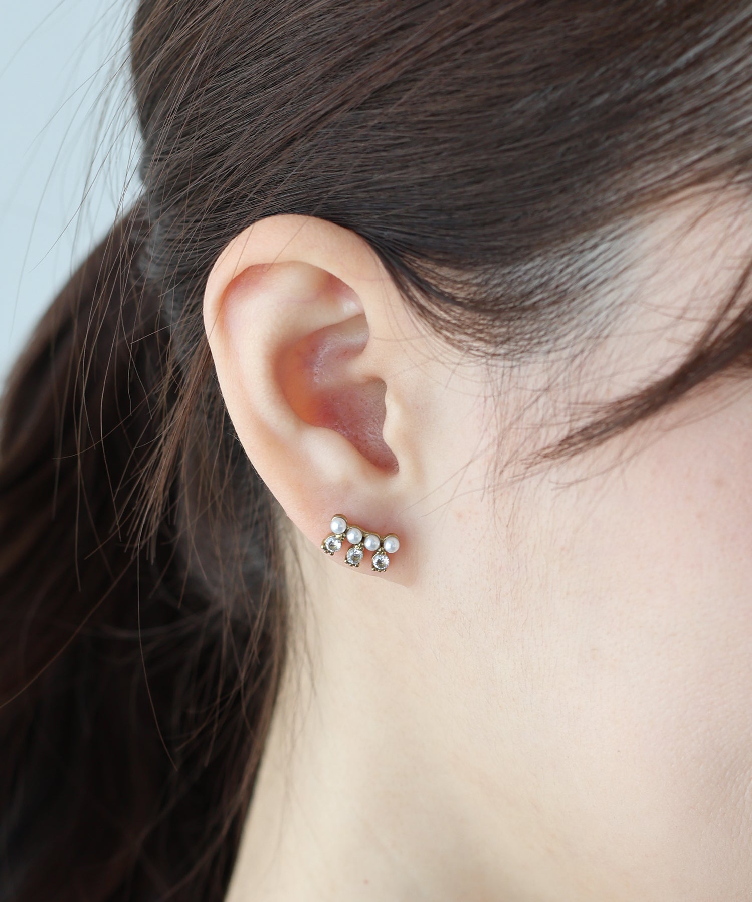 キュービックジルコニア×パールが洗練されたデザインのデイリーに身に着けられるピアス