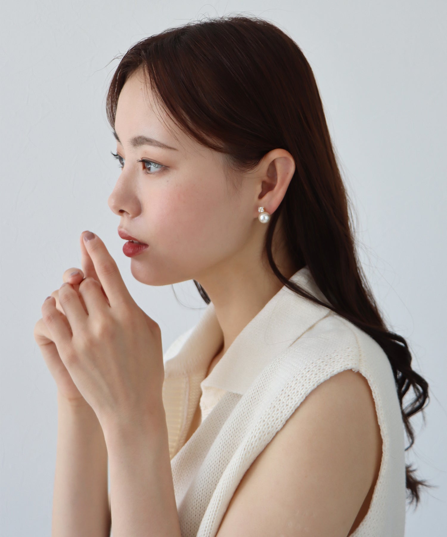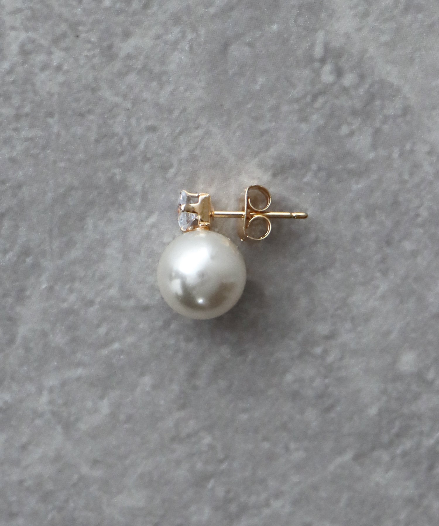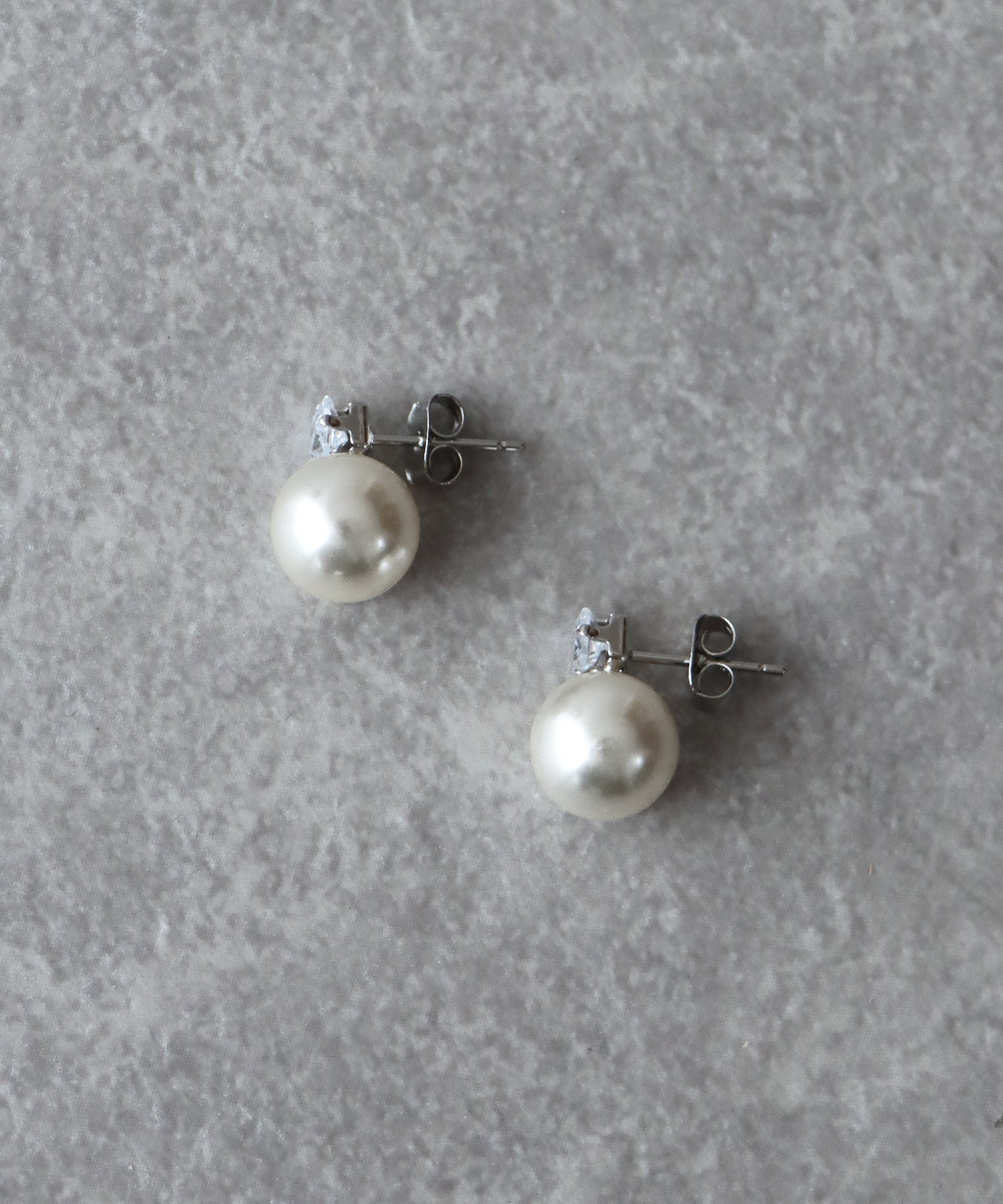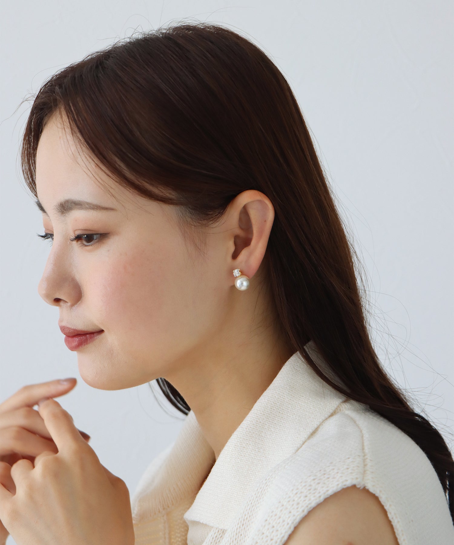 パールの上にちょこんとクリアなビジューをあしらったミニマルなピアス。