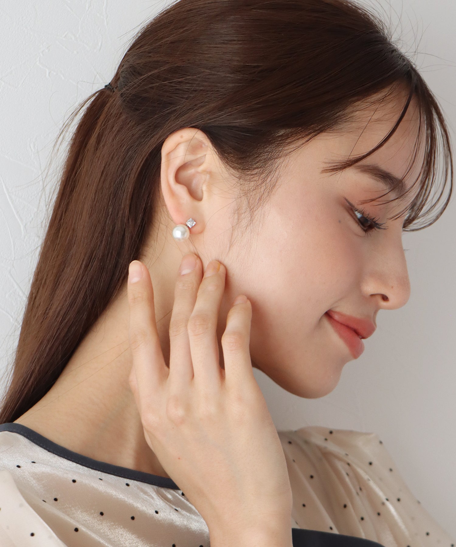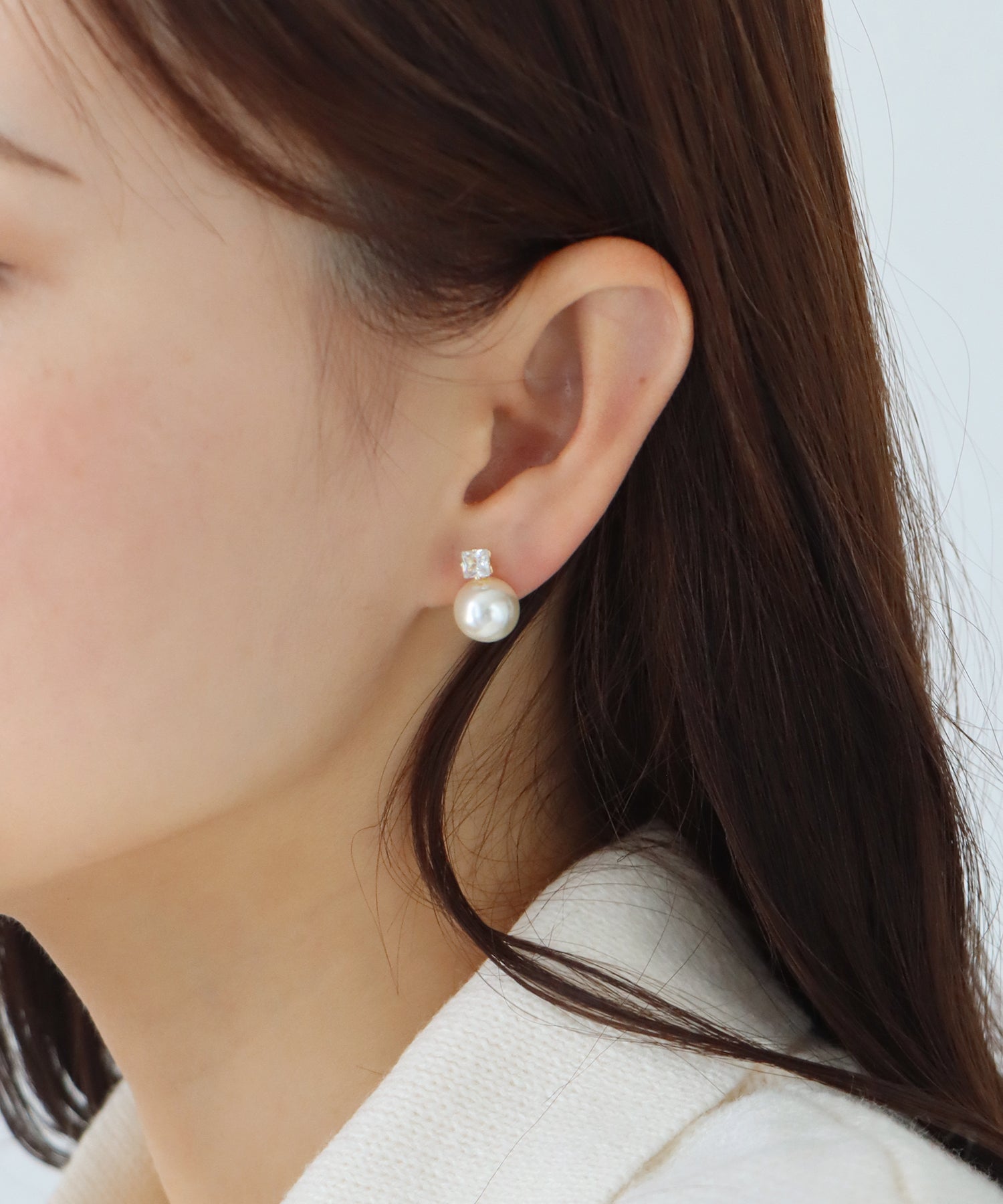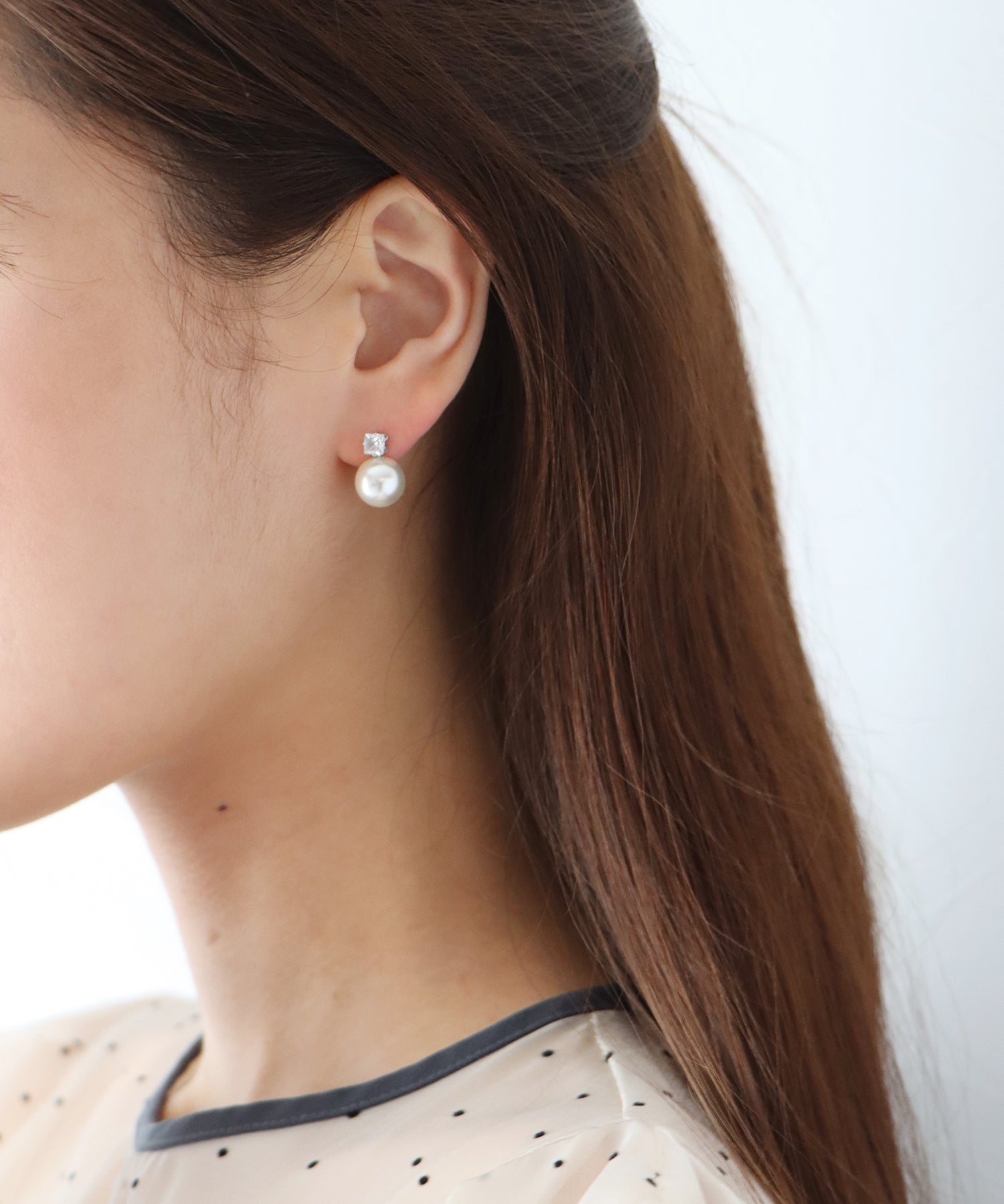 パールの上にちょこんとクリアなビジューをあしらったミニマルなピアス。