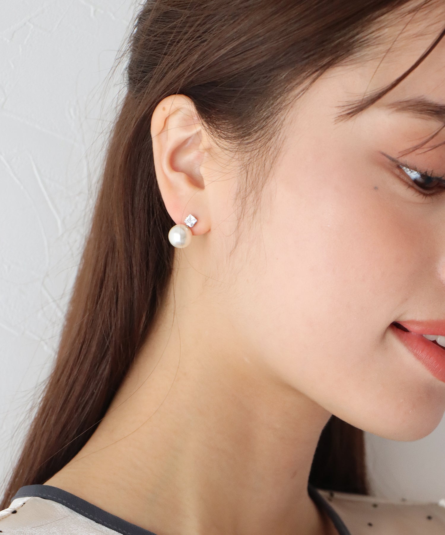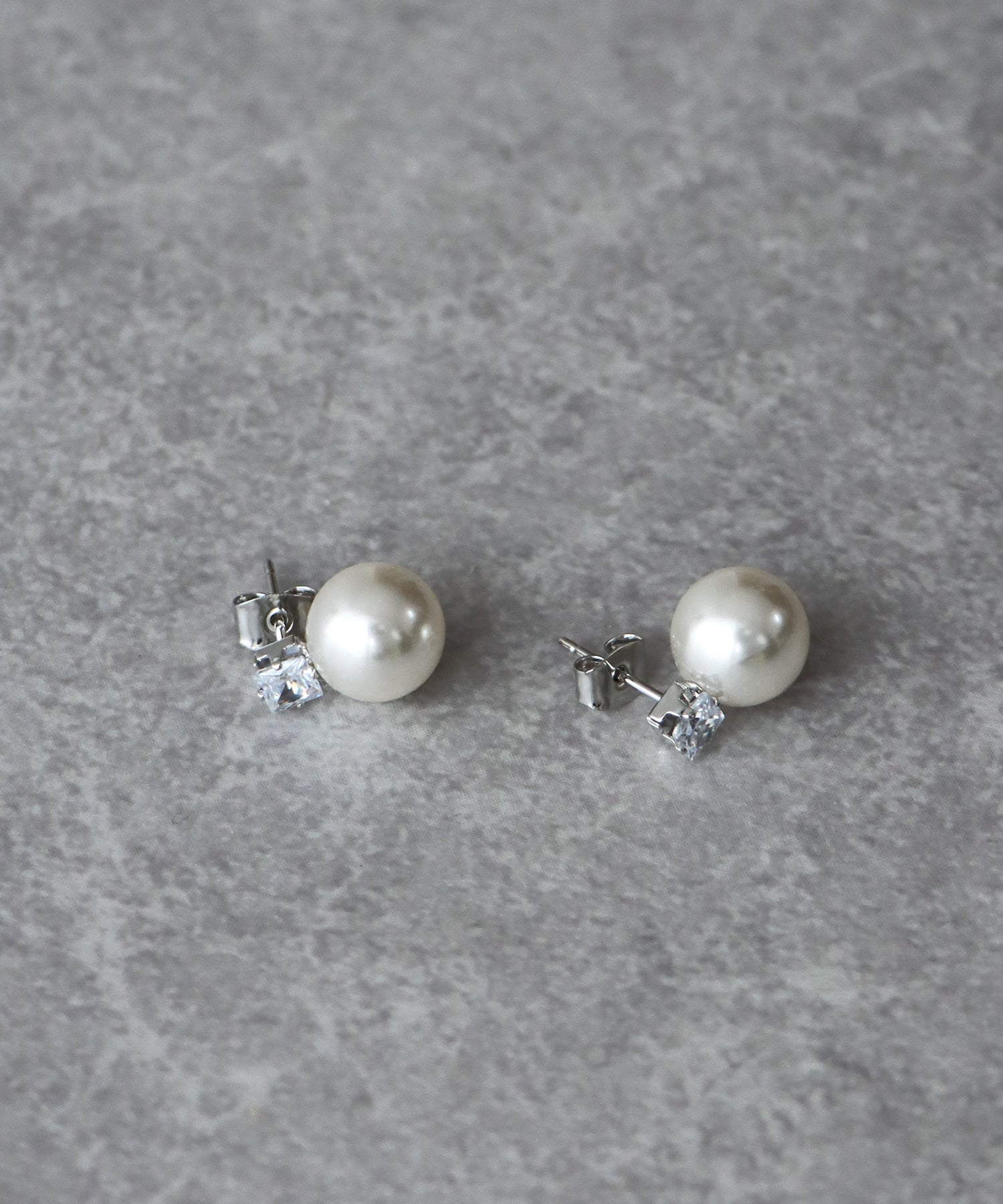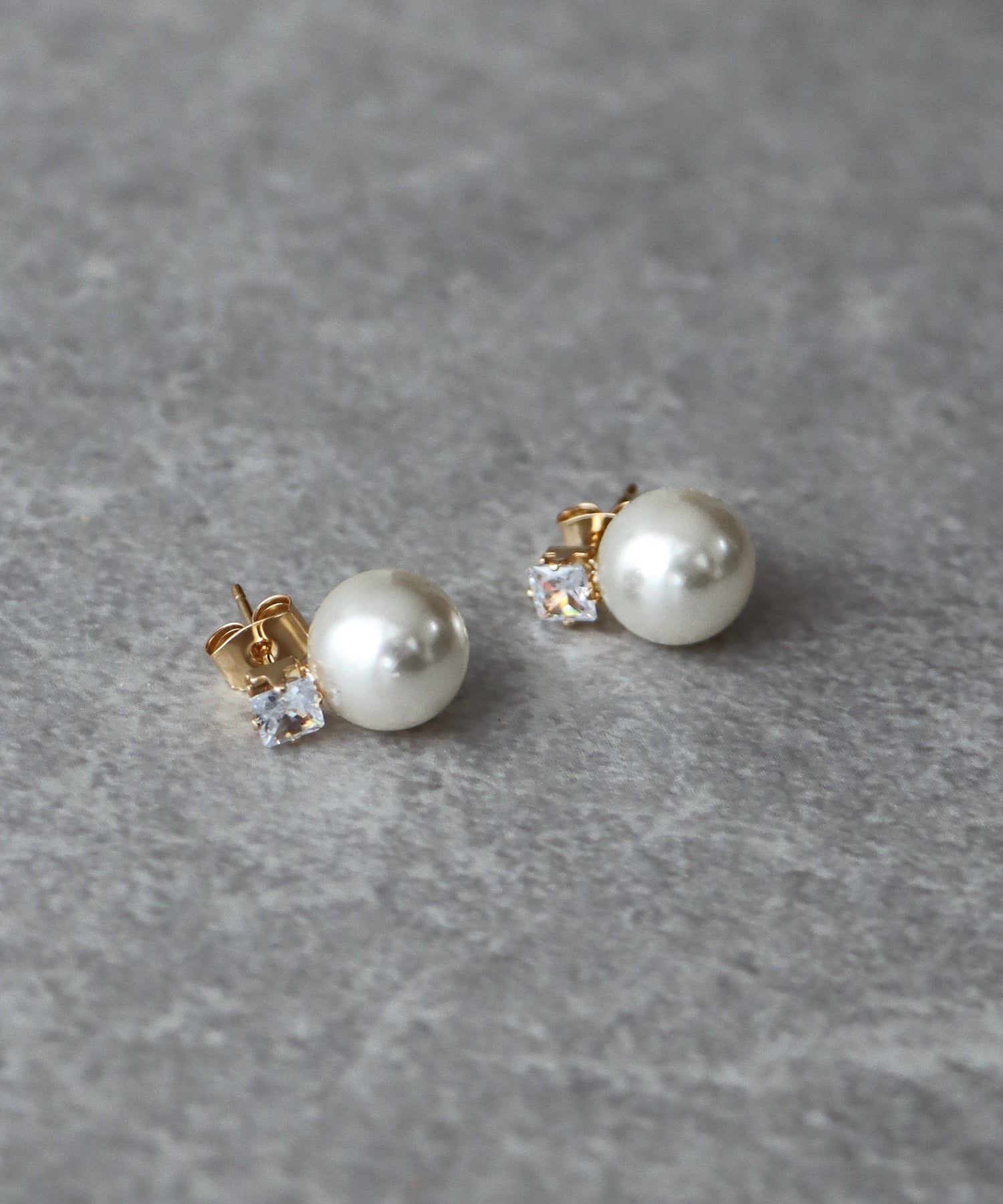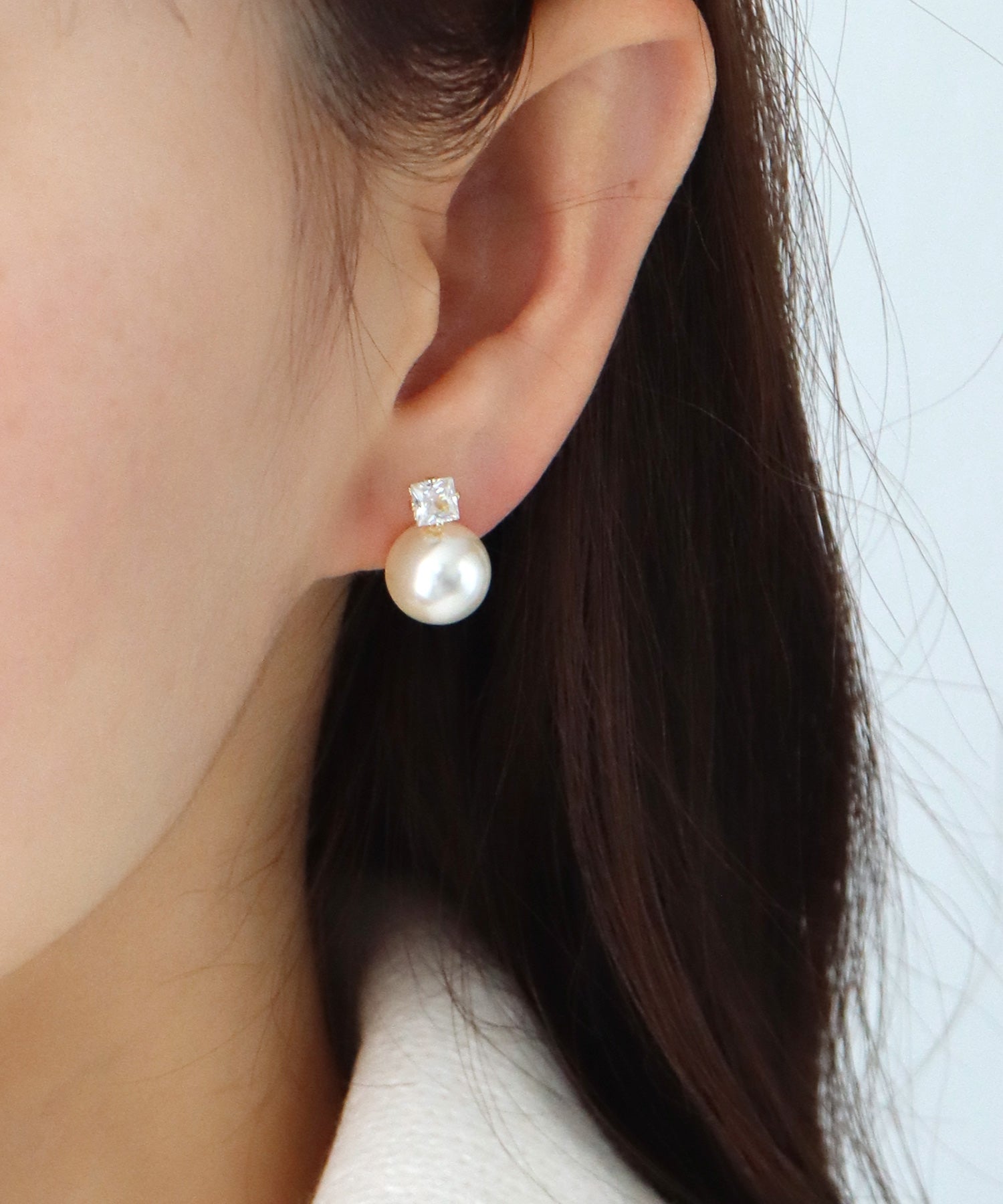 パールの上にちょこんとクリアなビジューをあしらったミニマルなピアス。
