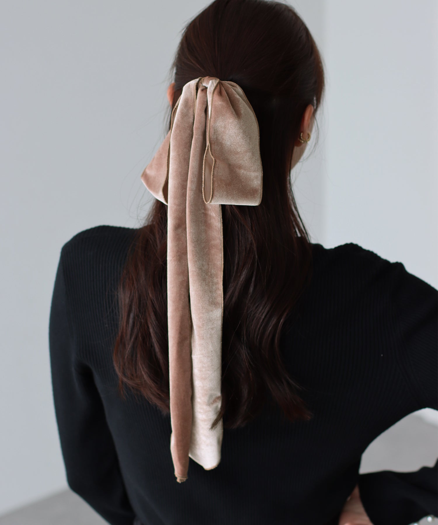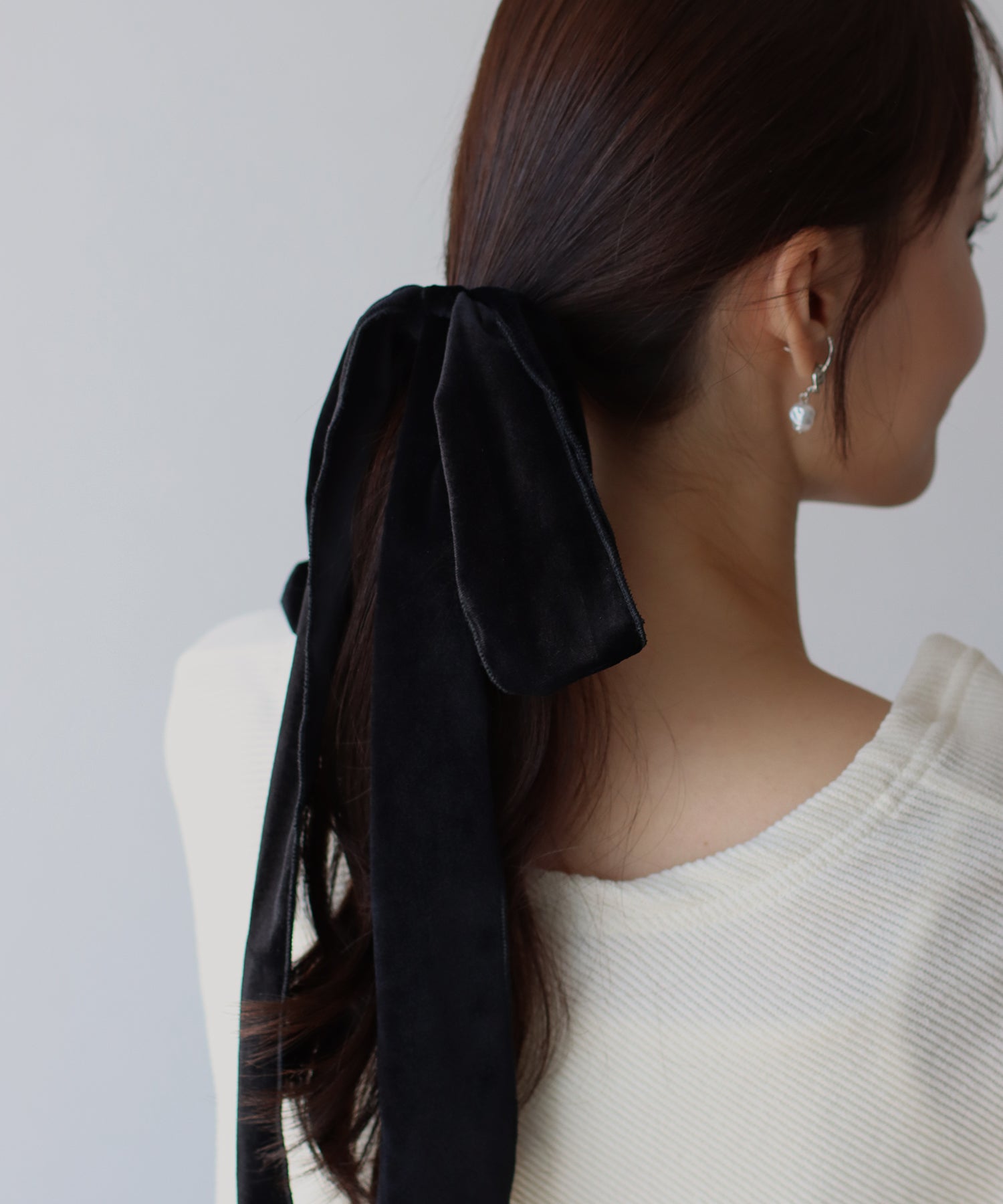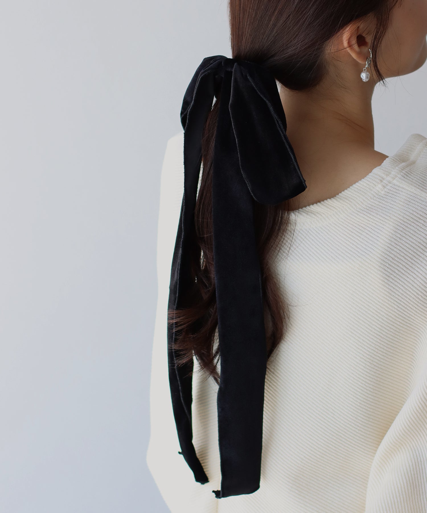 ガーリースタイルには欠かせないクラシカルなベロア素材のリボンアイテム。