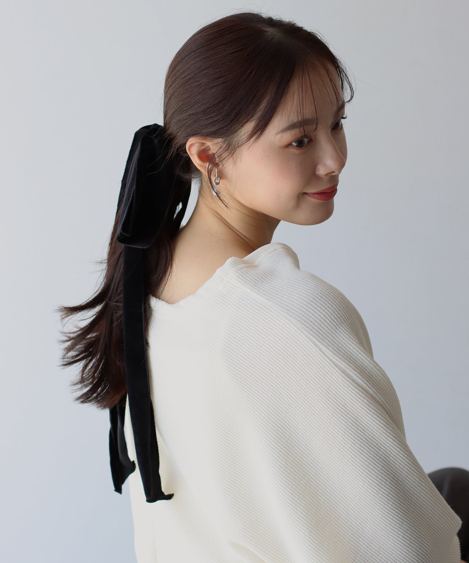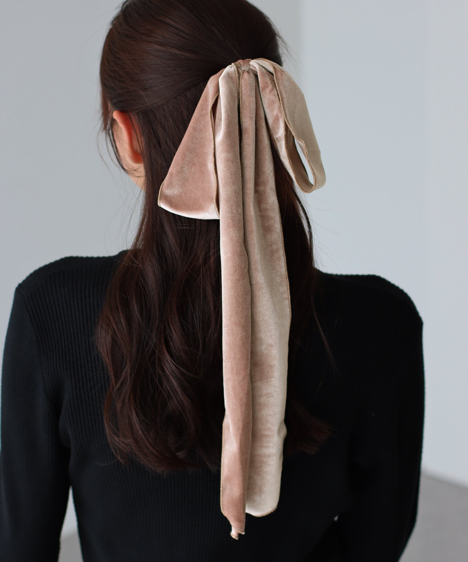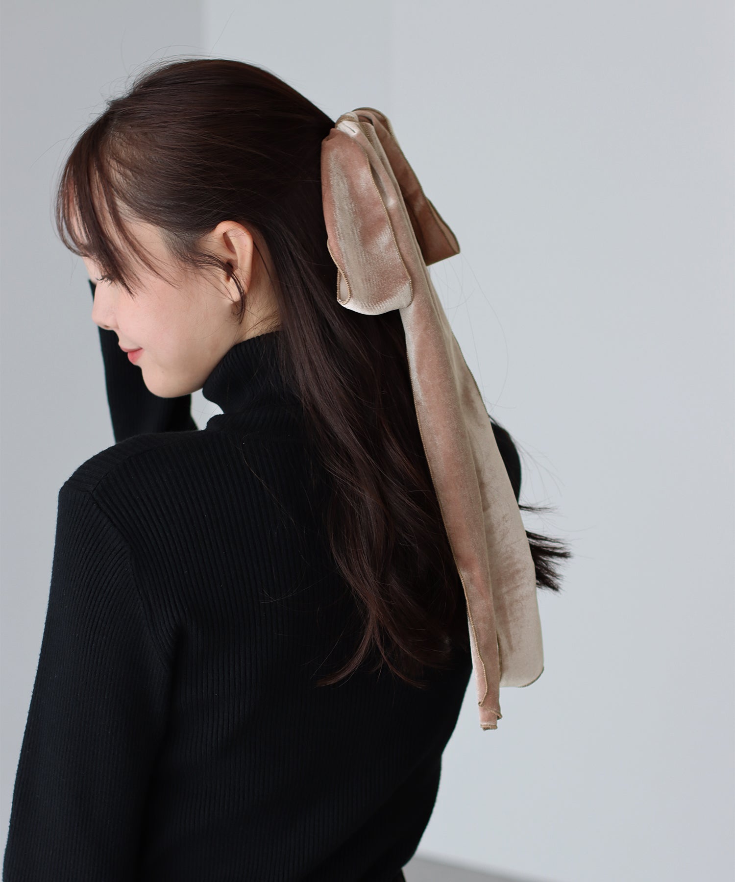 ガーリースタイルには欠かせないクラシカルなベロア素材のリボンアイテム。