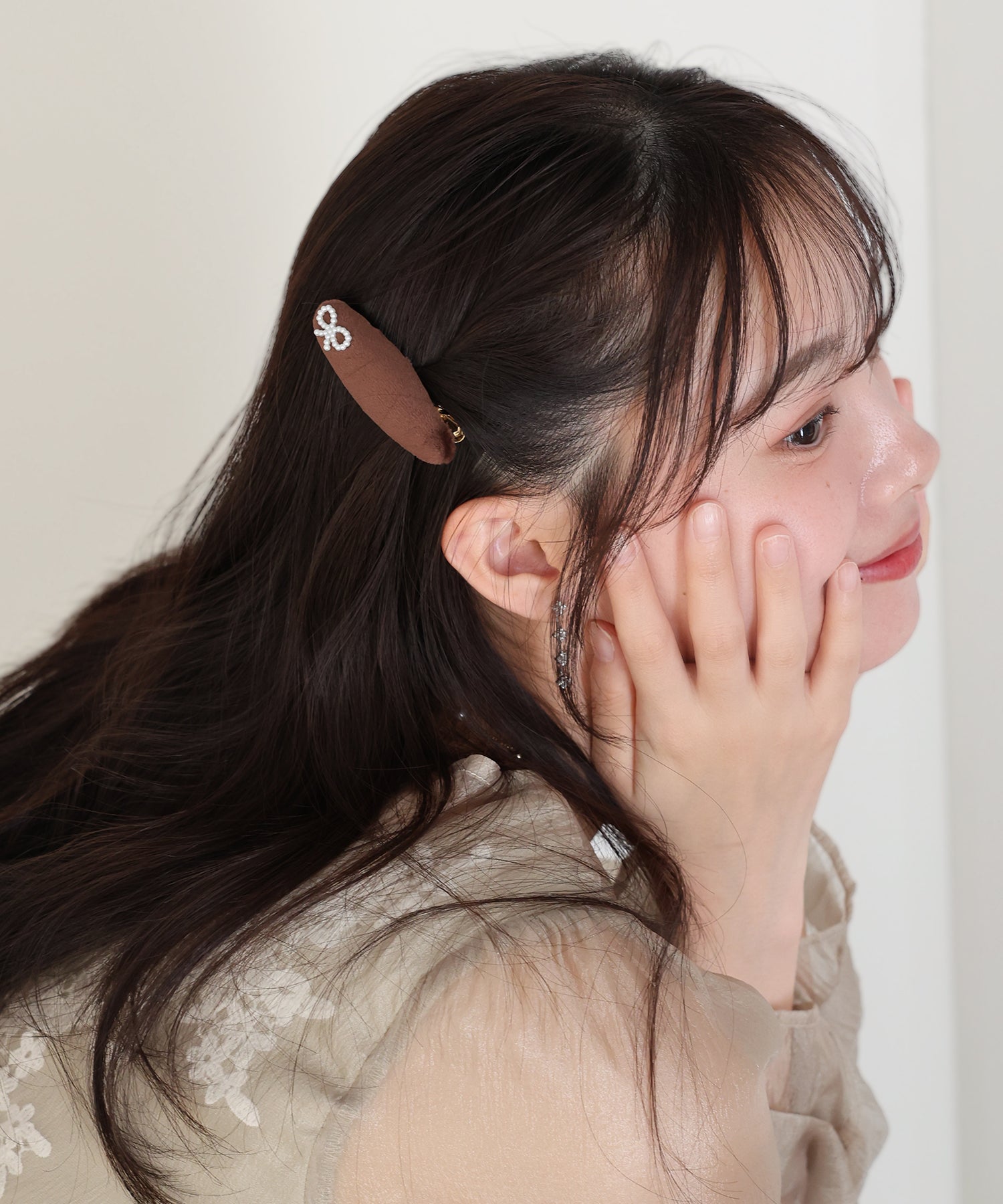 サイドの髪の毛をとめたり、オケージョンシーンのヘアアレンジに添えたりとアレンジの幅が広がります。