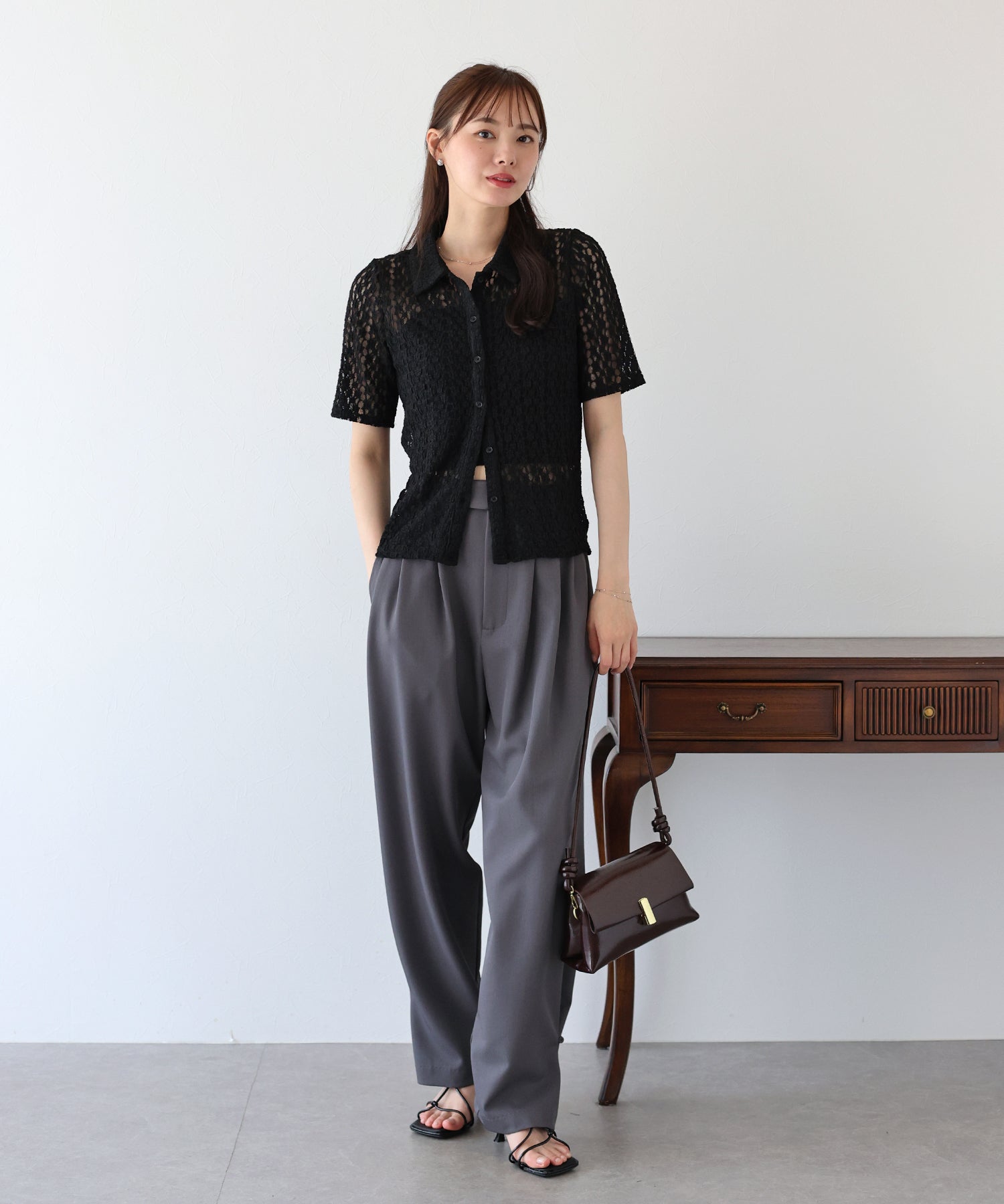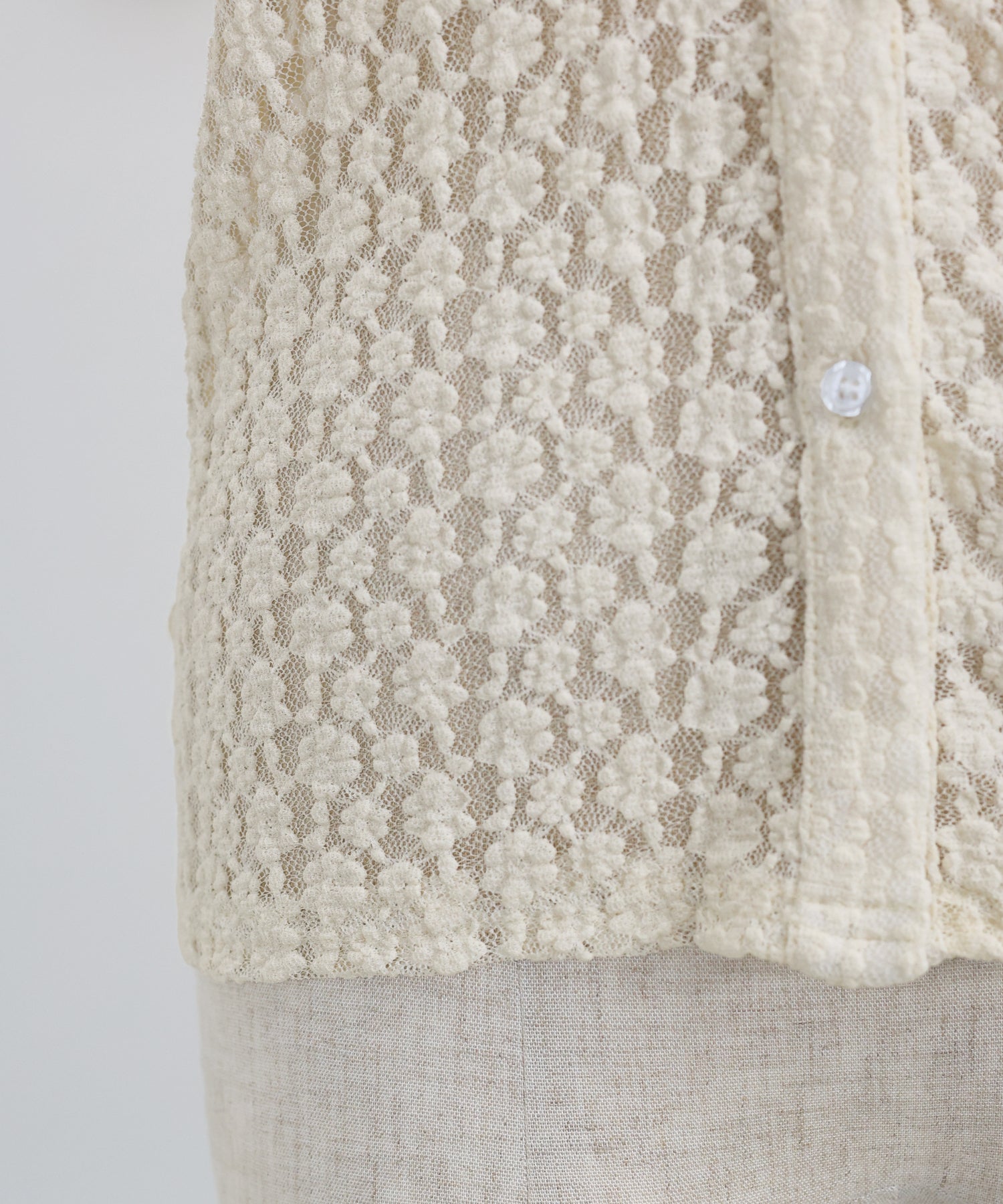 繊細で立体感のある花柄カットレースを使用した、 甘すぎないレーストップス。