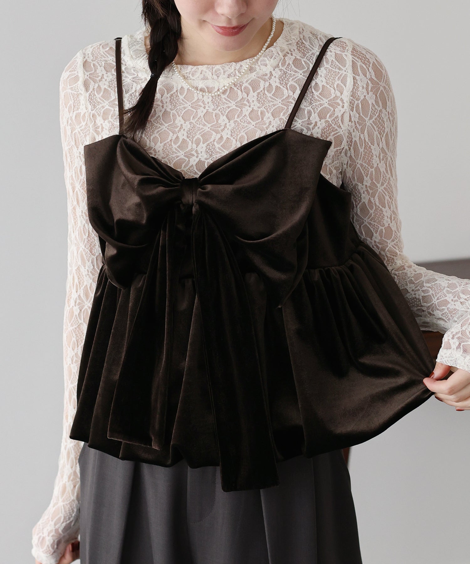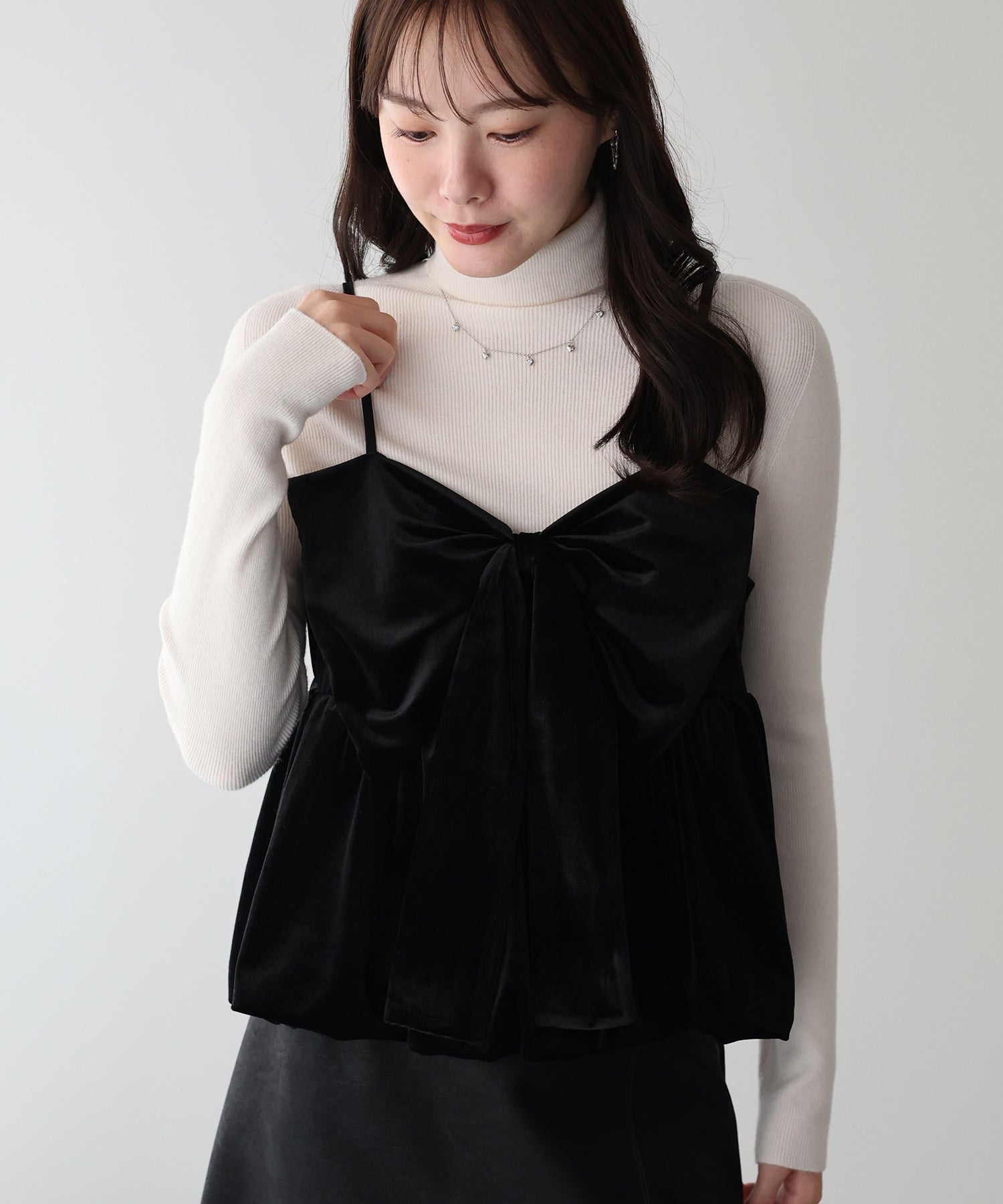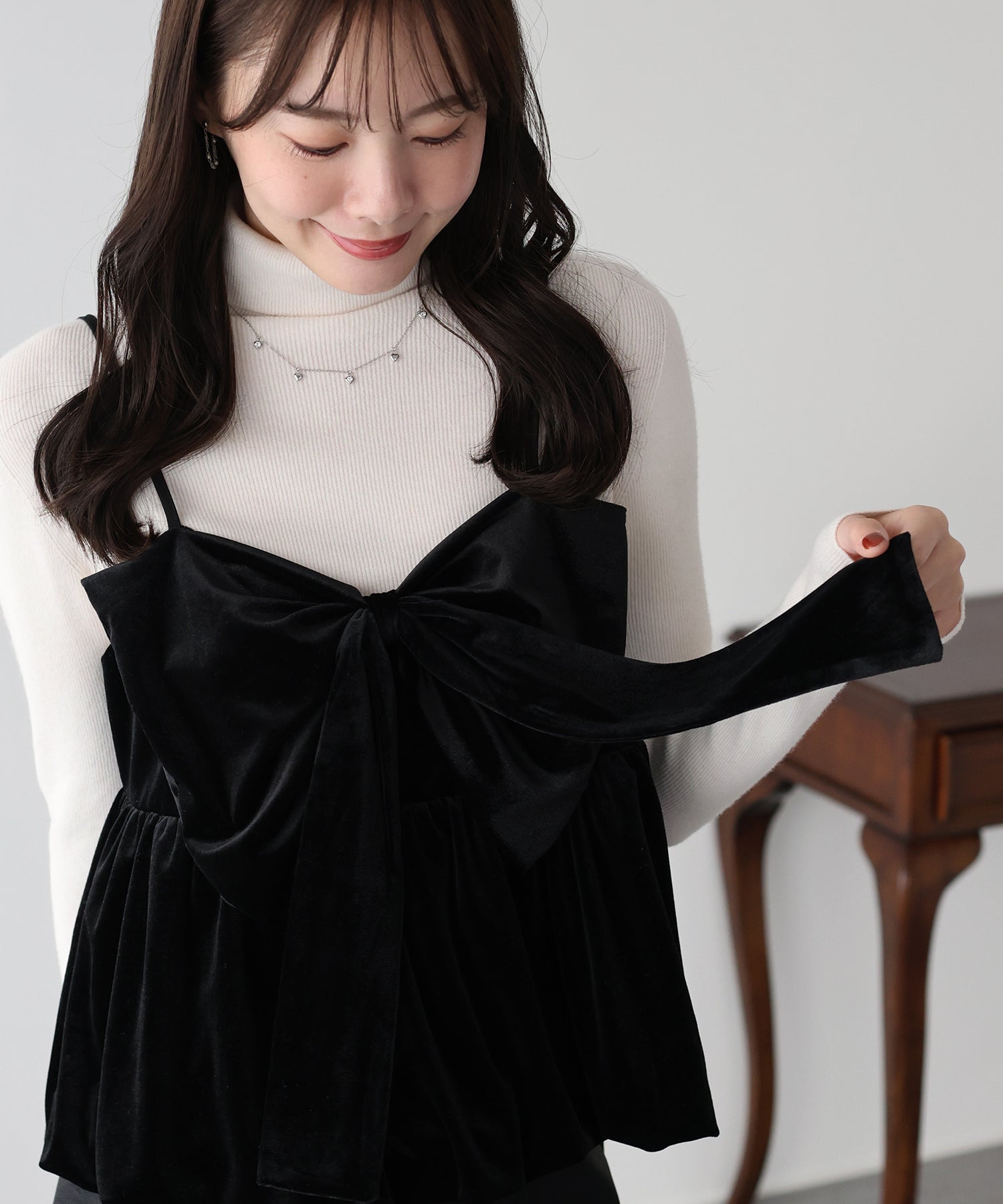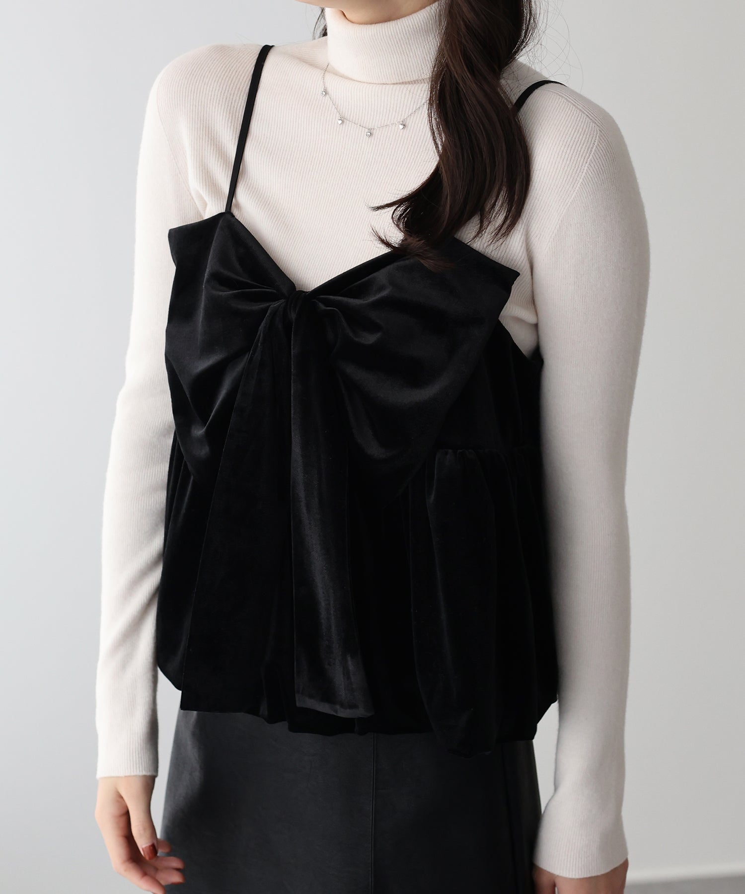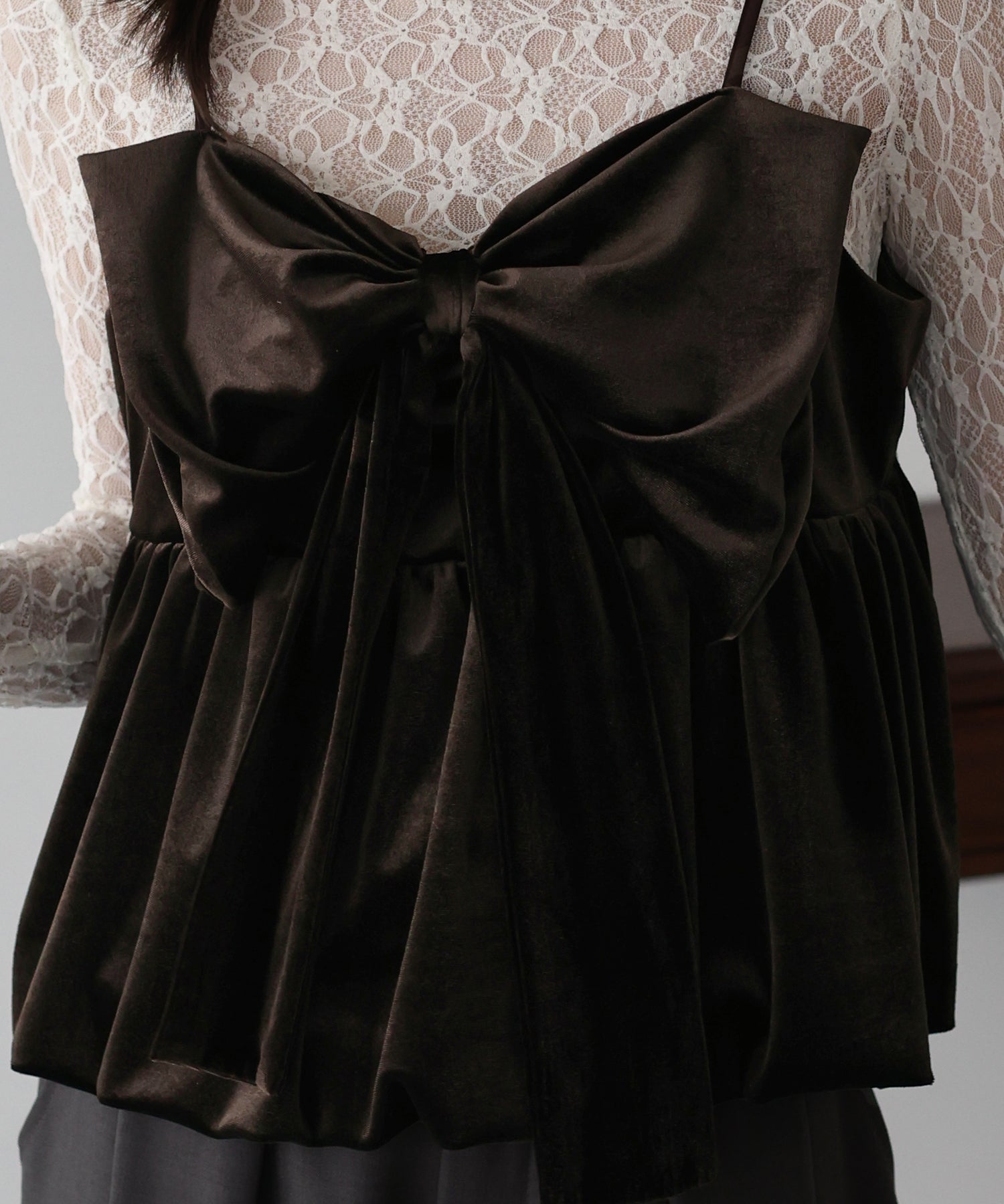 大きなリボンが目を惹く、大人可愛い印象のベロアビスチェ。