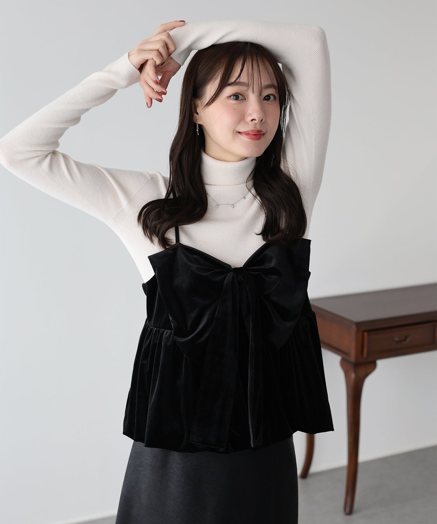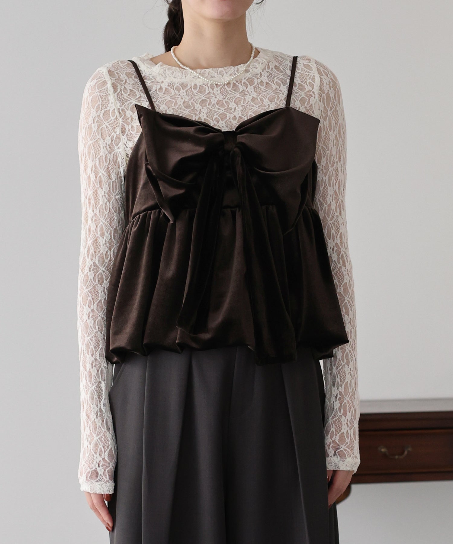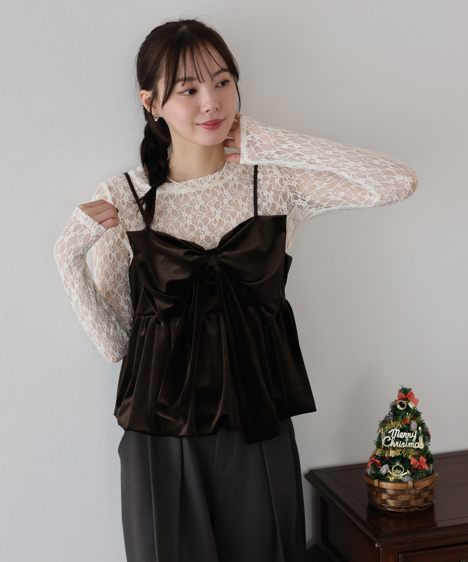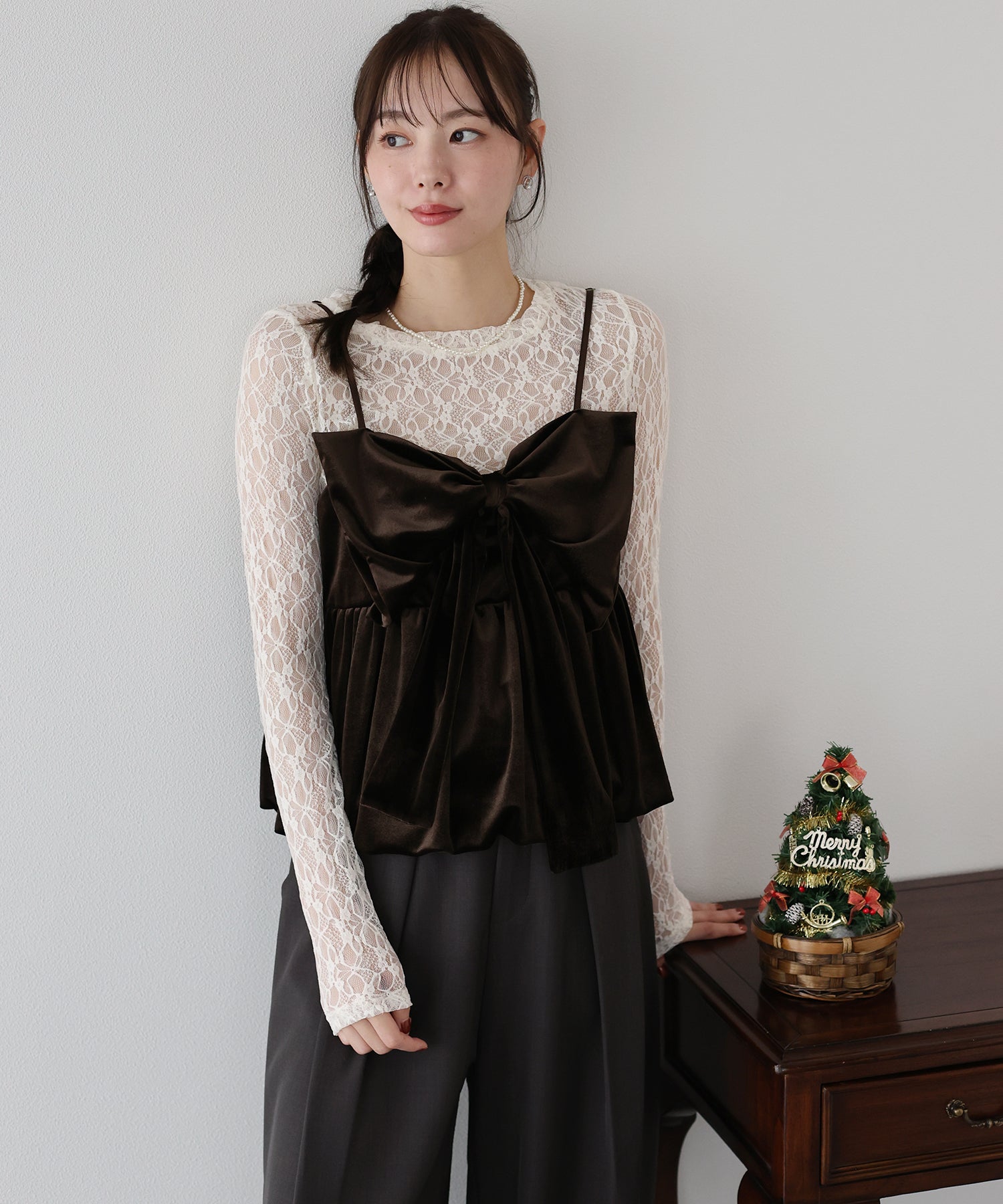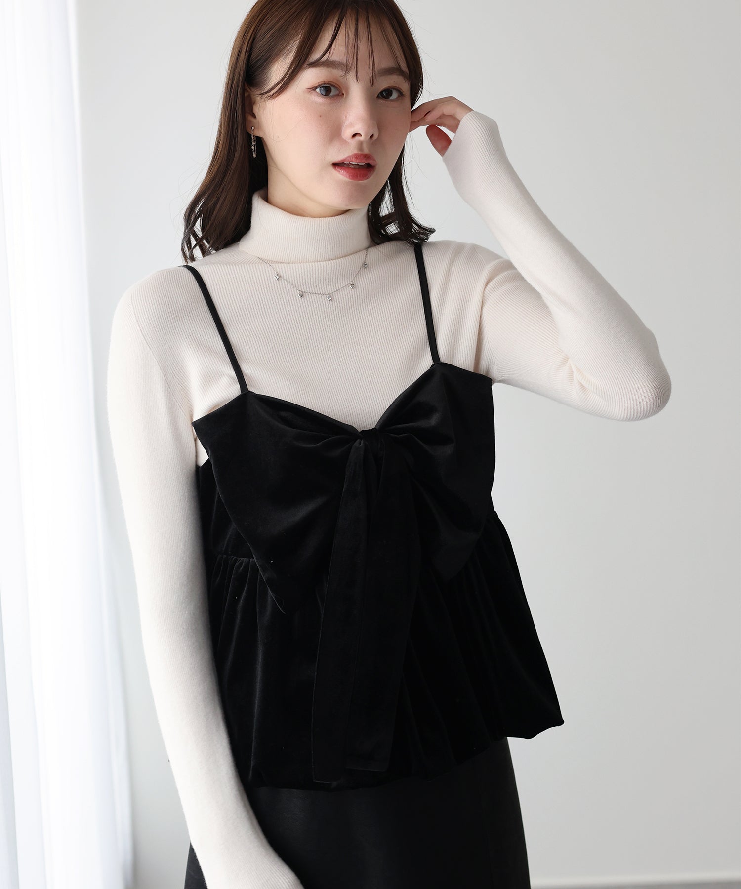 大きなリボンが目を惹く、大人可愛い印象のベロアビスチェ。