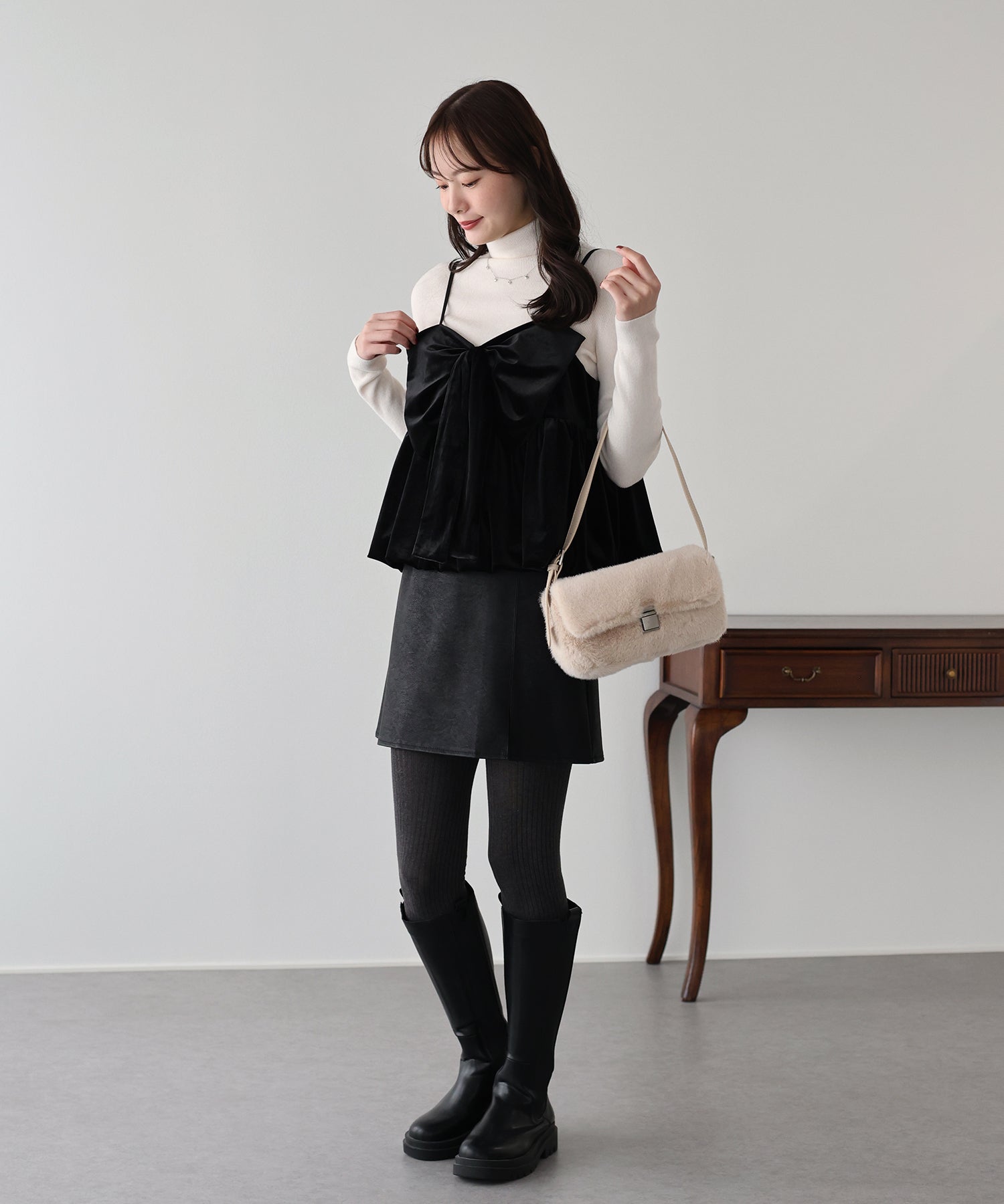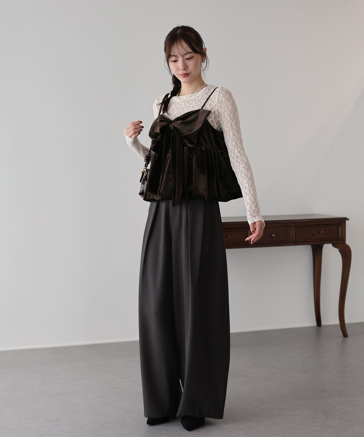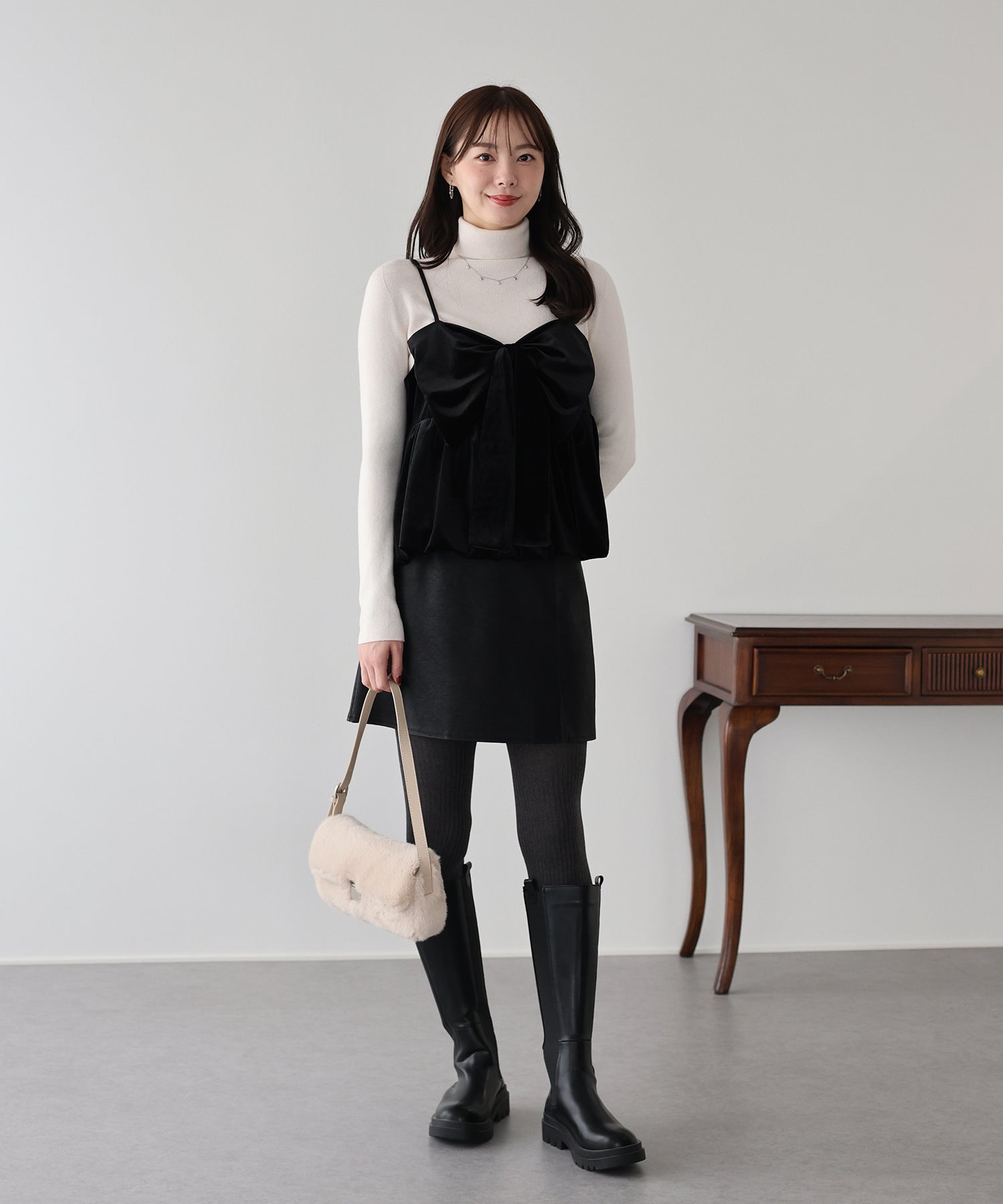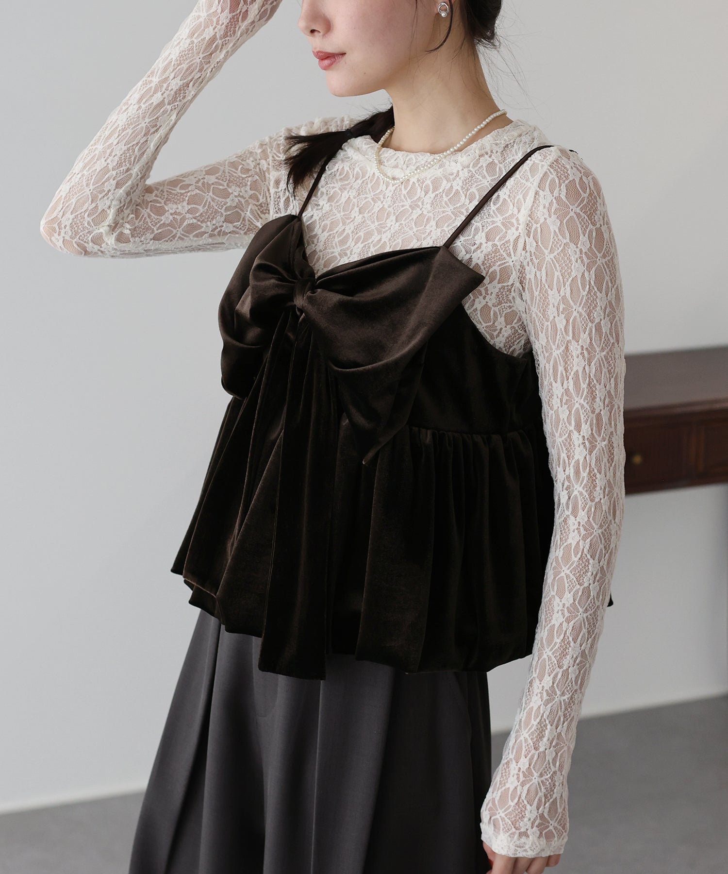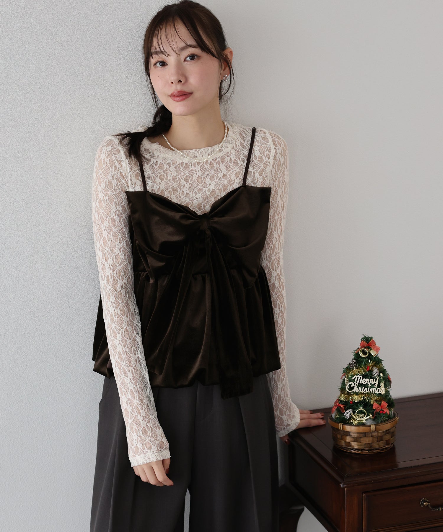 大きなリボンが目を惹く、大人可愛い印象のベロアビスチェ。