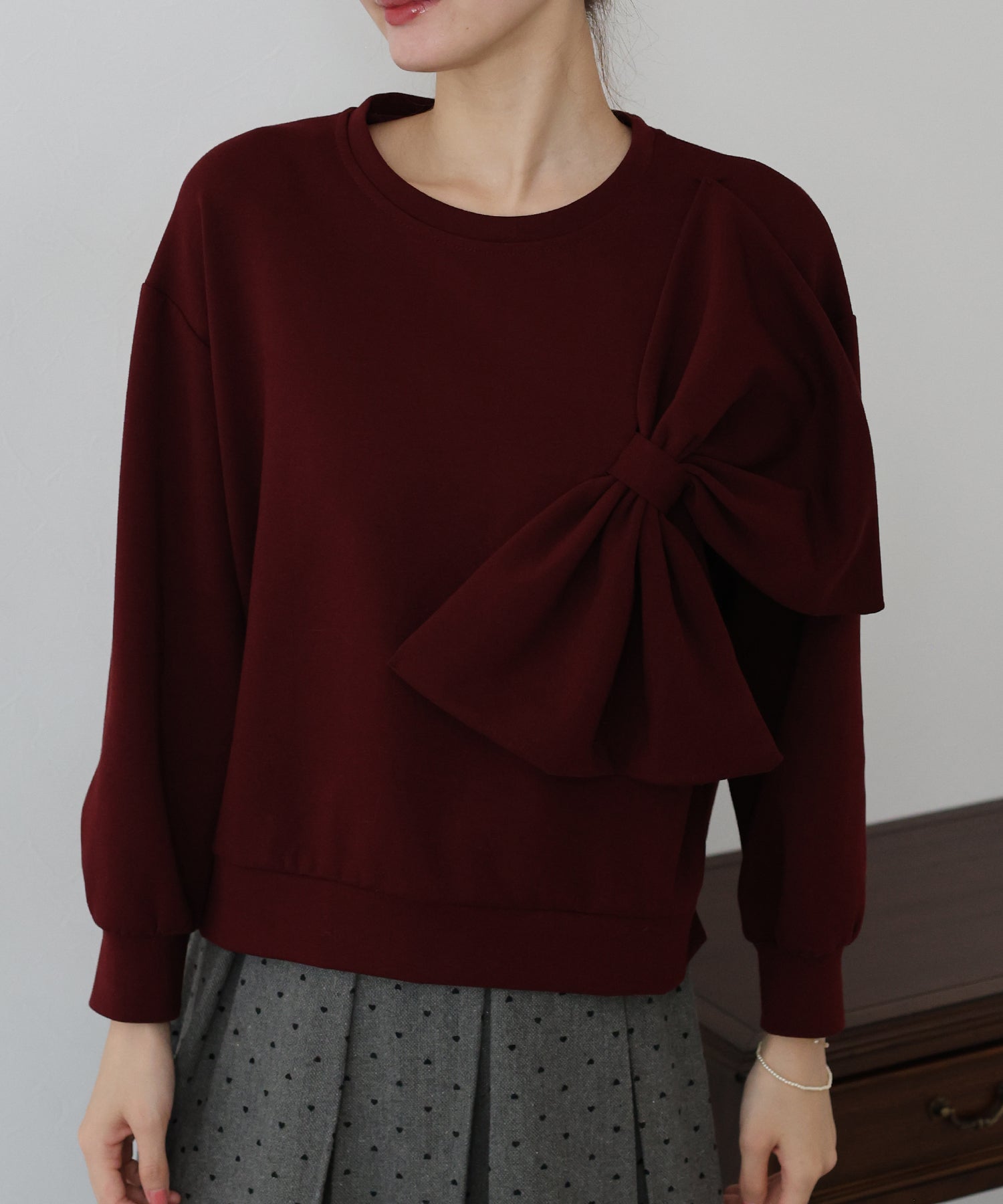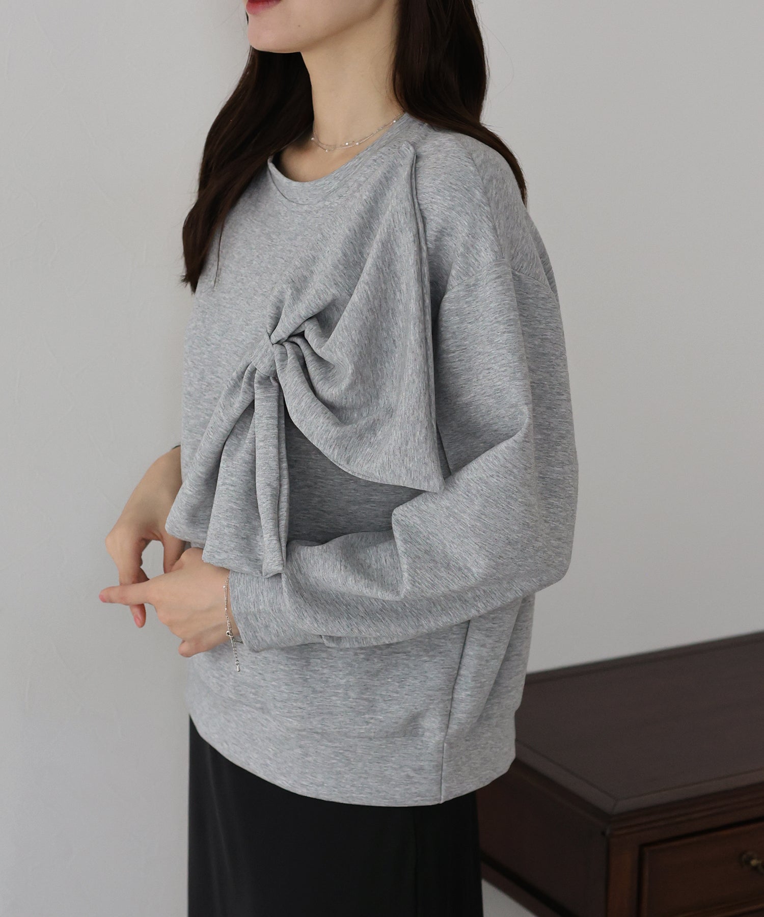立体的なリボンデザインでカジュアルながら大人ガーリーなポイントをプラスしたスウェット。