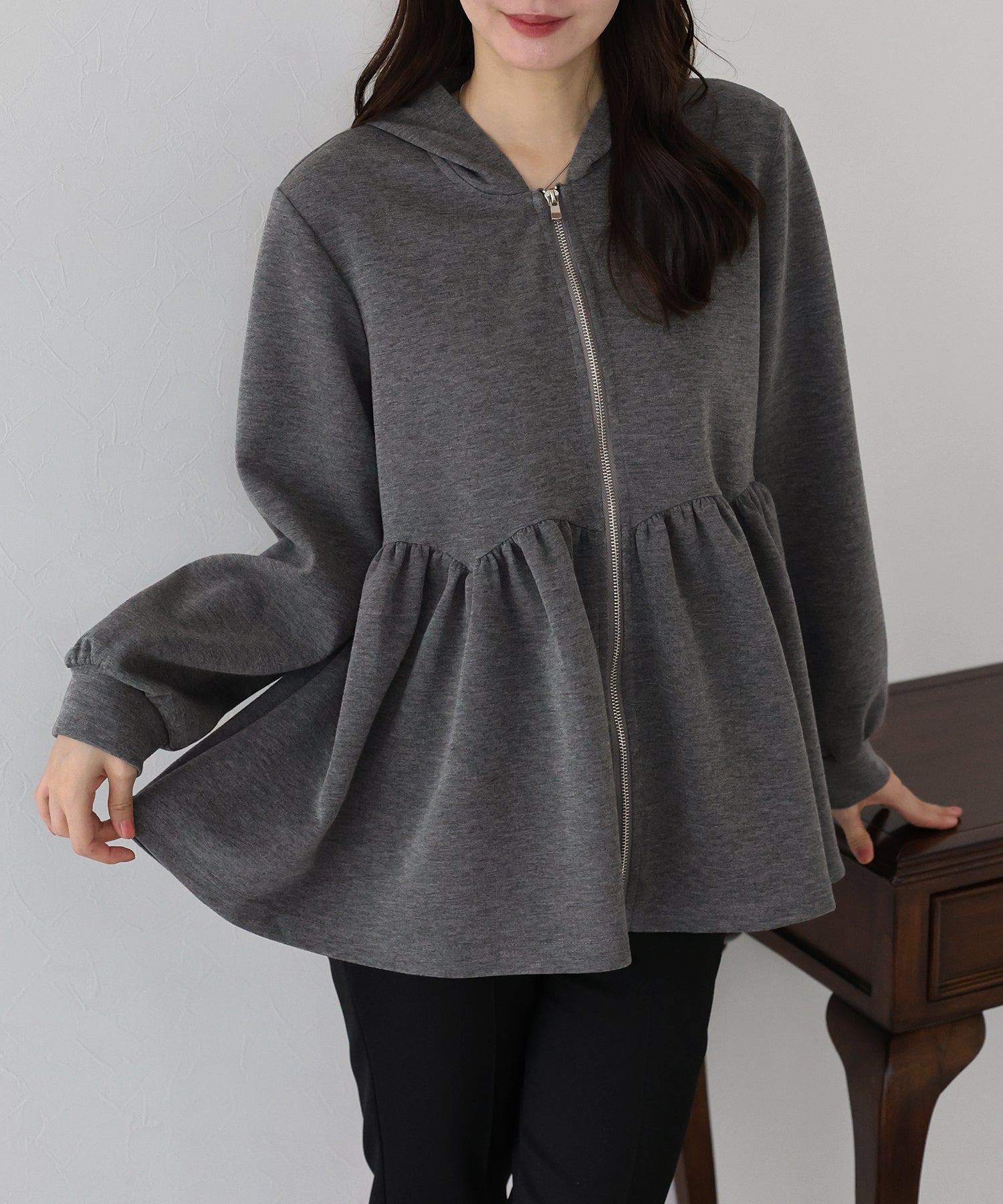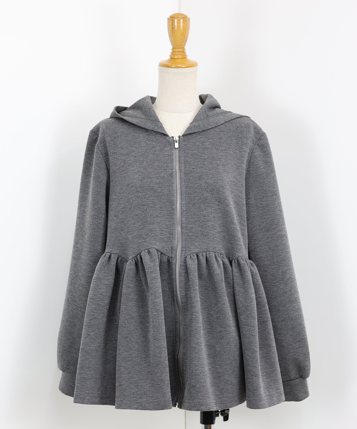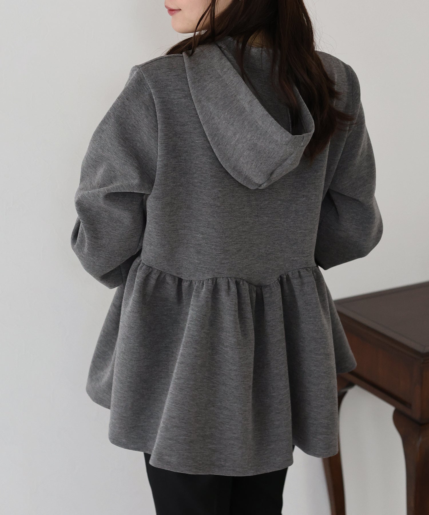 ふんわり広がるシルエットが魅力のペプラムフレアパーカー