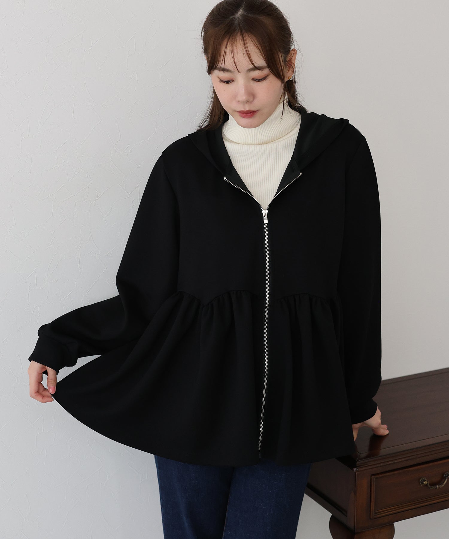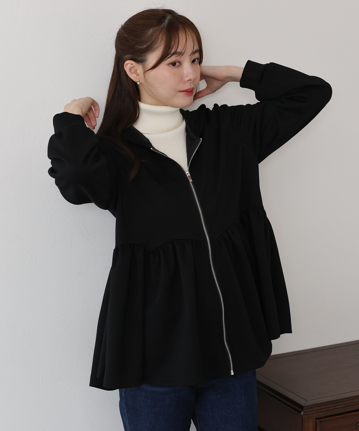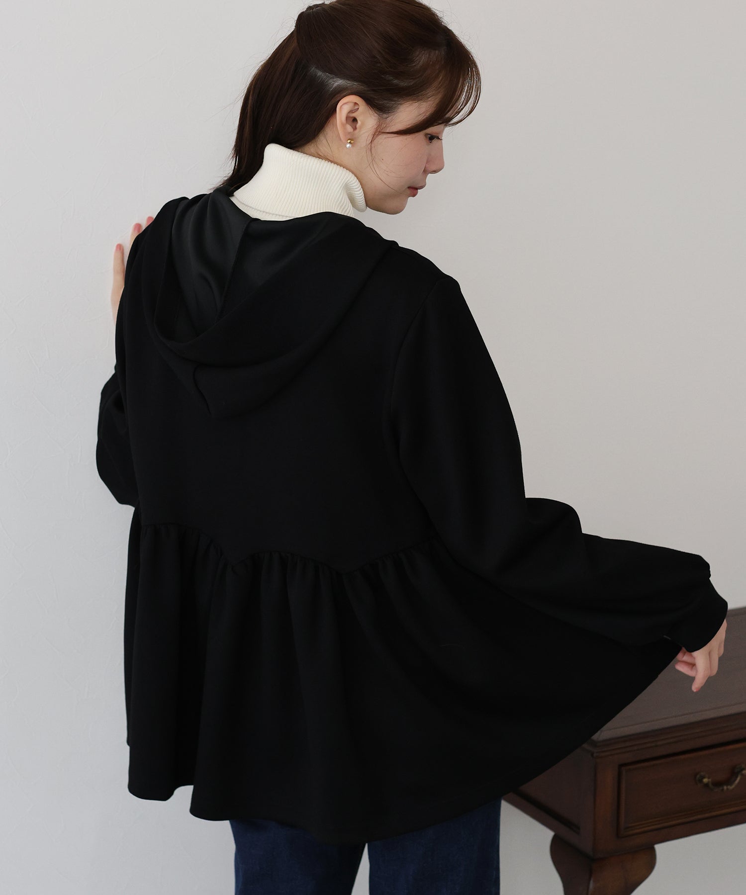 ふんわり広がるシルエットが魅力のペプラムフレアパーカー