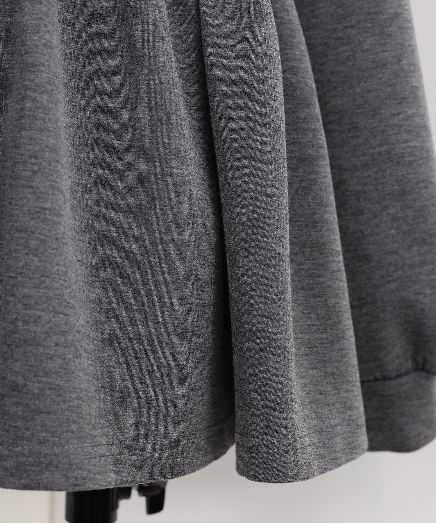 裾に向かってふんわりと広がるフレアシルエットが、女性らしい柔らかさと上品な印象を引き立てます。