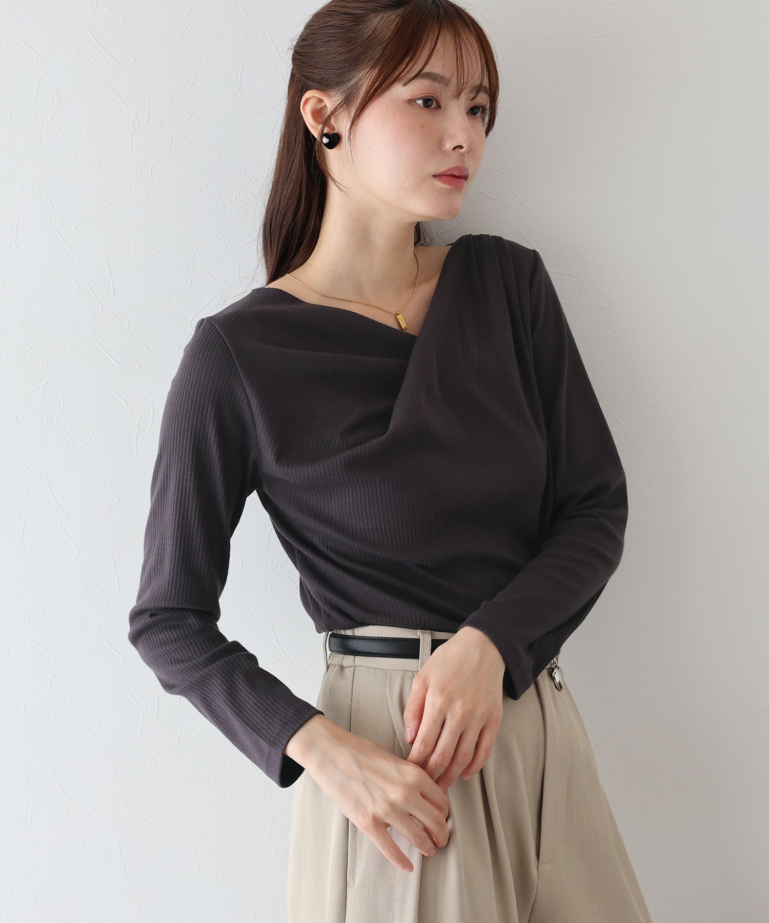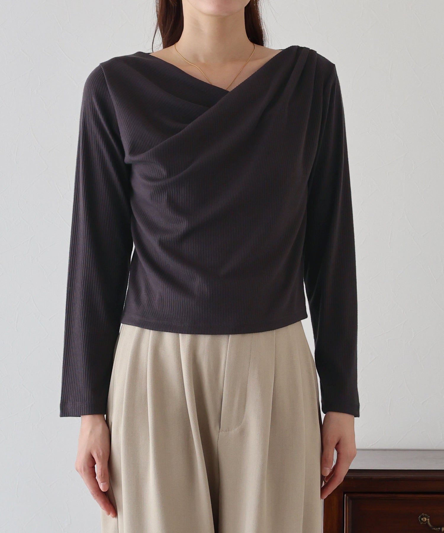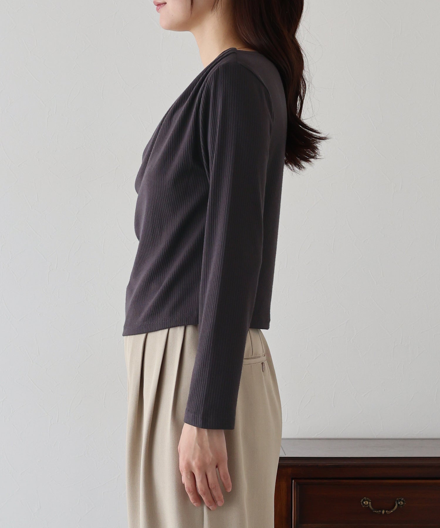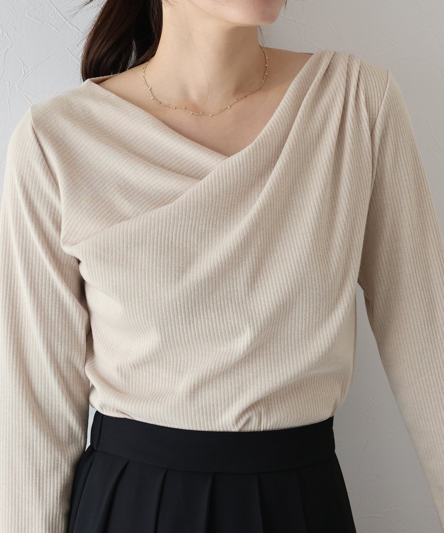 上品なドレープが目を惹くリブカットソー