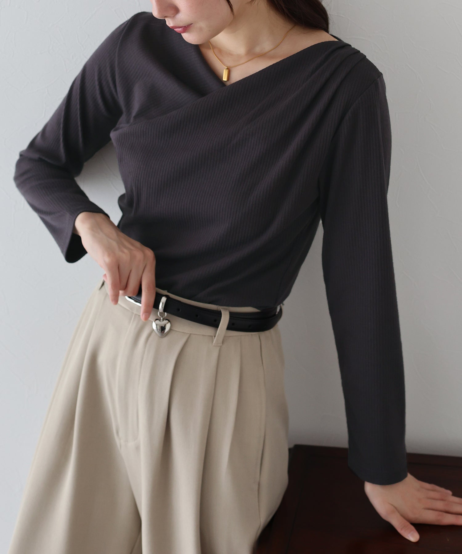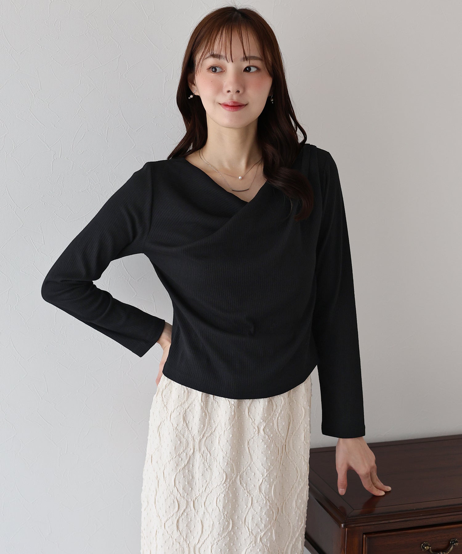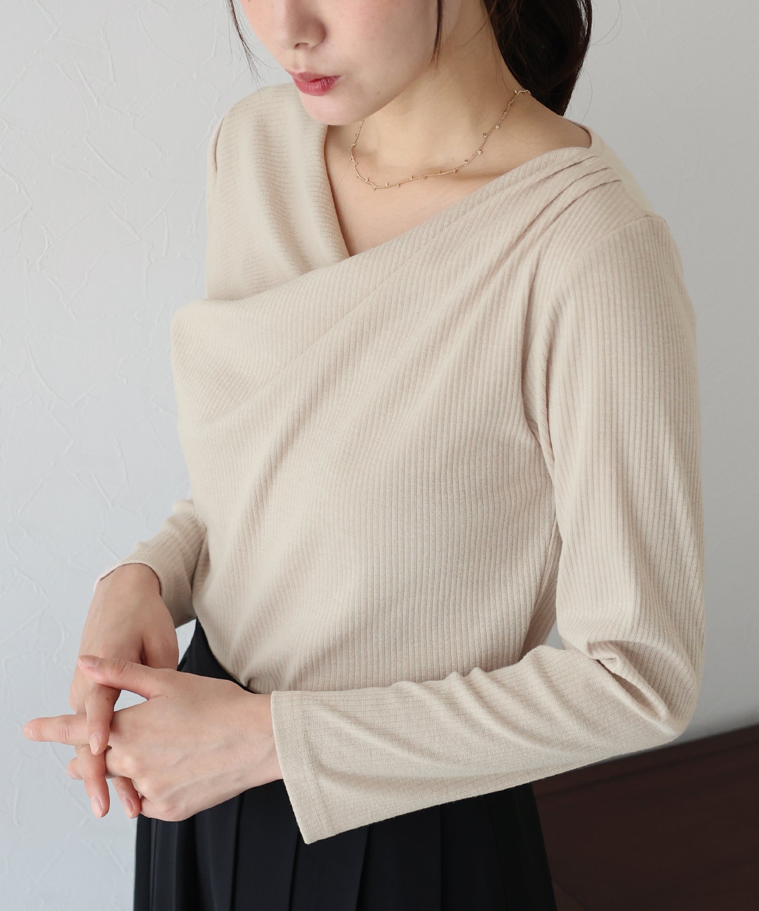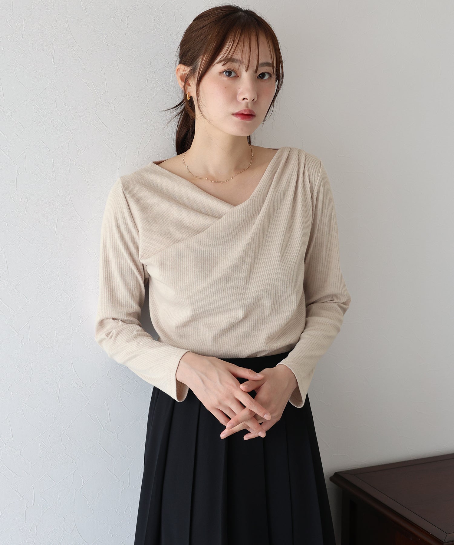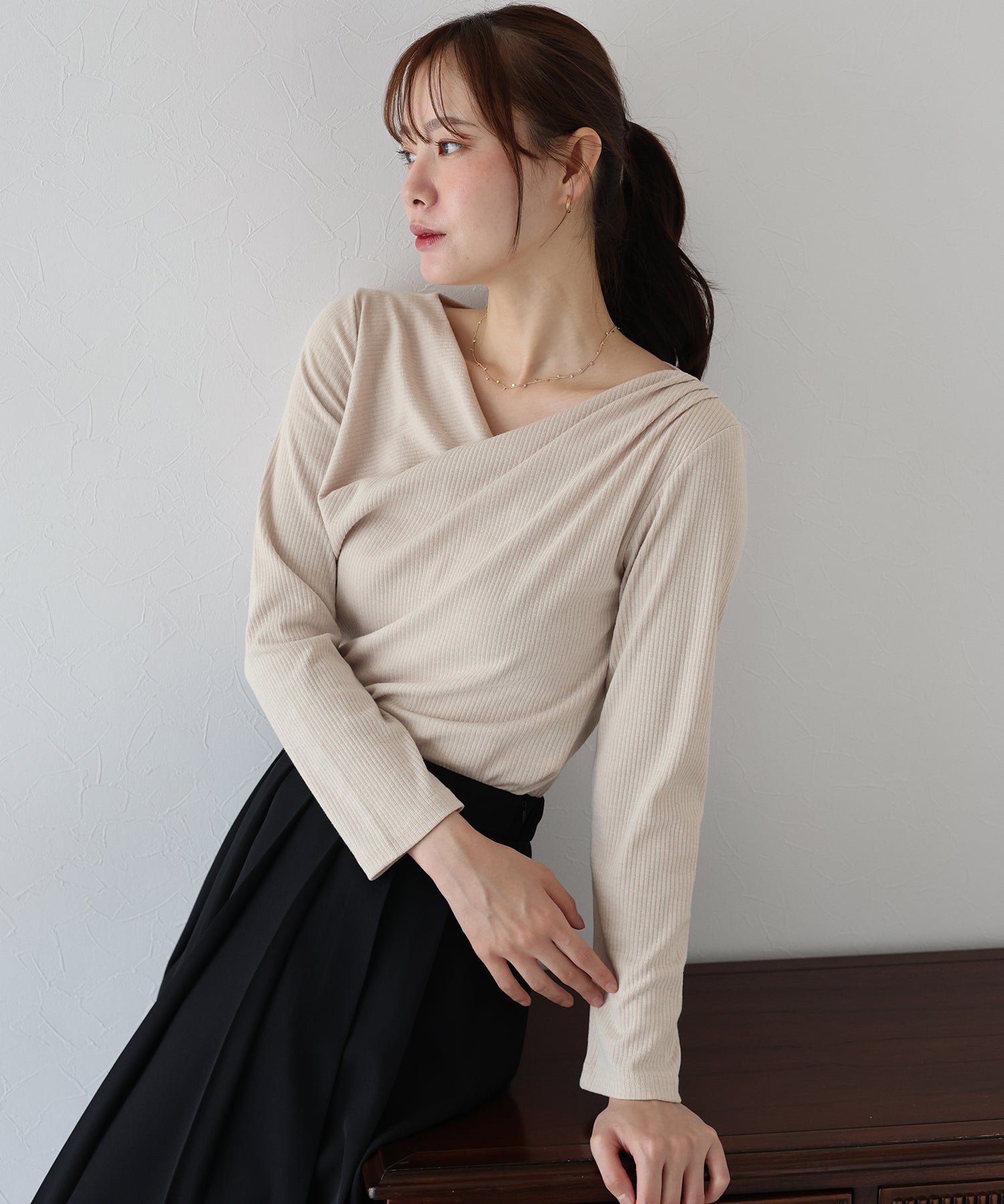 上品なドレープが目を惹くリブカットソー