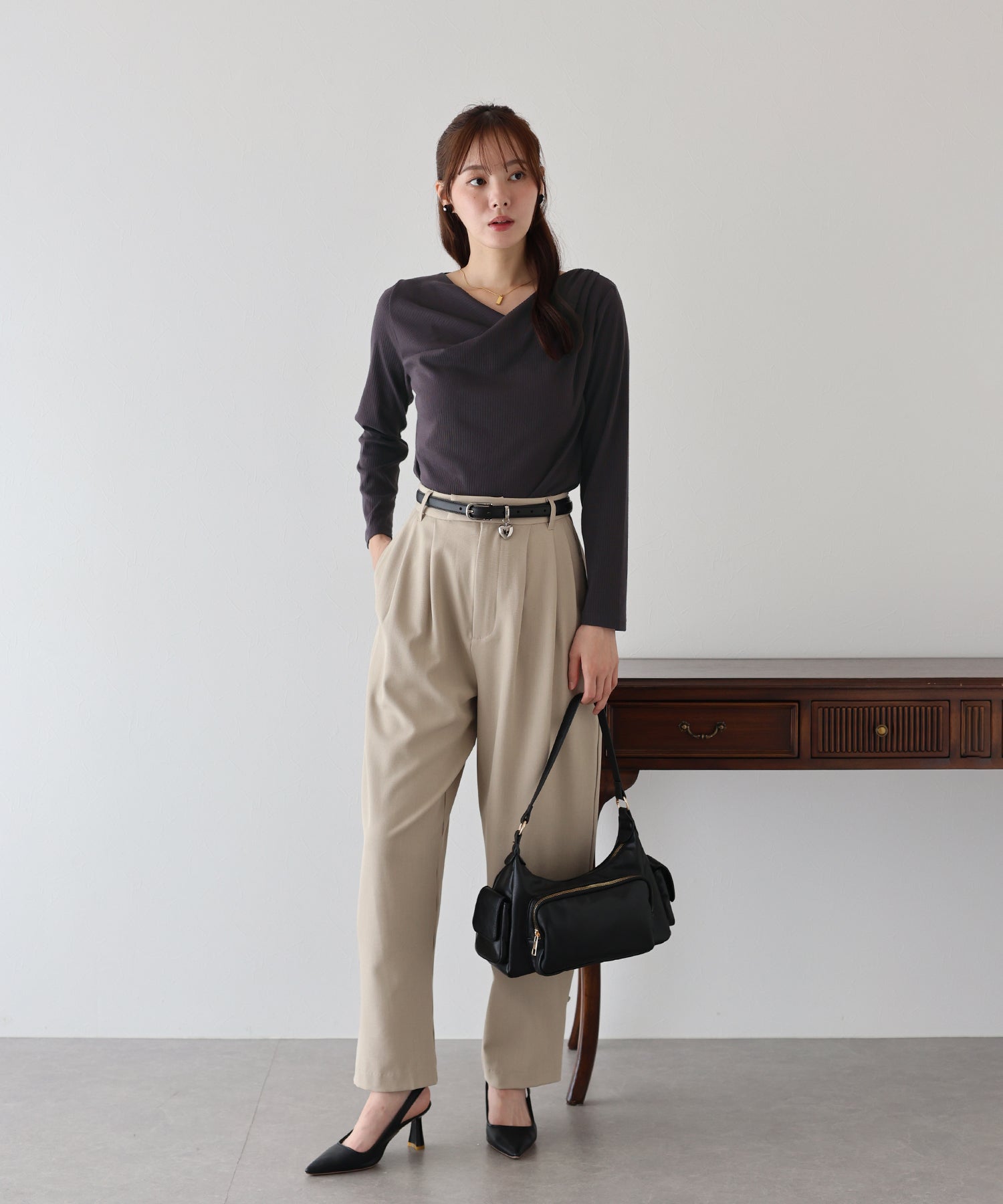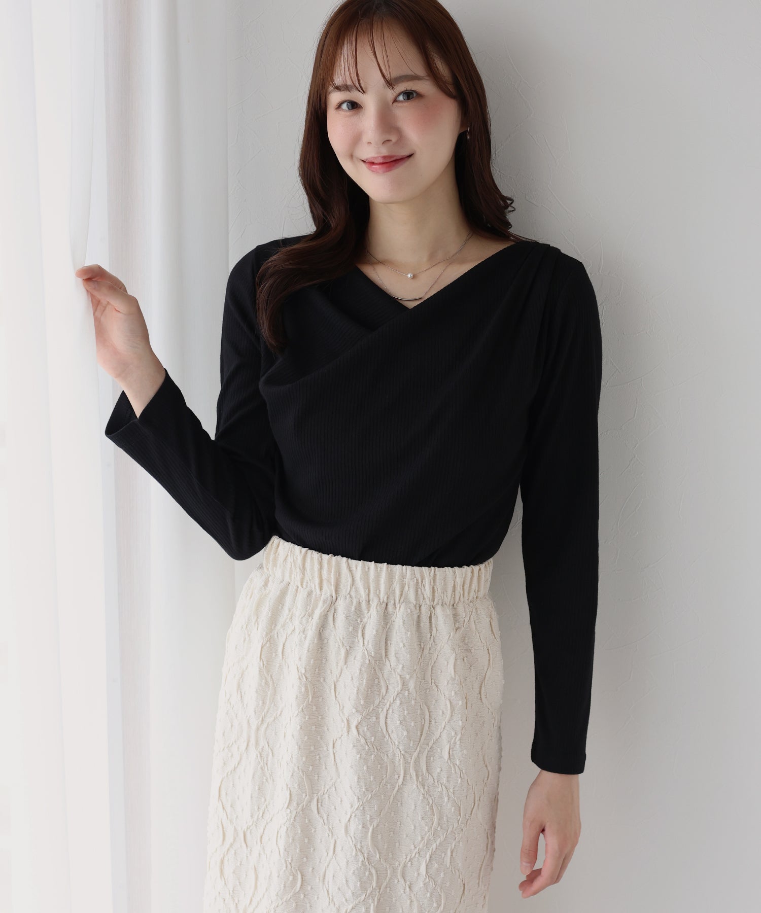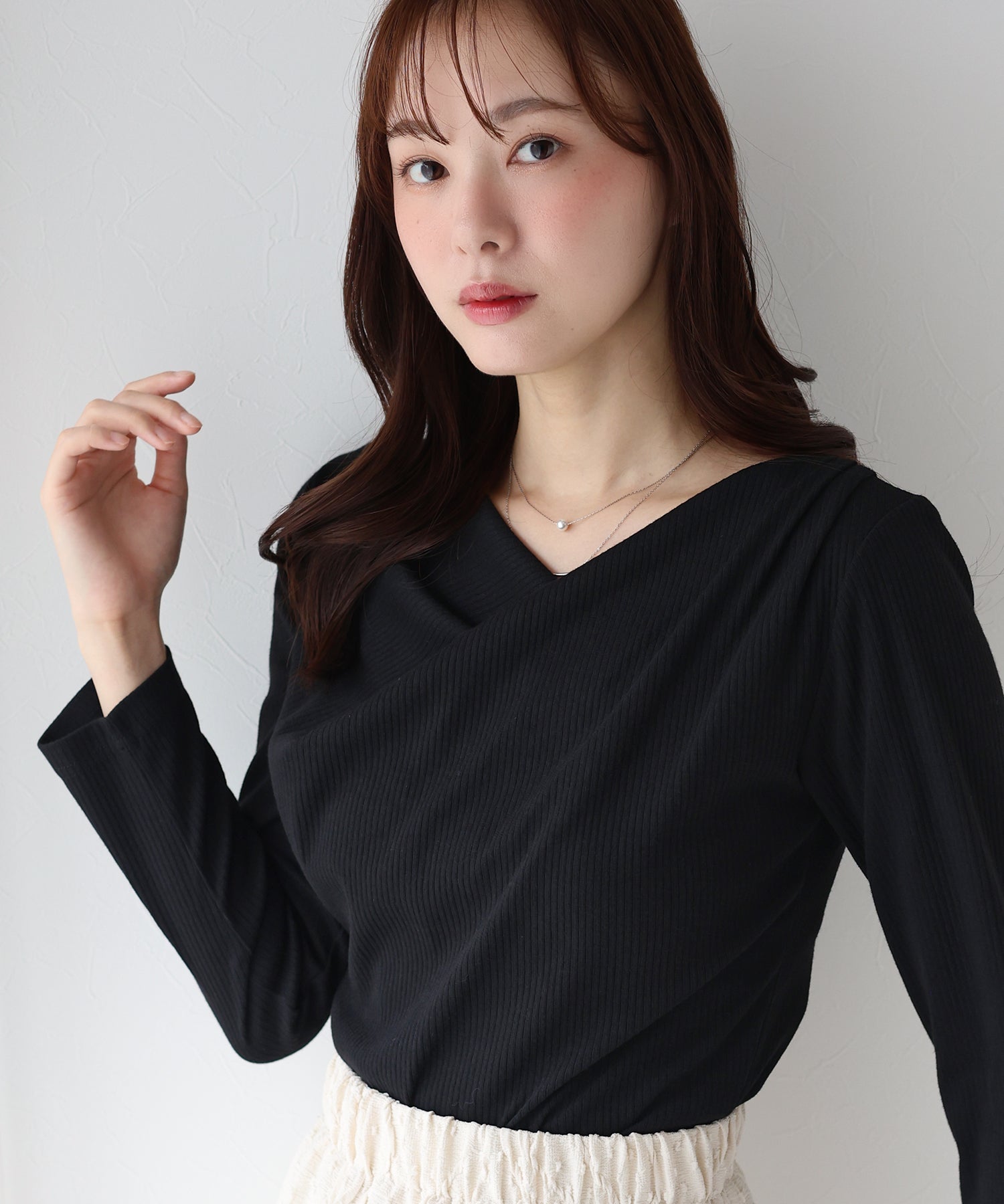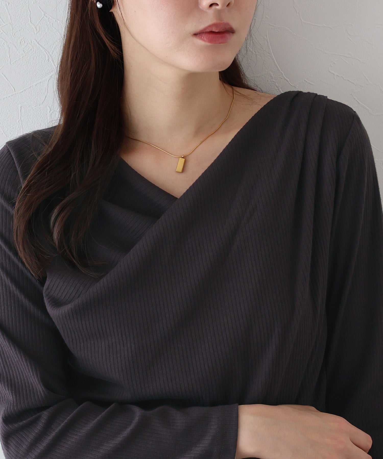 上品なドレープが目を惹くリブカットソー