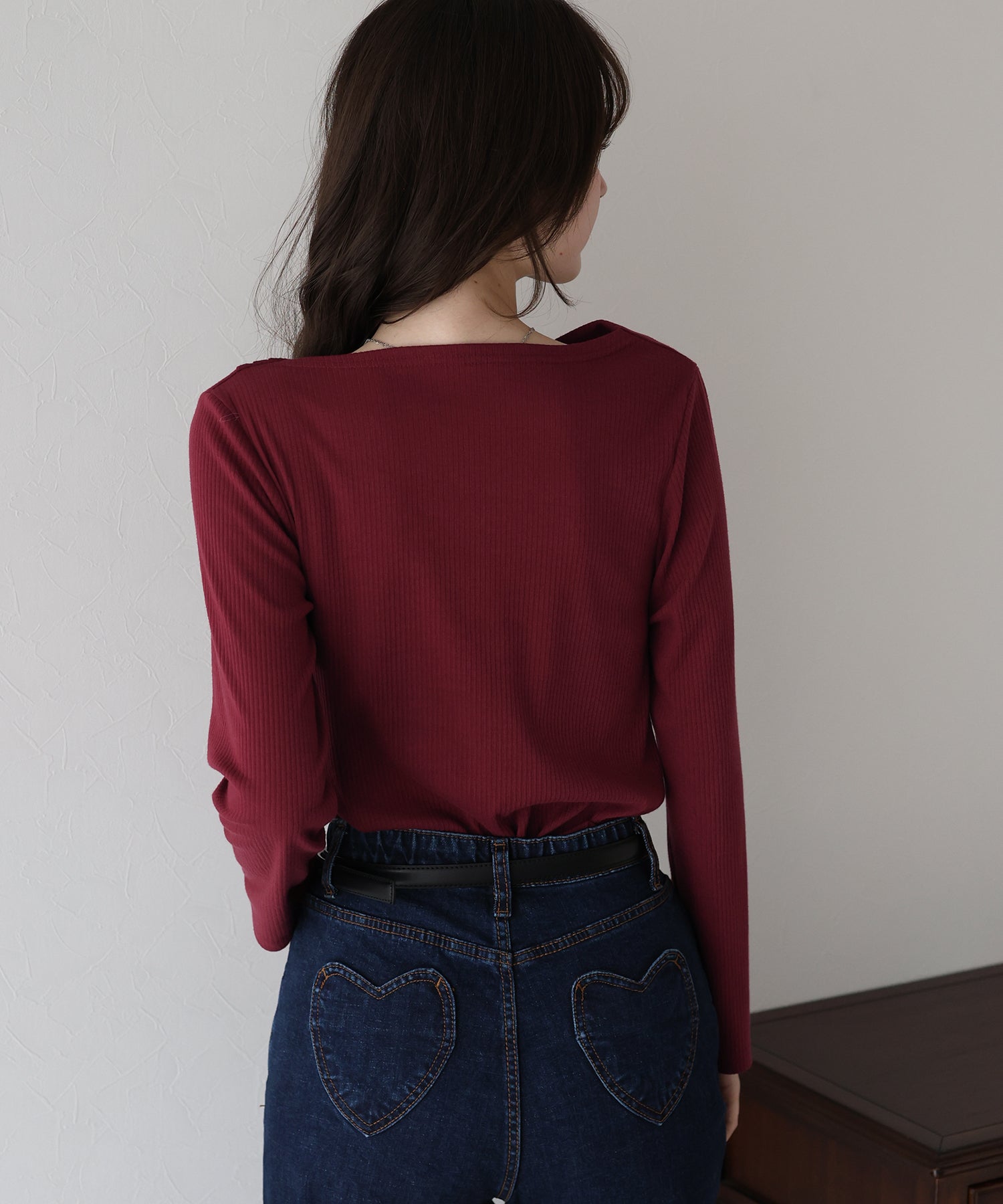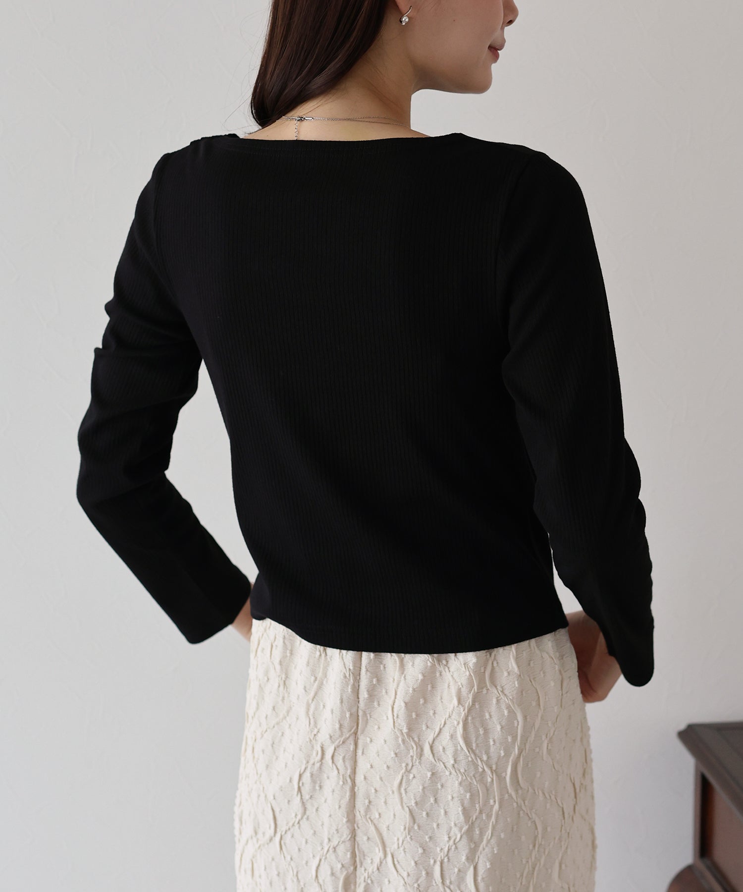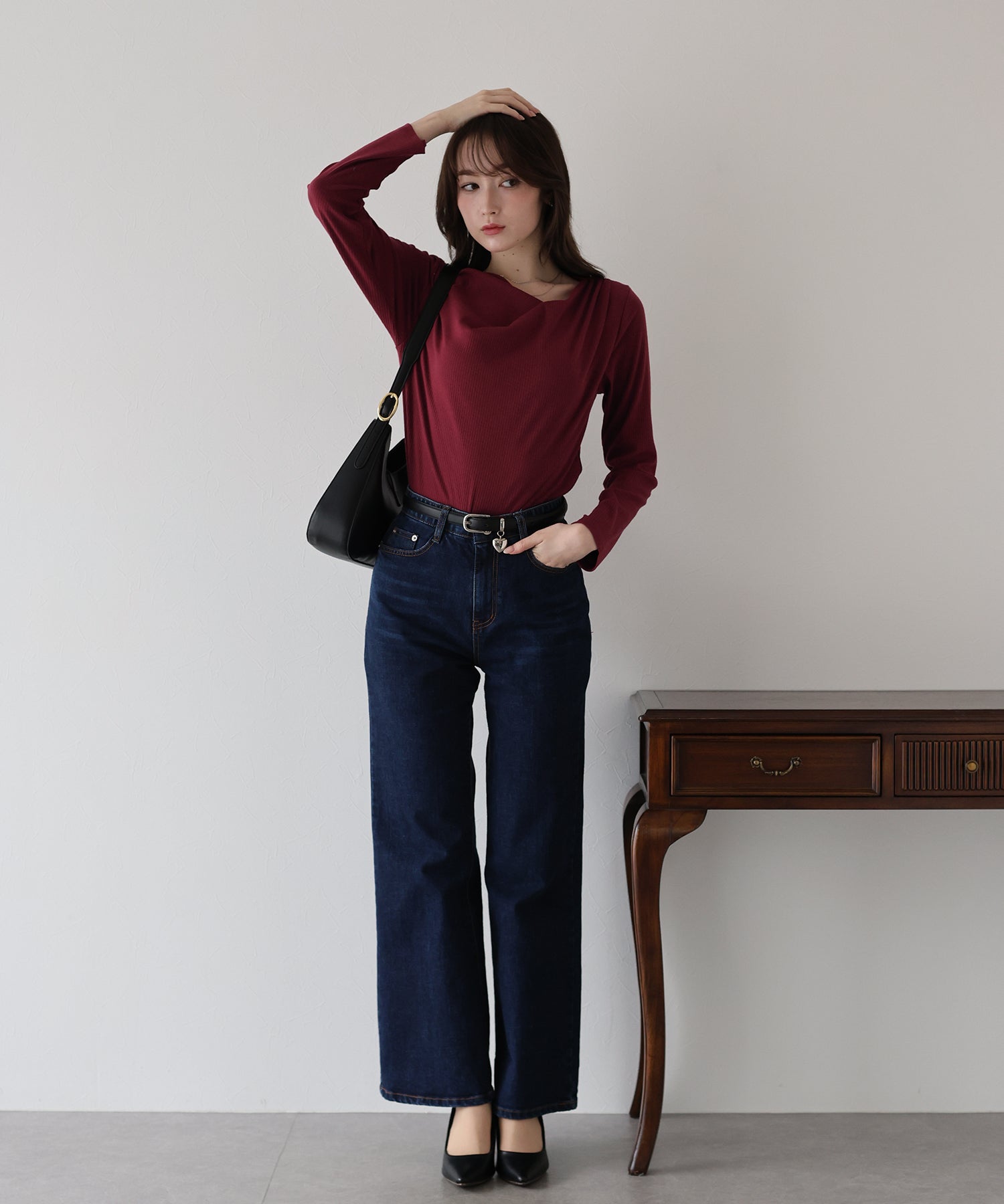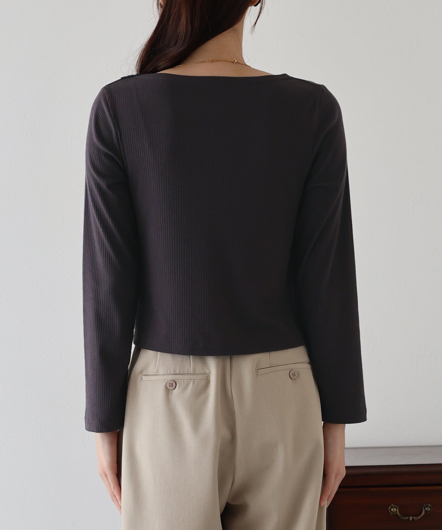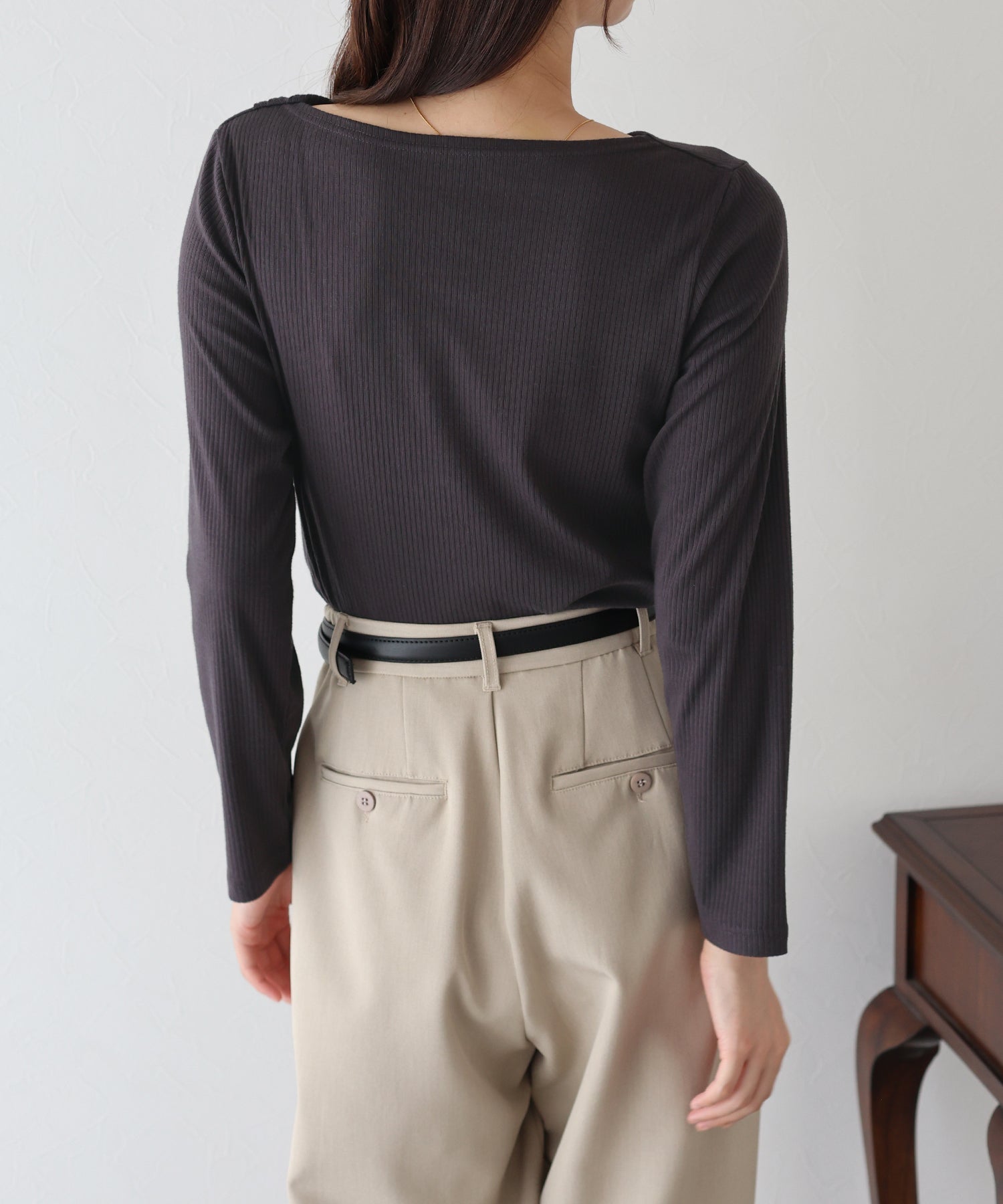 リブ素材のフィット感と縦のラインで、着やせ効果が期待できます。