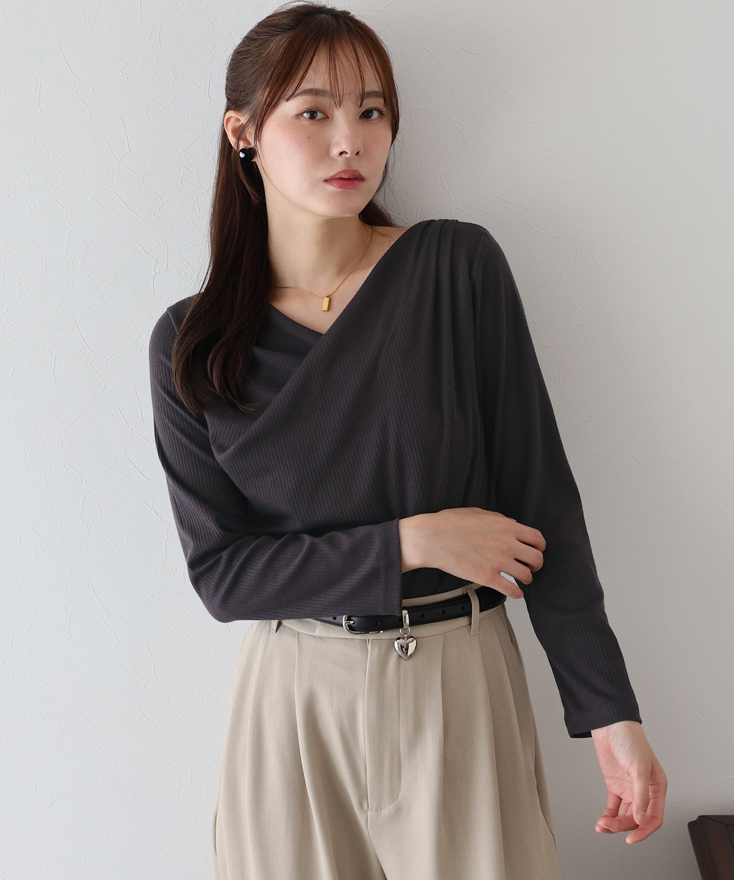 ドレープネックリブカットソー【ネコポス】
