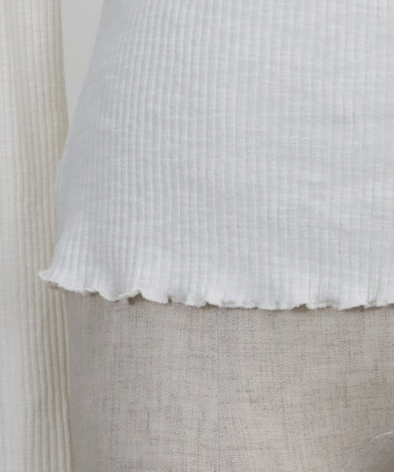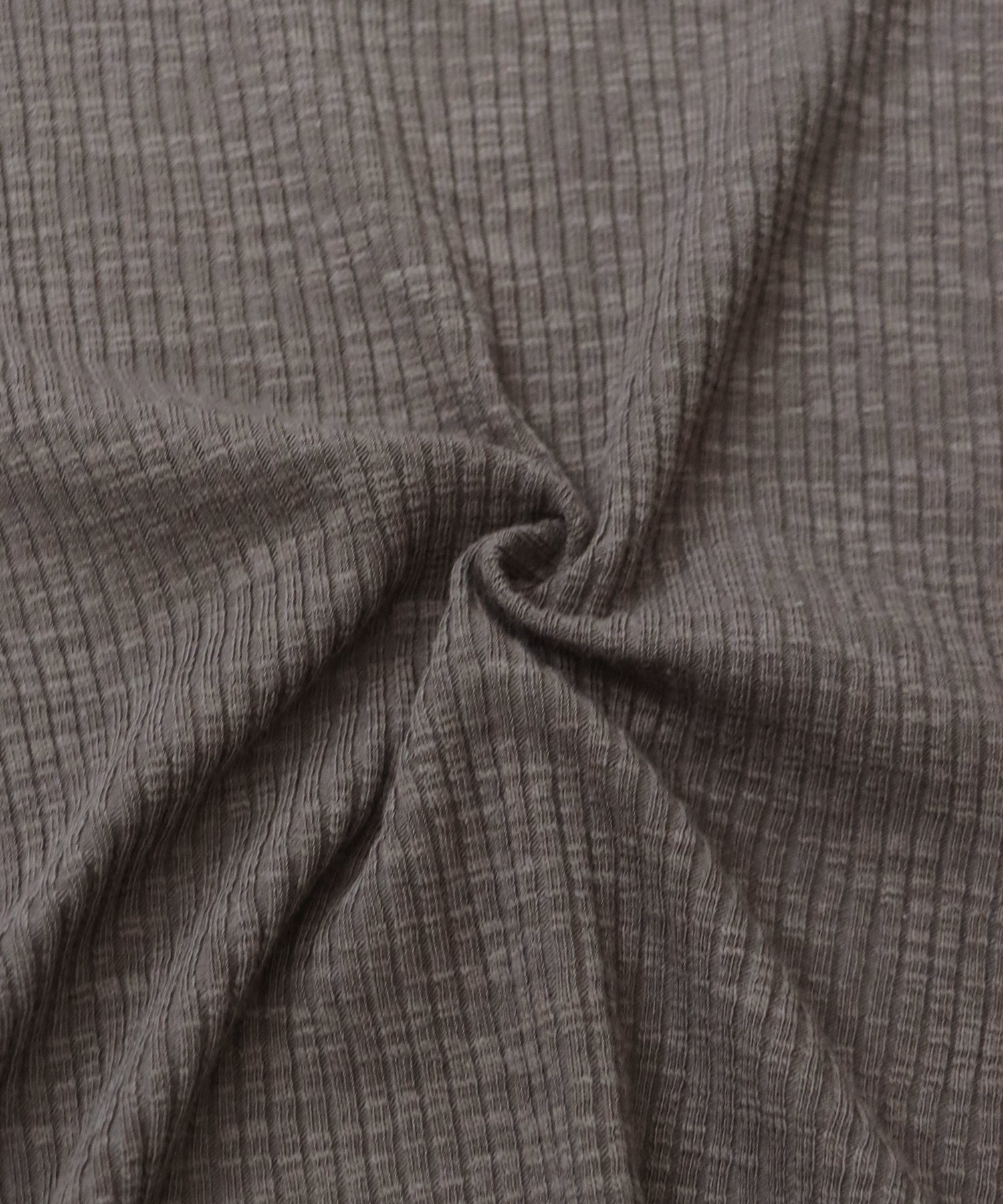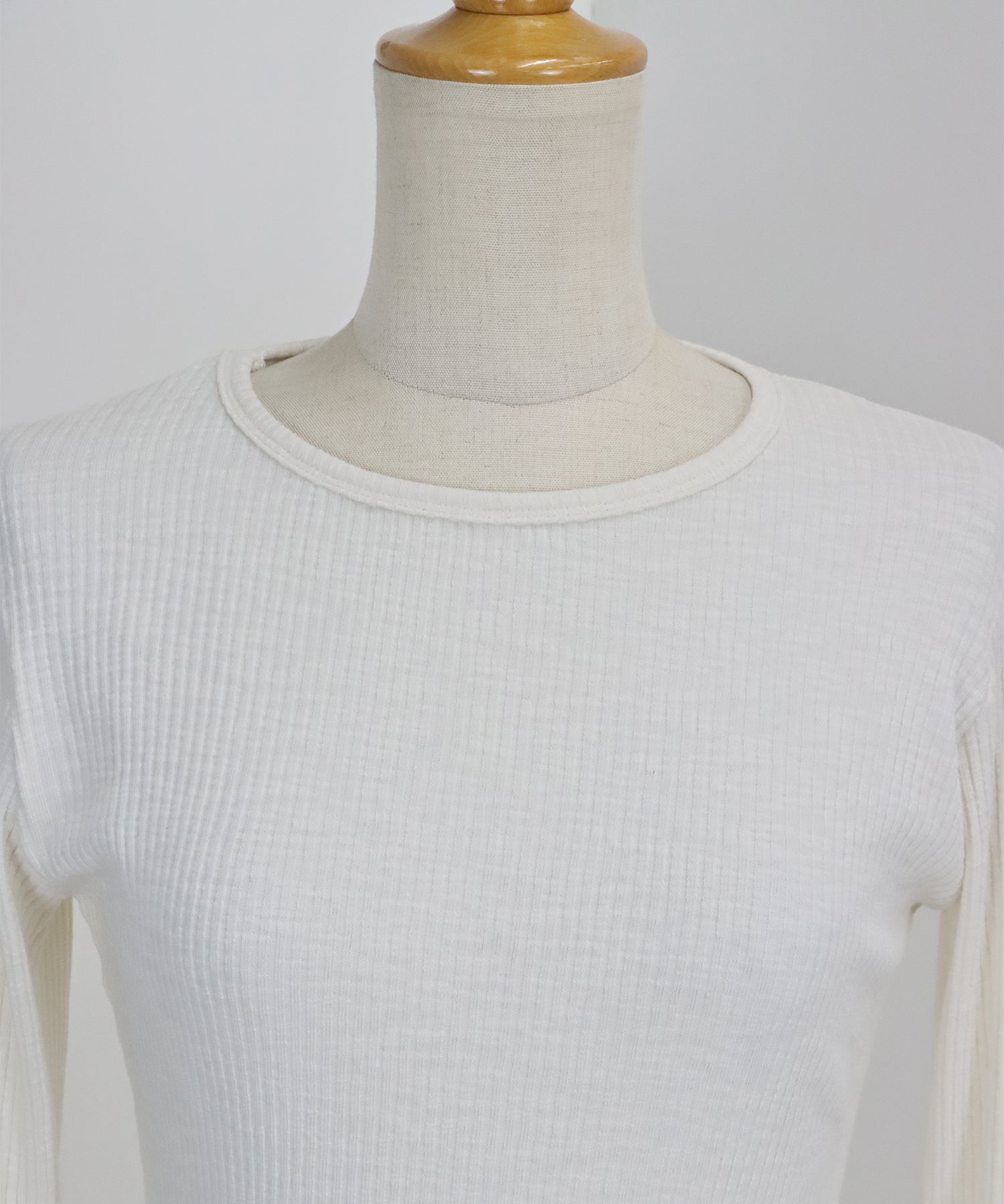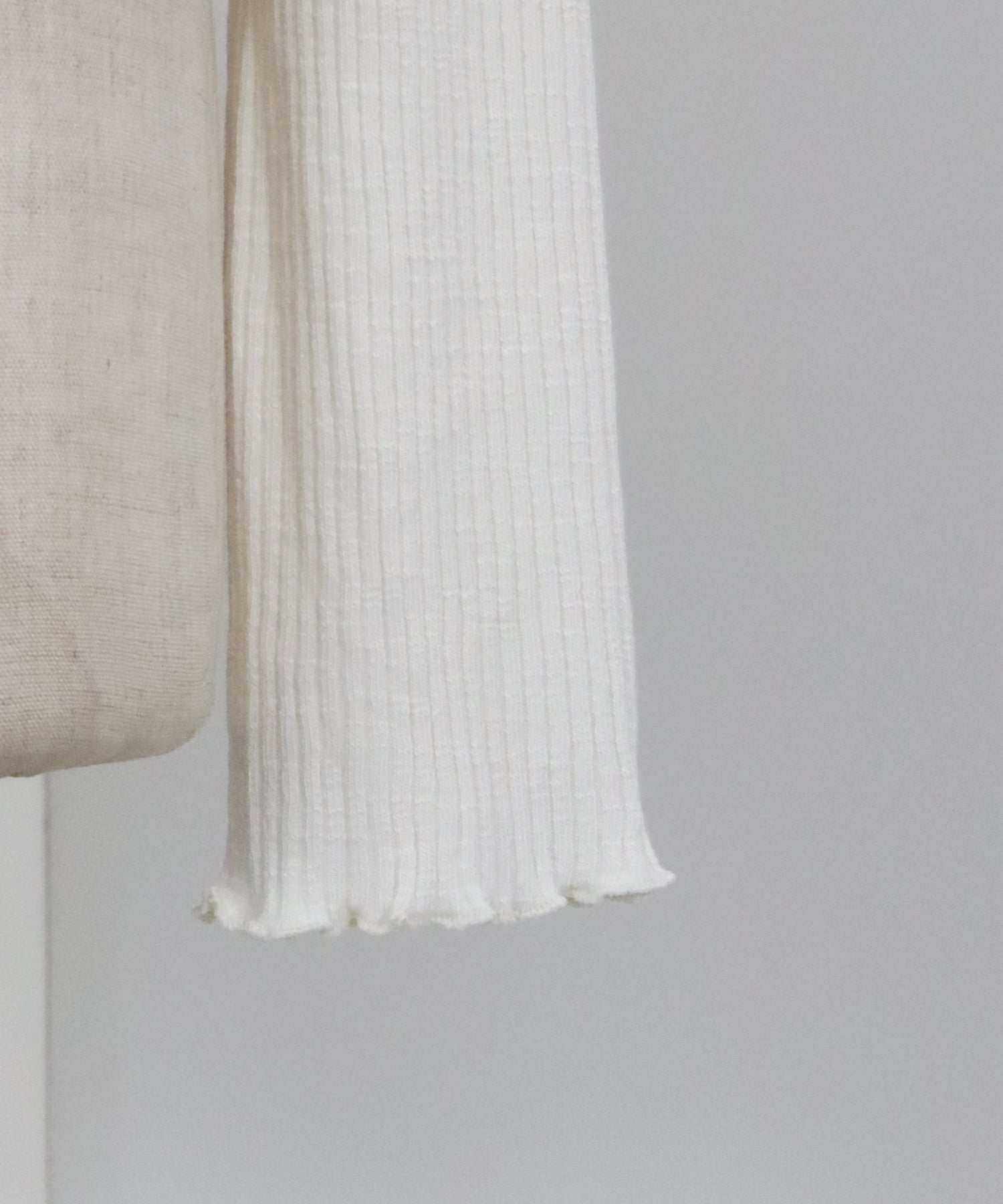 薄すぎず厚すぎないもちっとしたリブカットソー生地が優しくフィットし、着心地の良さと美しいシルエットを両立。