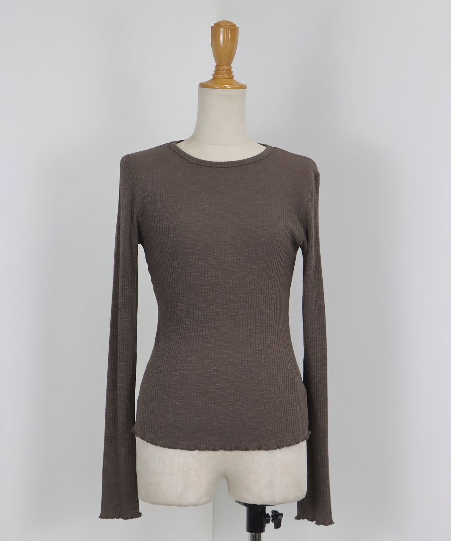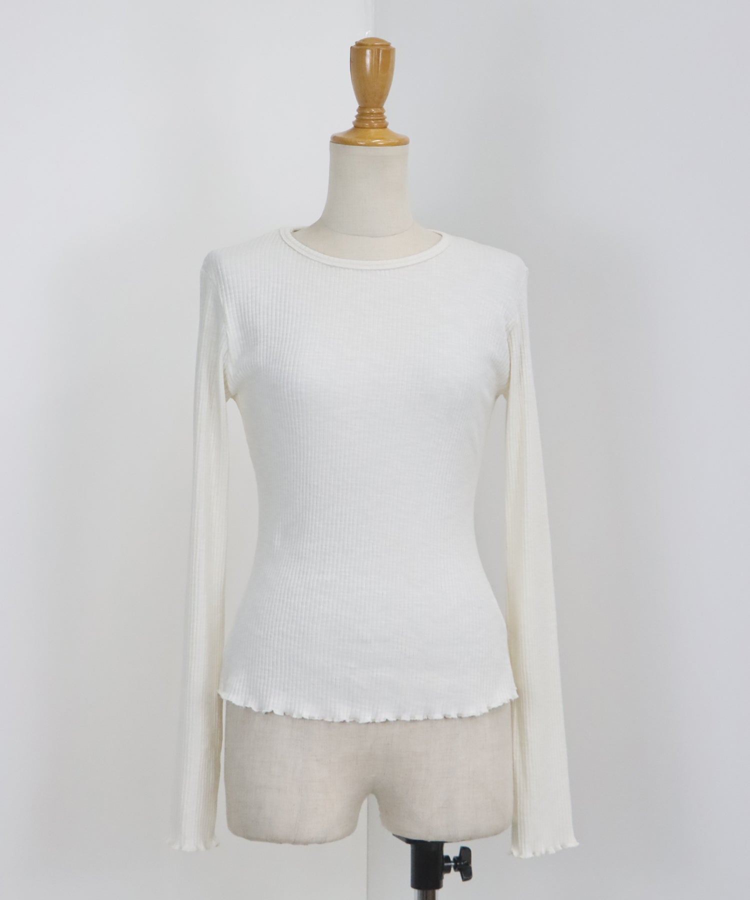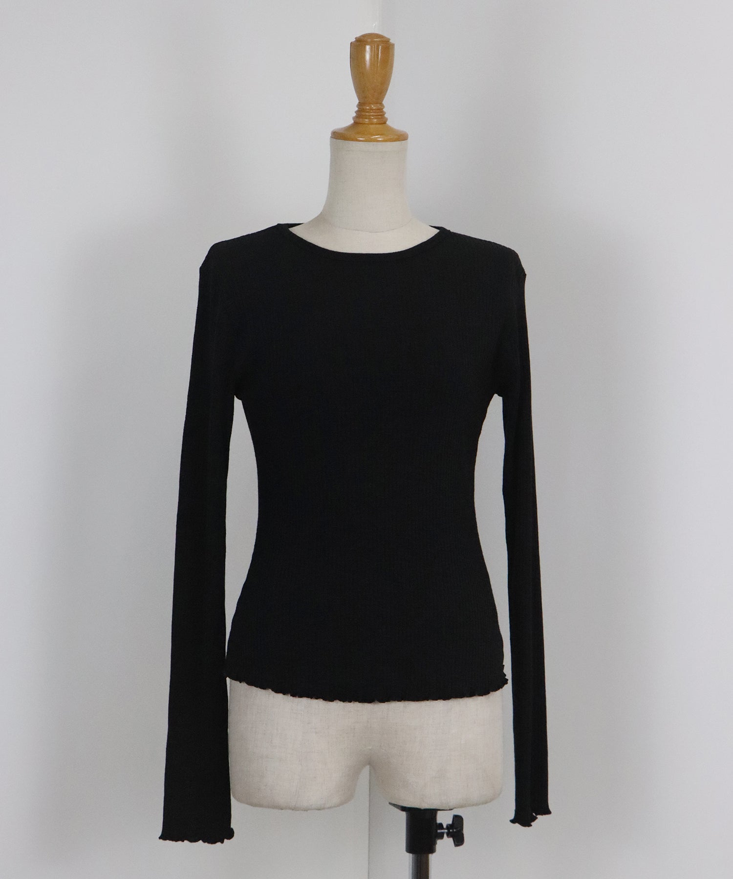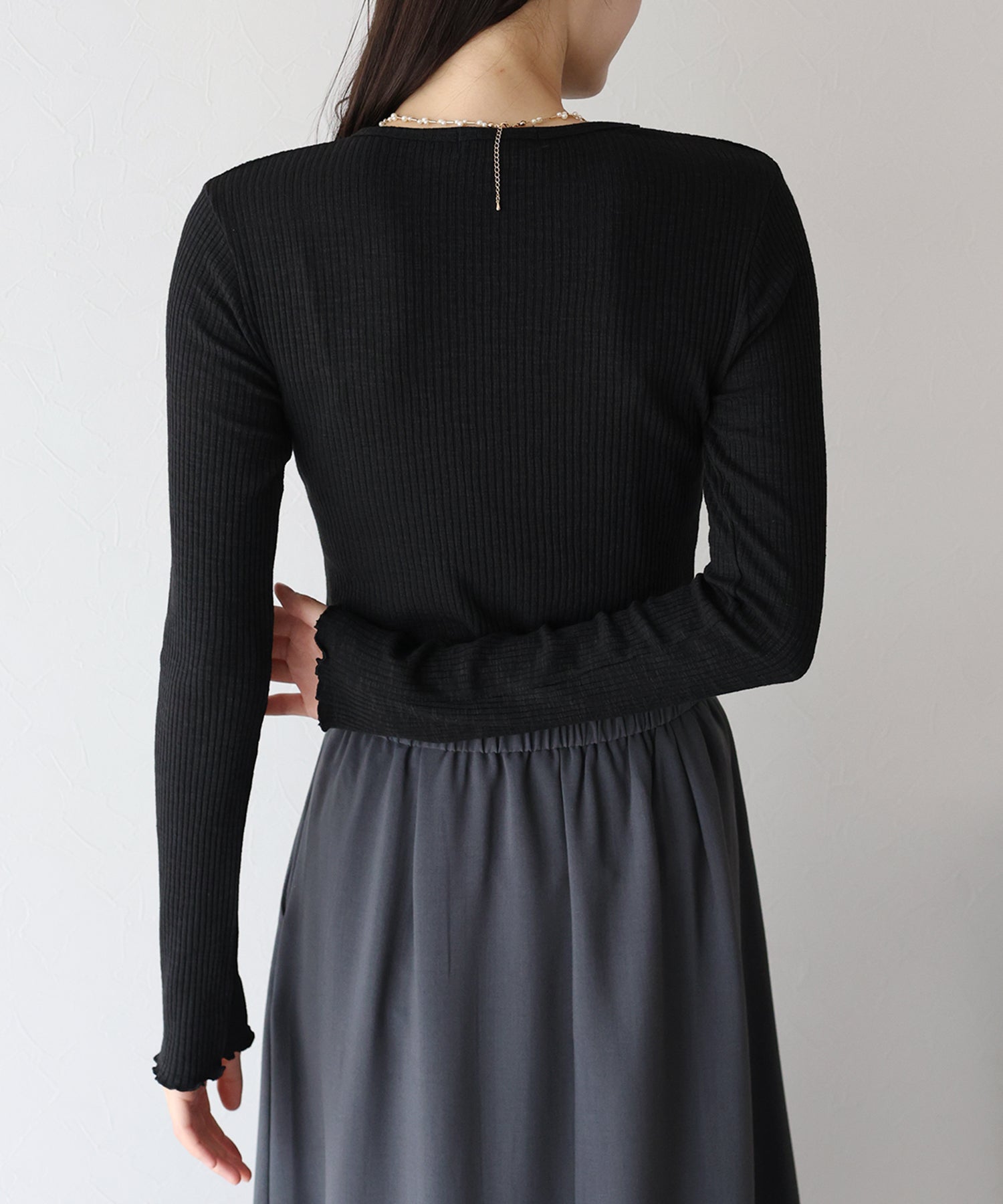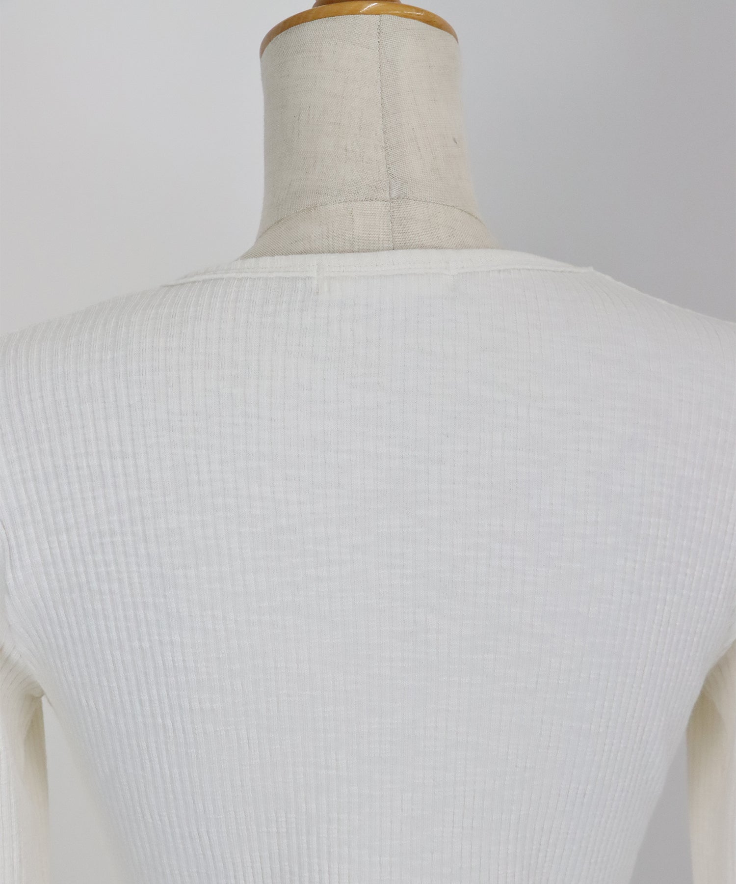 薄すぎず厚すぎないもちっとしたリブカットソー生地が優しくフィットし、着心地の良さと美しいシルエットを両立。