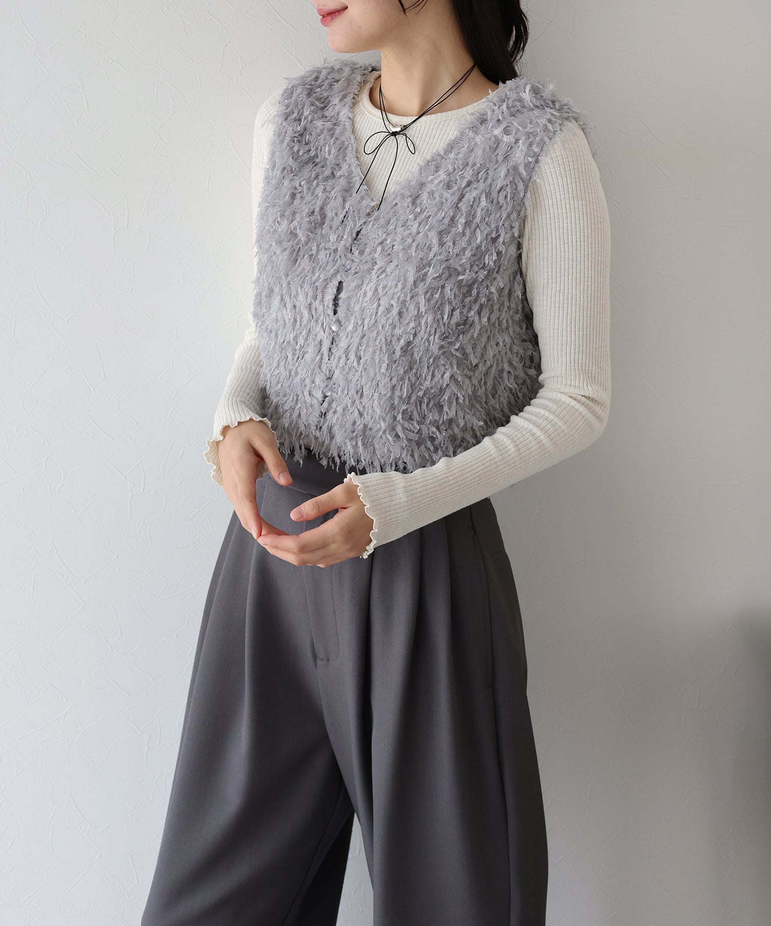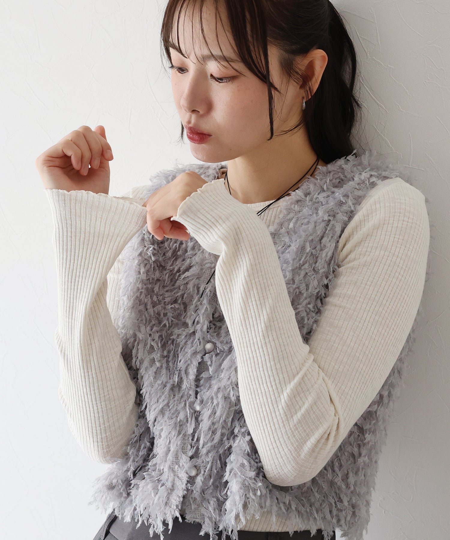 ワイドパンツやマーメイドスカートに合わせれば、大人っぽさの中に甘さを感じるコーデが楽しめます。
