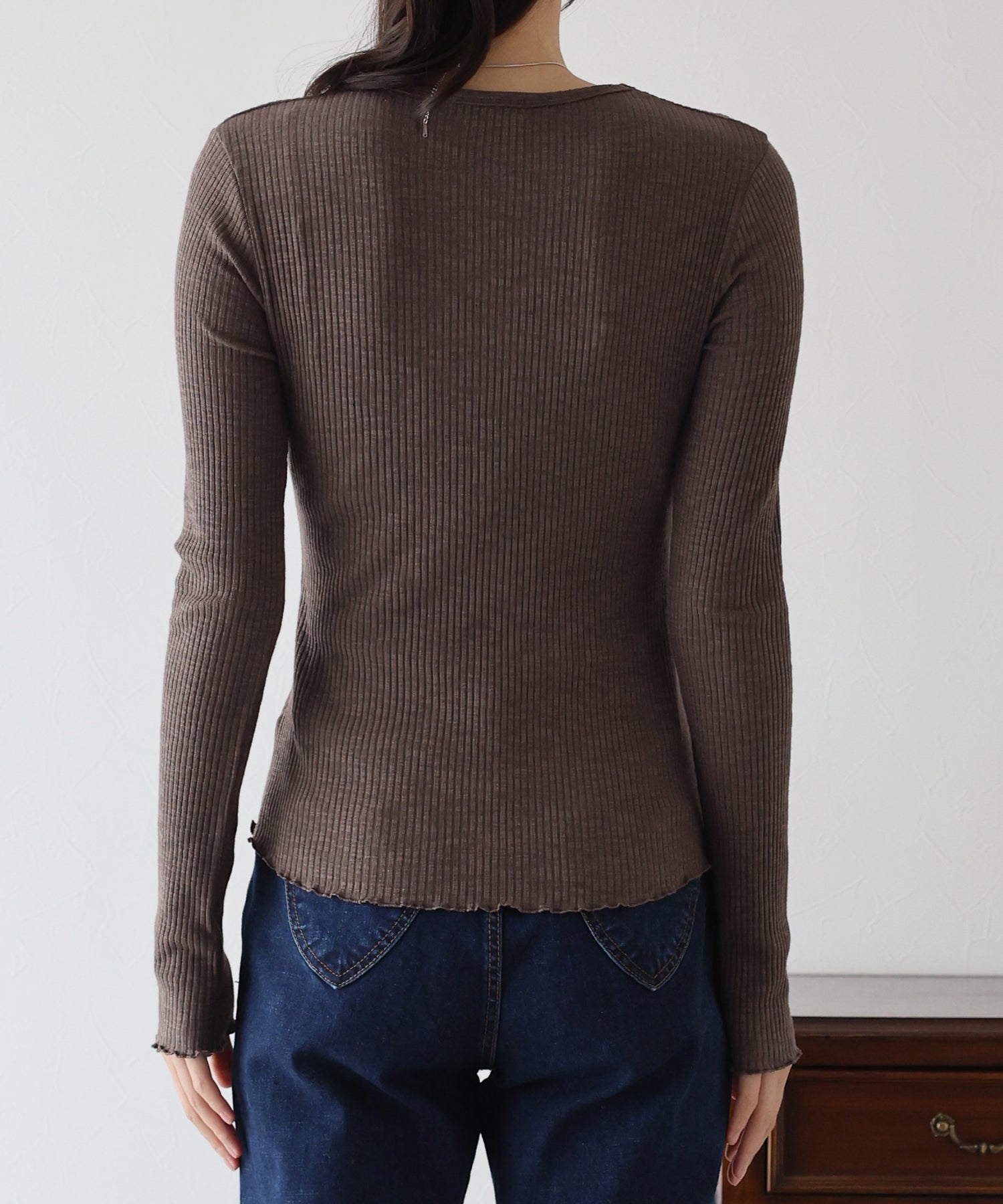 ジャケットやカーディガンのインナーとしても程よい存在感を発揮し、オンオフ問わず活躍。