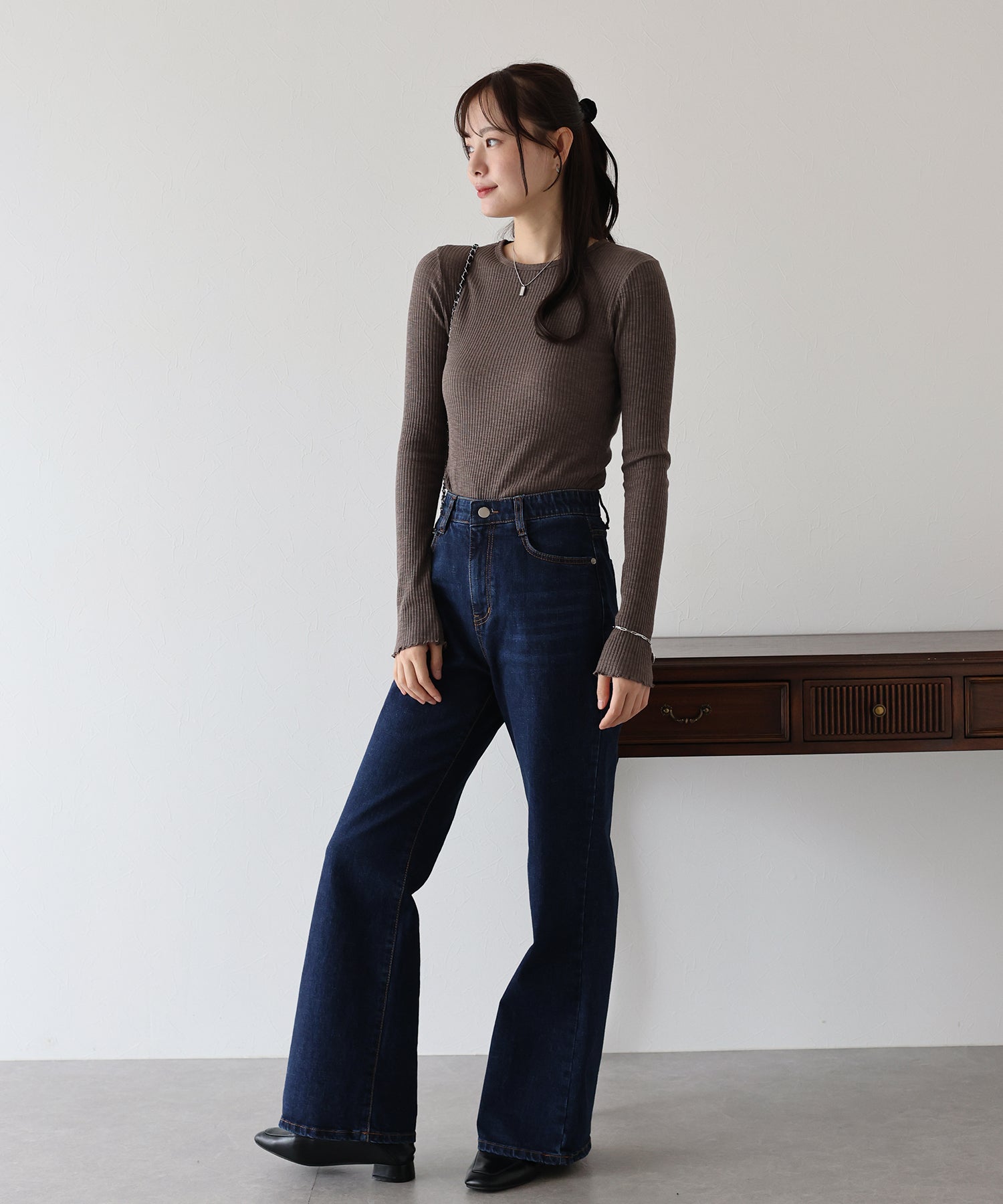 デニムやフレアスカートと合わせれば、ガーリーな可愛らしさを引き立てつつ、カジュアルな抜け感もプラス◎