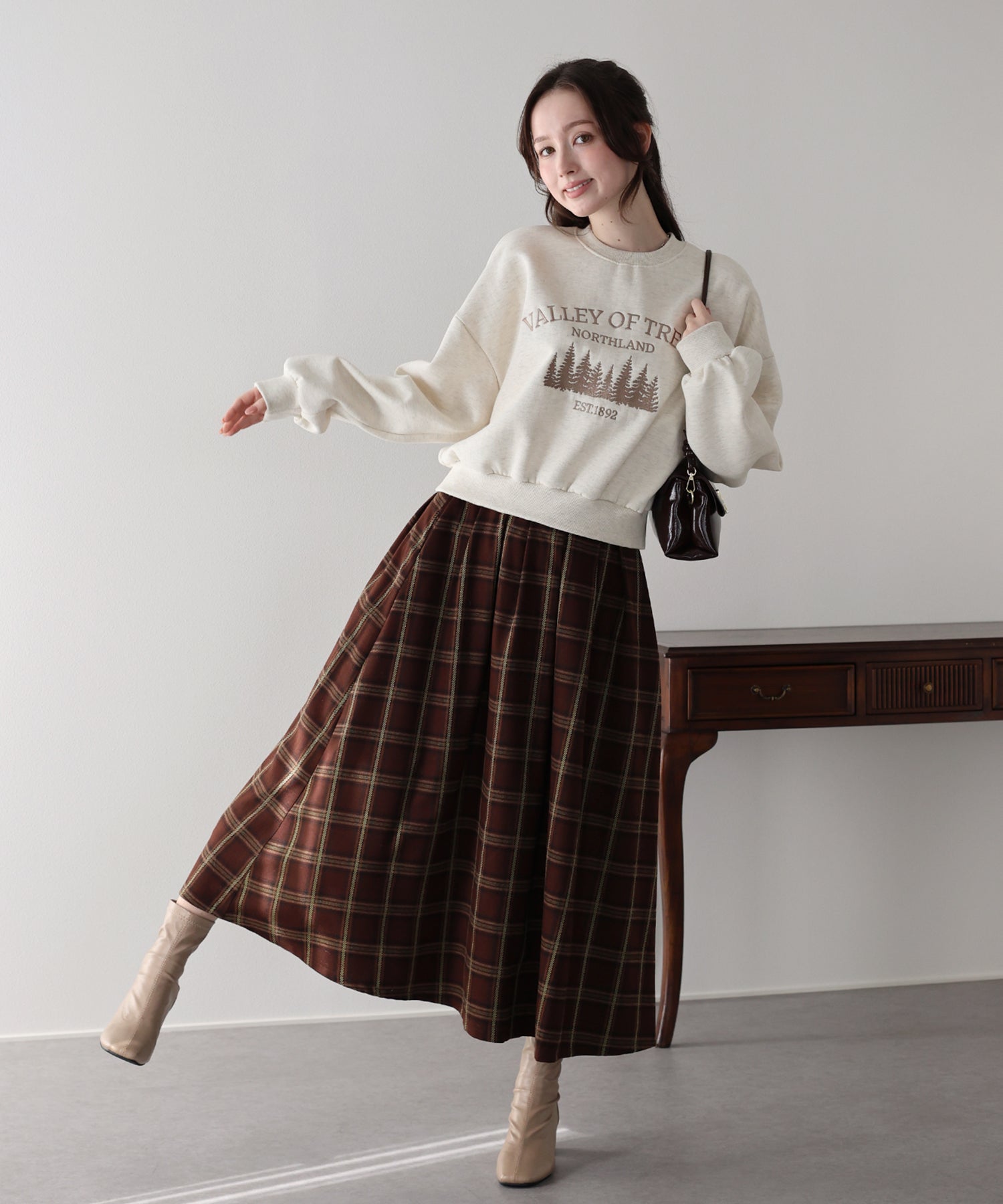 木のモチーフ刺繍が冬っぽく、ホリデーシーズンにもぴったりのアイテムです。