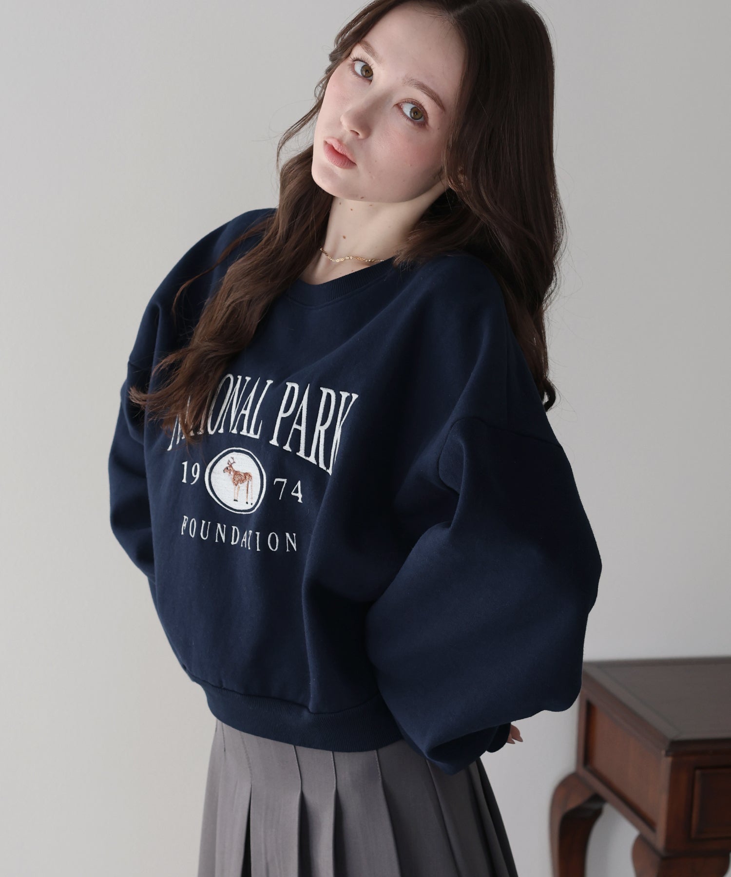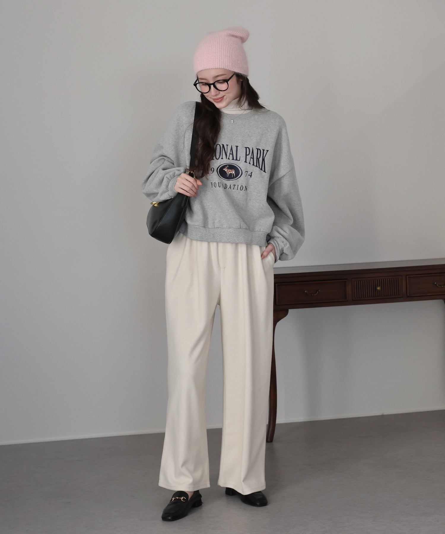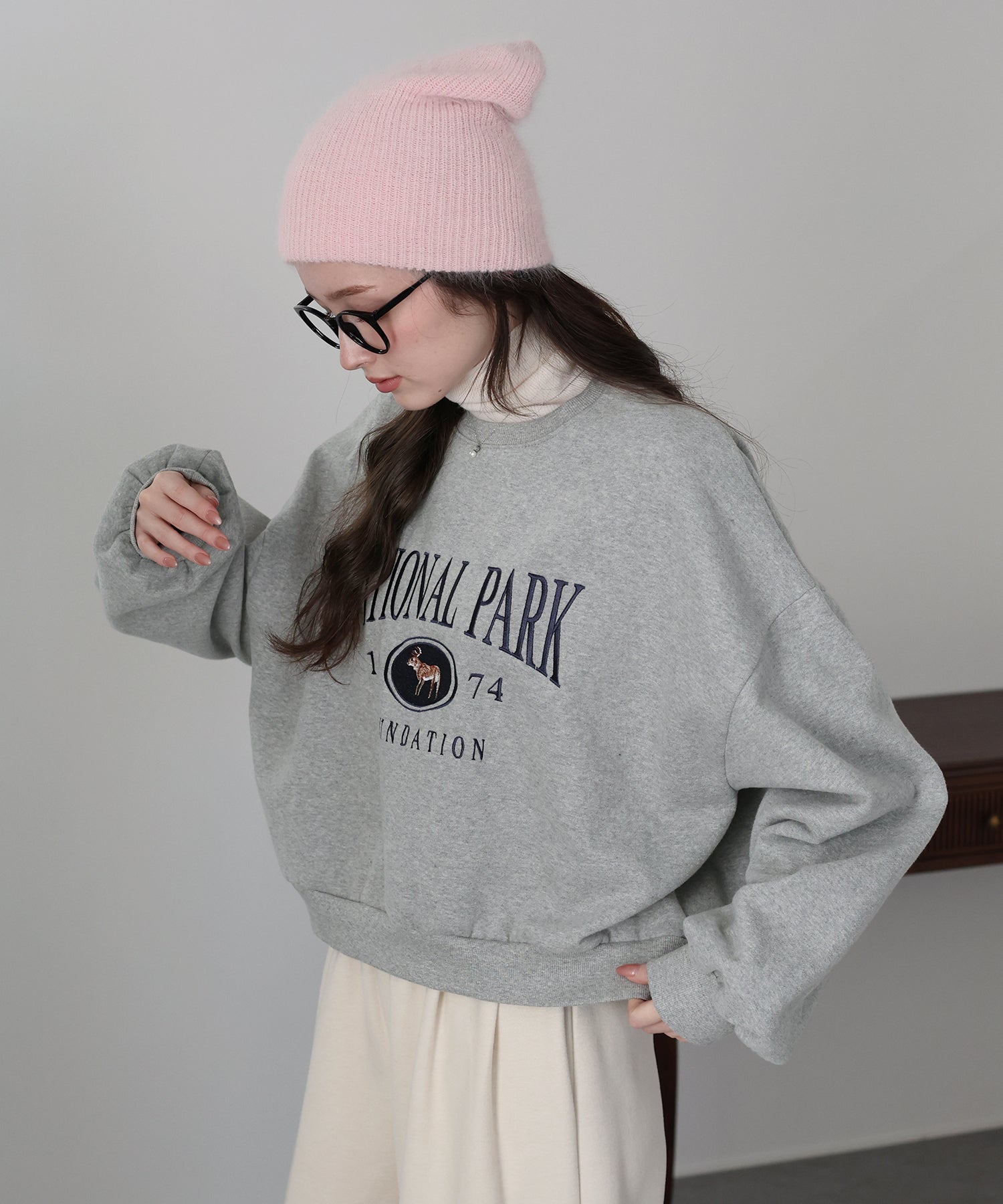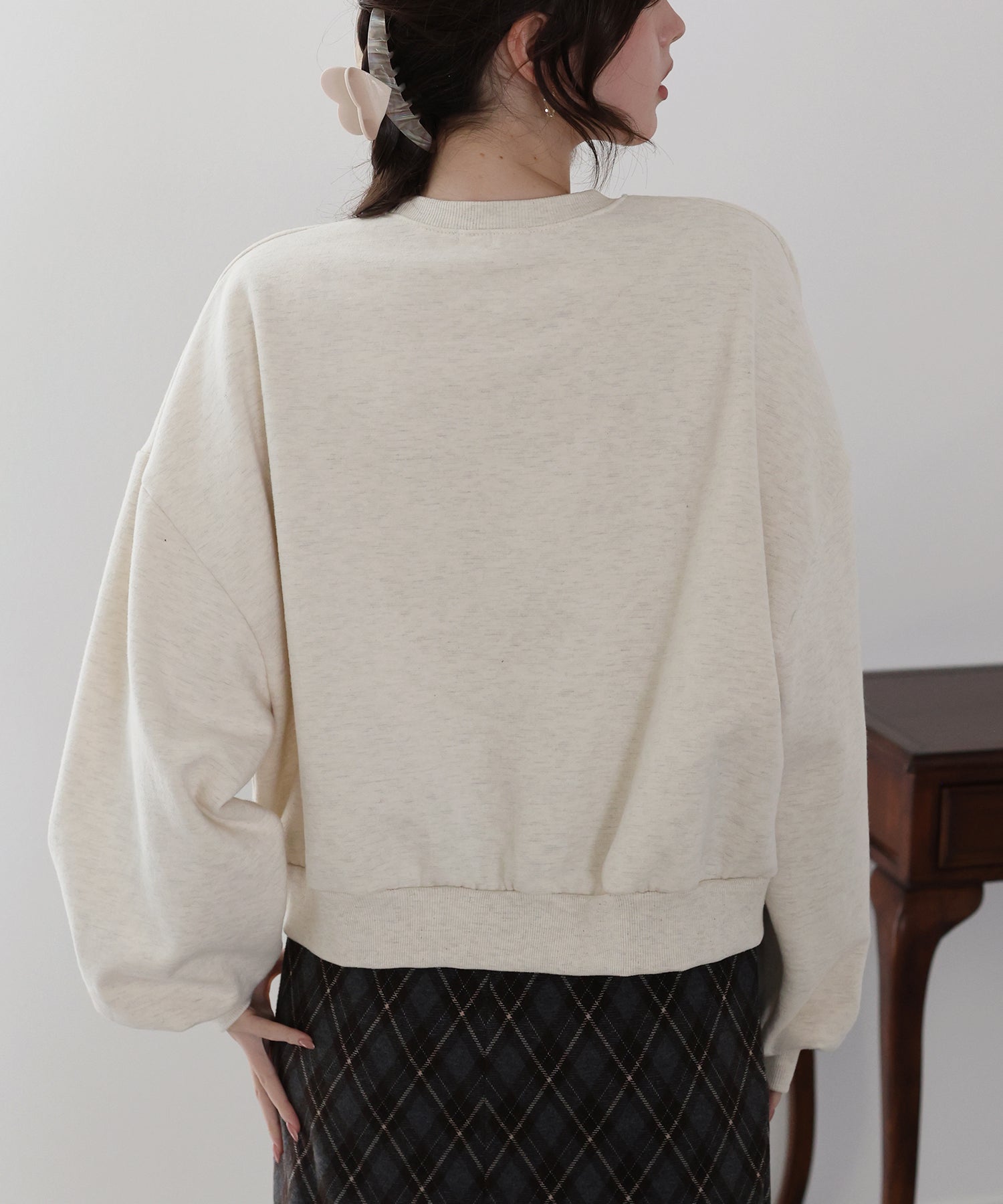 ショート丈ながらもルーズなシルエットでゆったりと着られるスウェット。