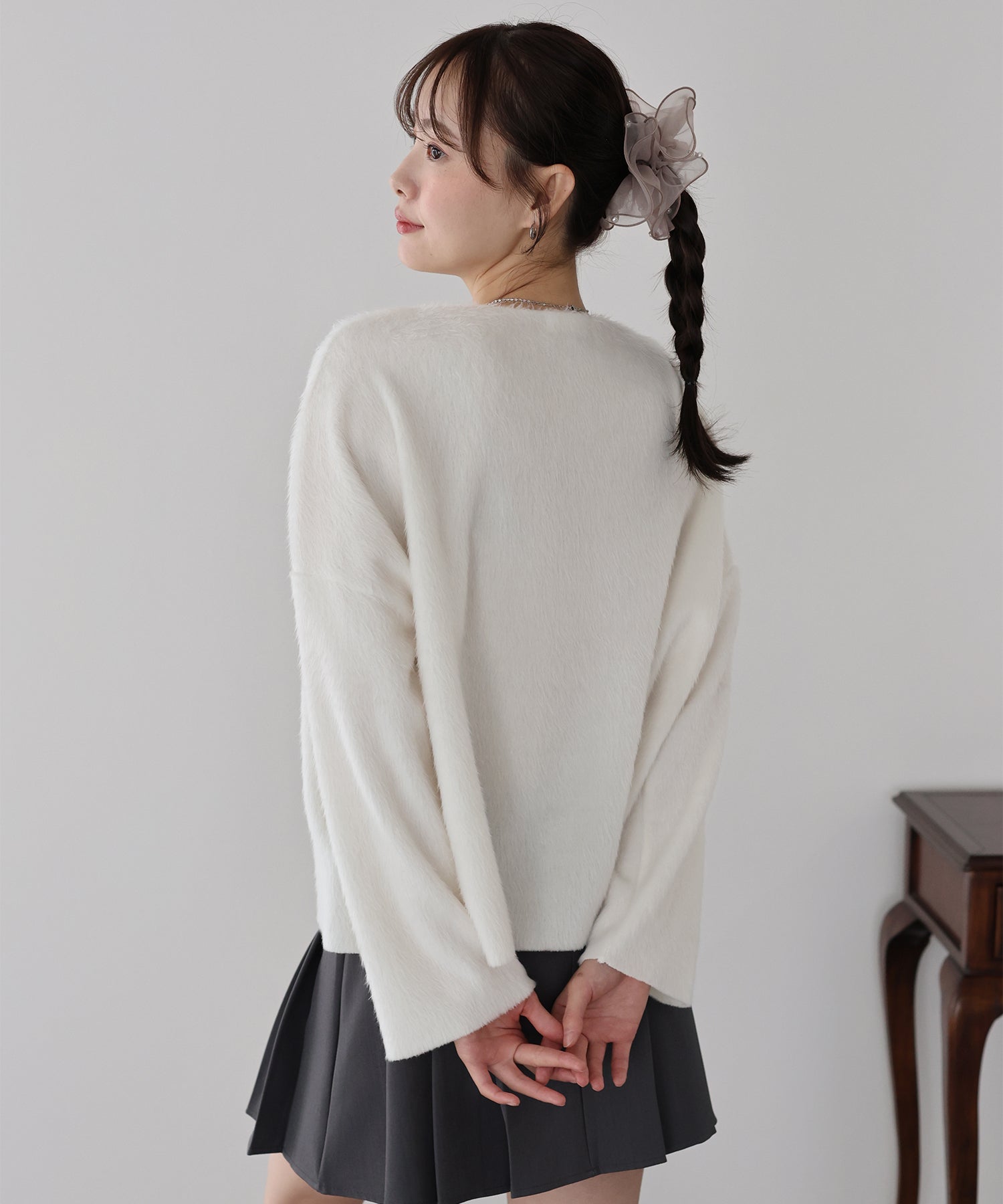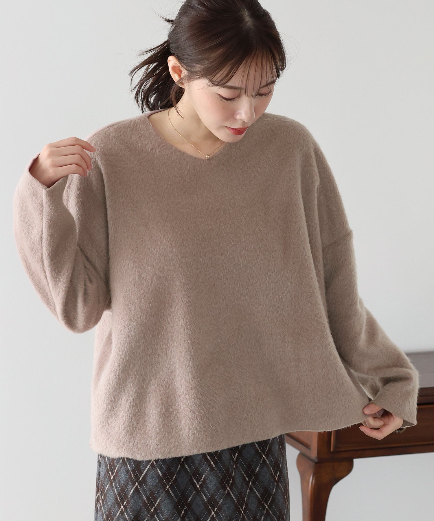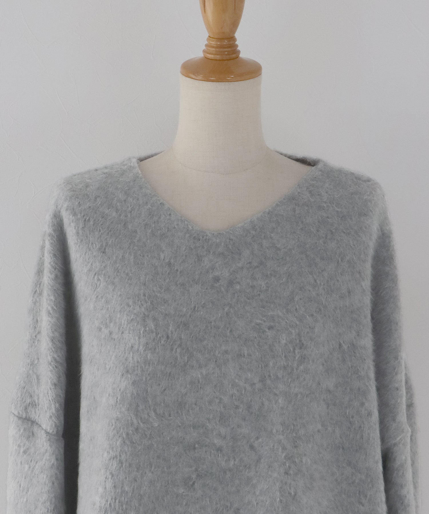 Vネックデザインが程よい抜け感を演出し、首元やデコルテを美しく演出します。