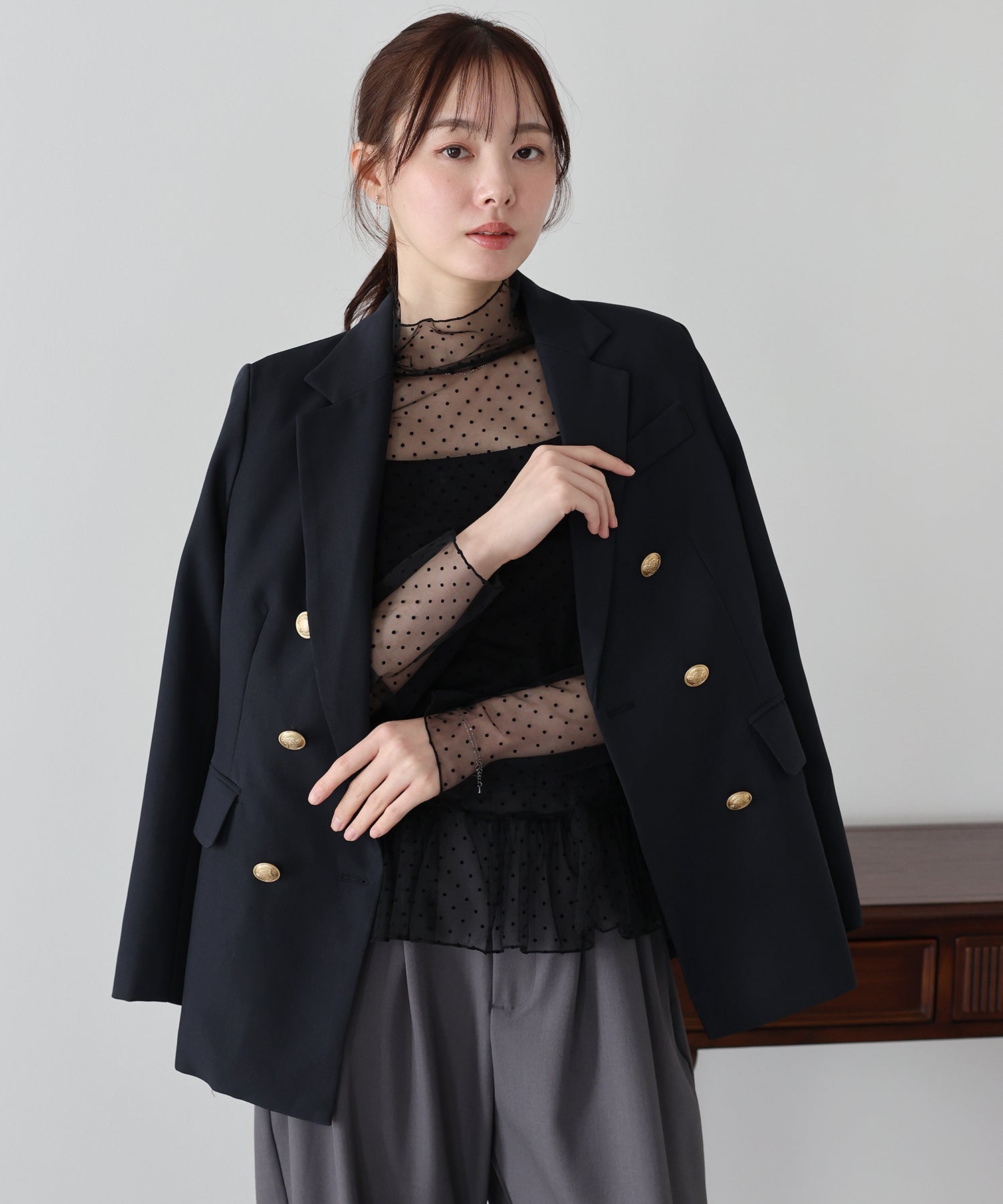 華やかで繊細なドットをペプラムシルエットに落とし込み、