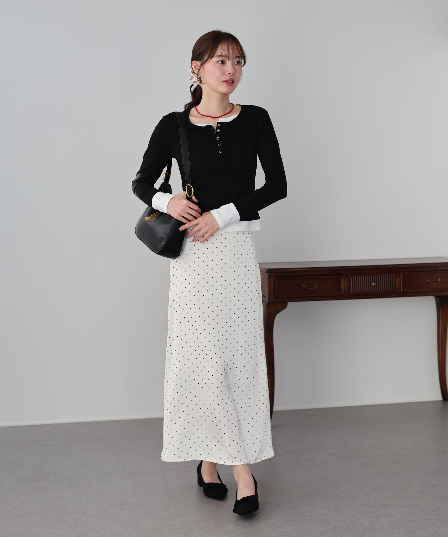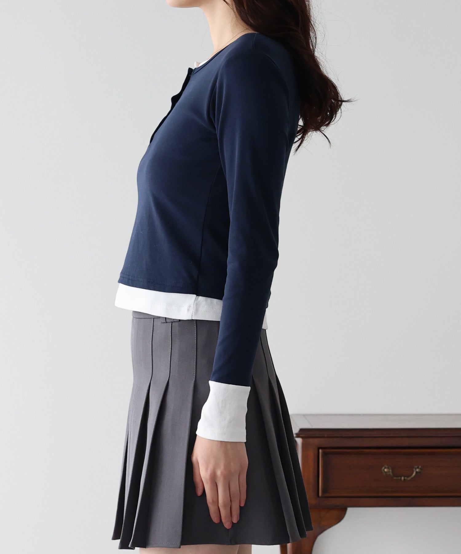 ジャケットやカーディガンを羽織れば、スナップボタンとレイヤードディテールがアクセントとなり、
