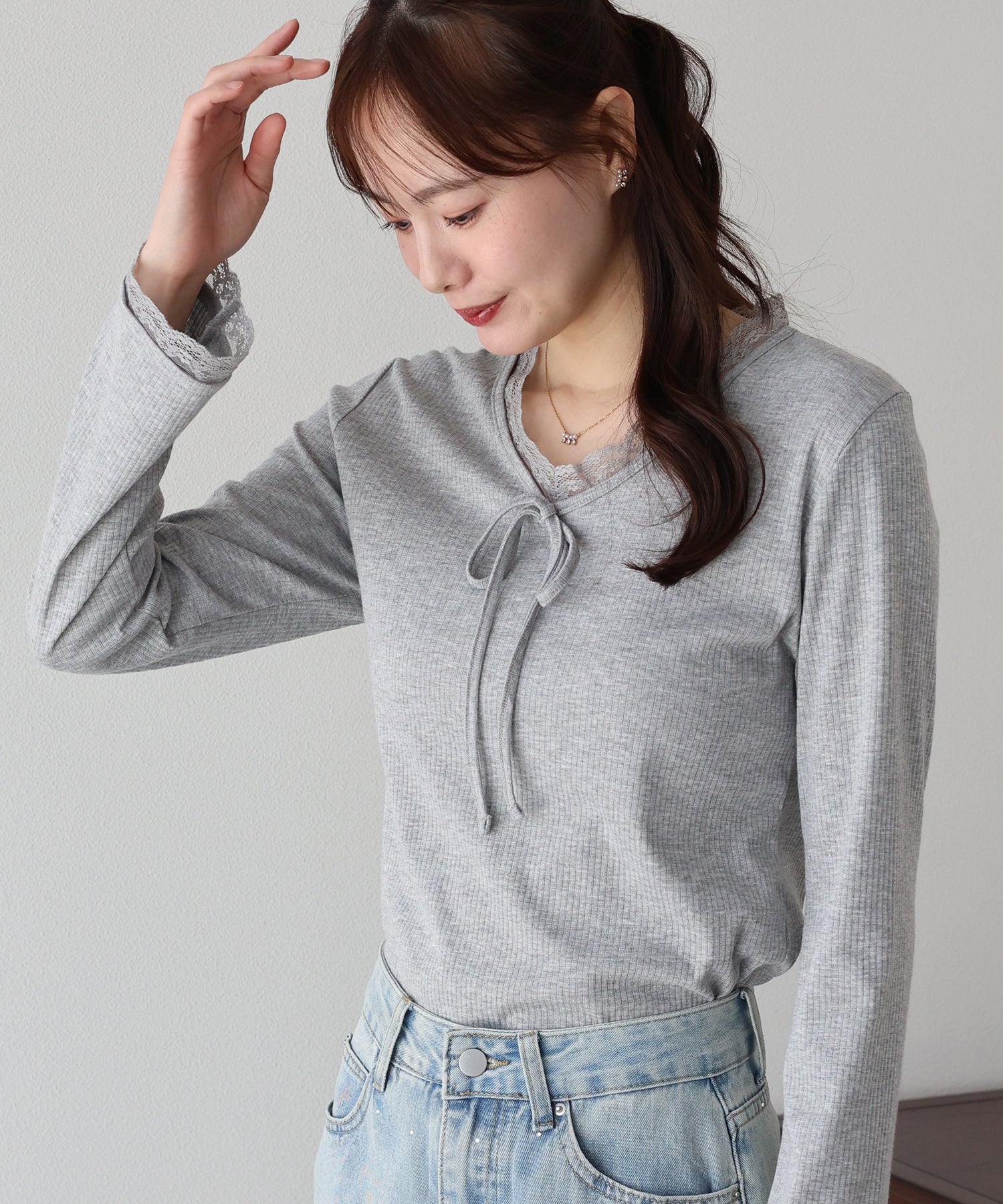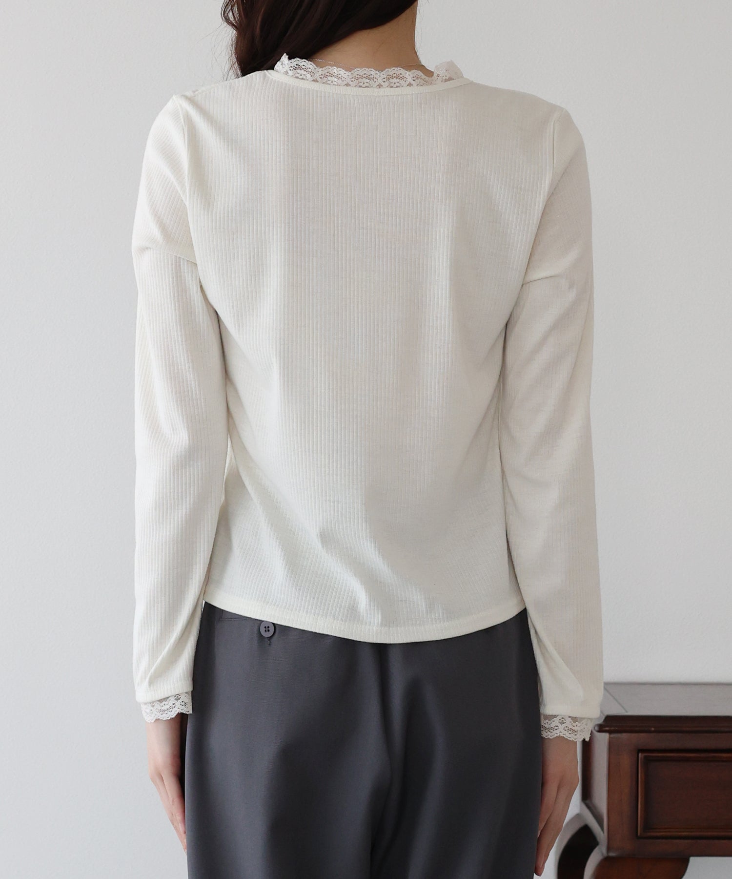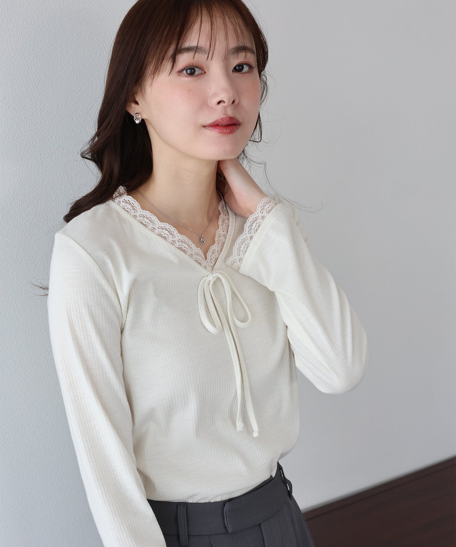 フェミニンな魅力が詰まったフロントリボンレースカットソー