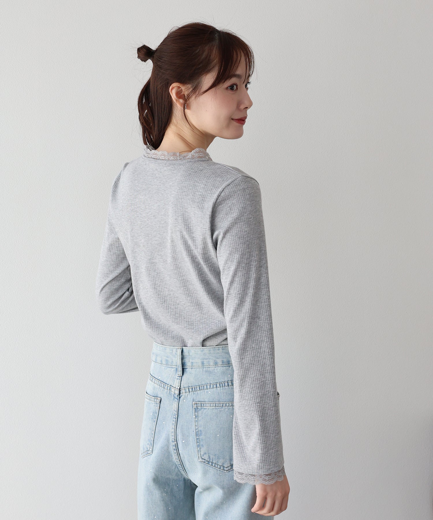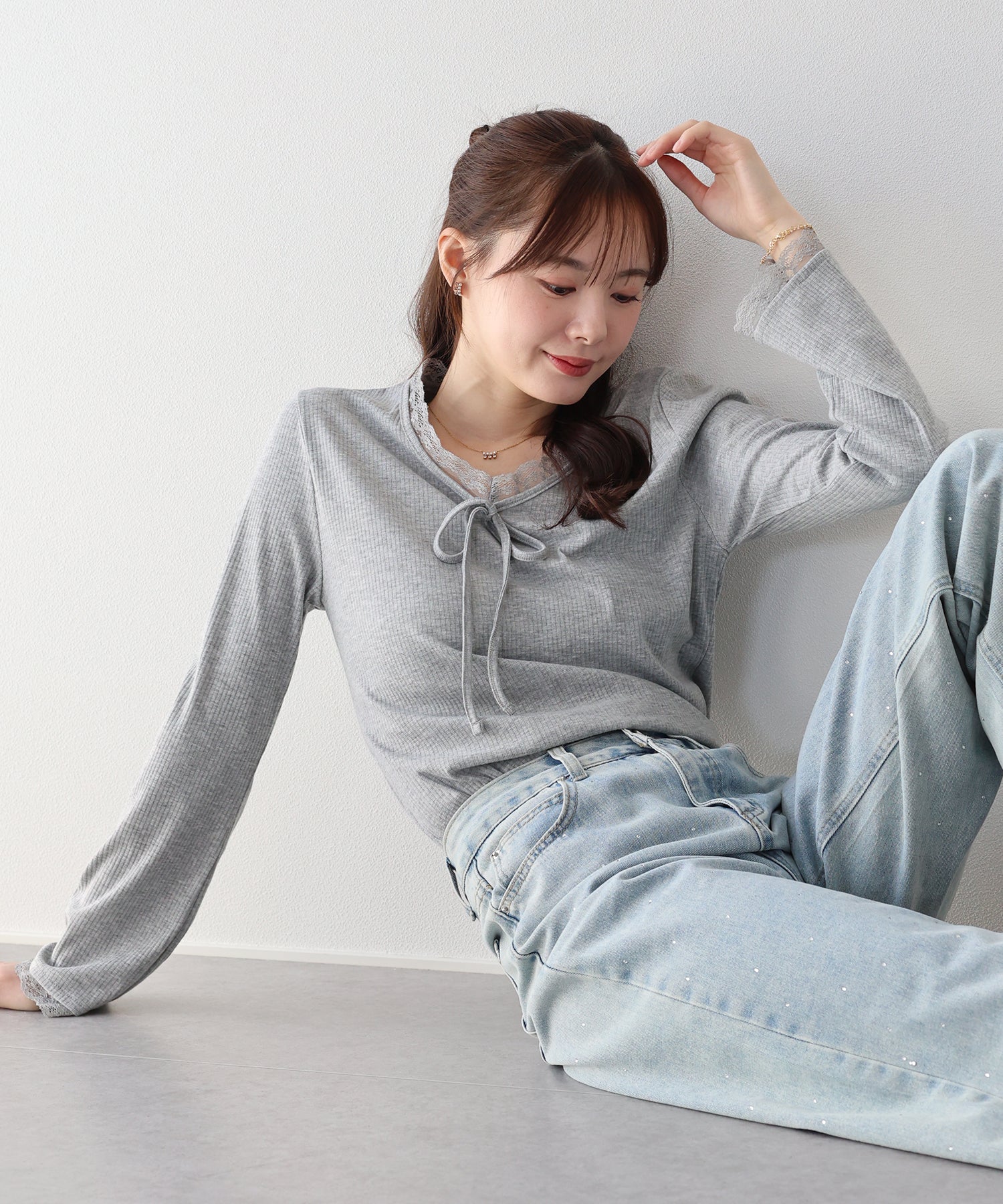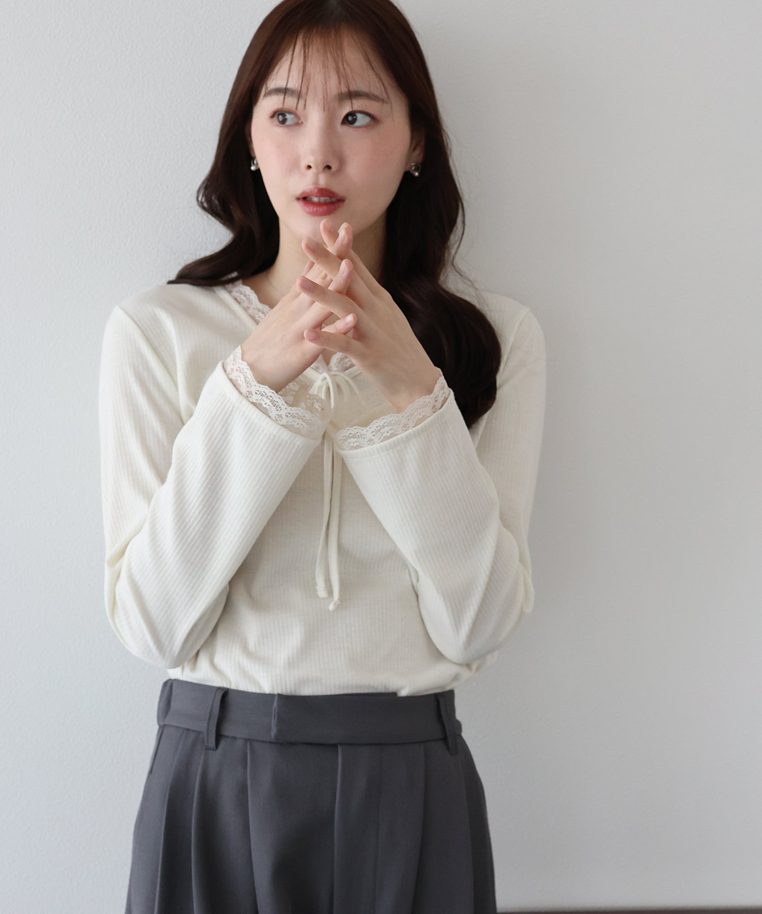 フェミニンな魅力が詰まったフロントリボンレースカットソー