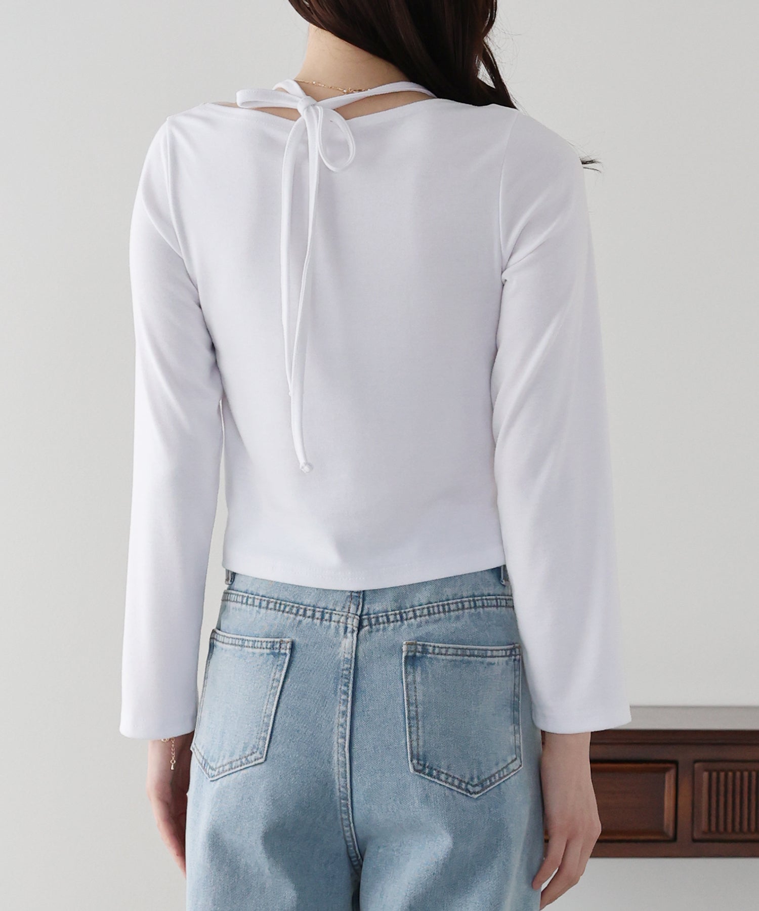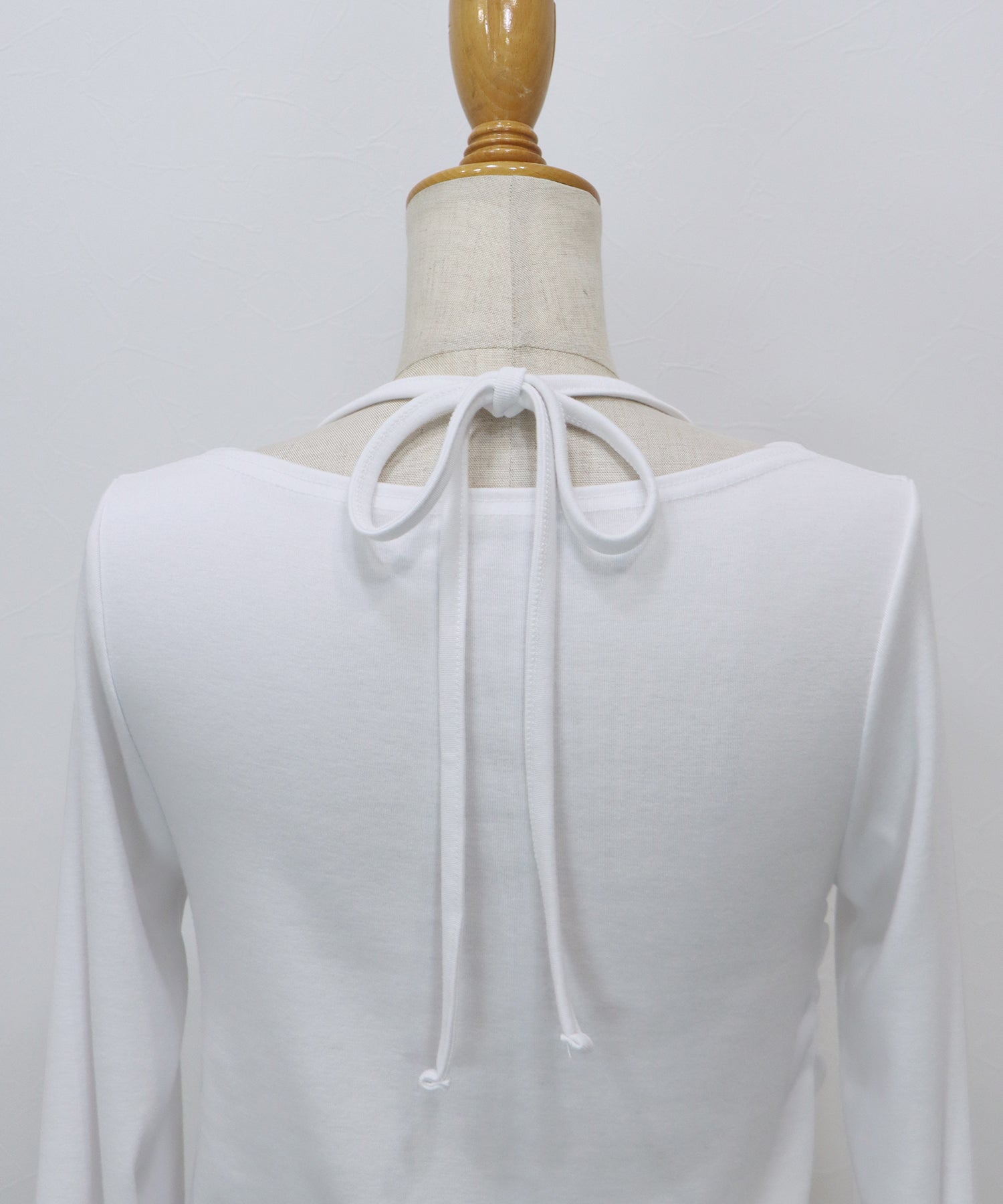 ホルターネックのキャミソールにレイヤードしたようなドッキングデザインで、